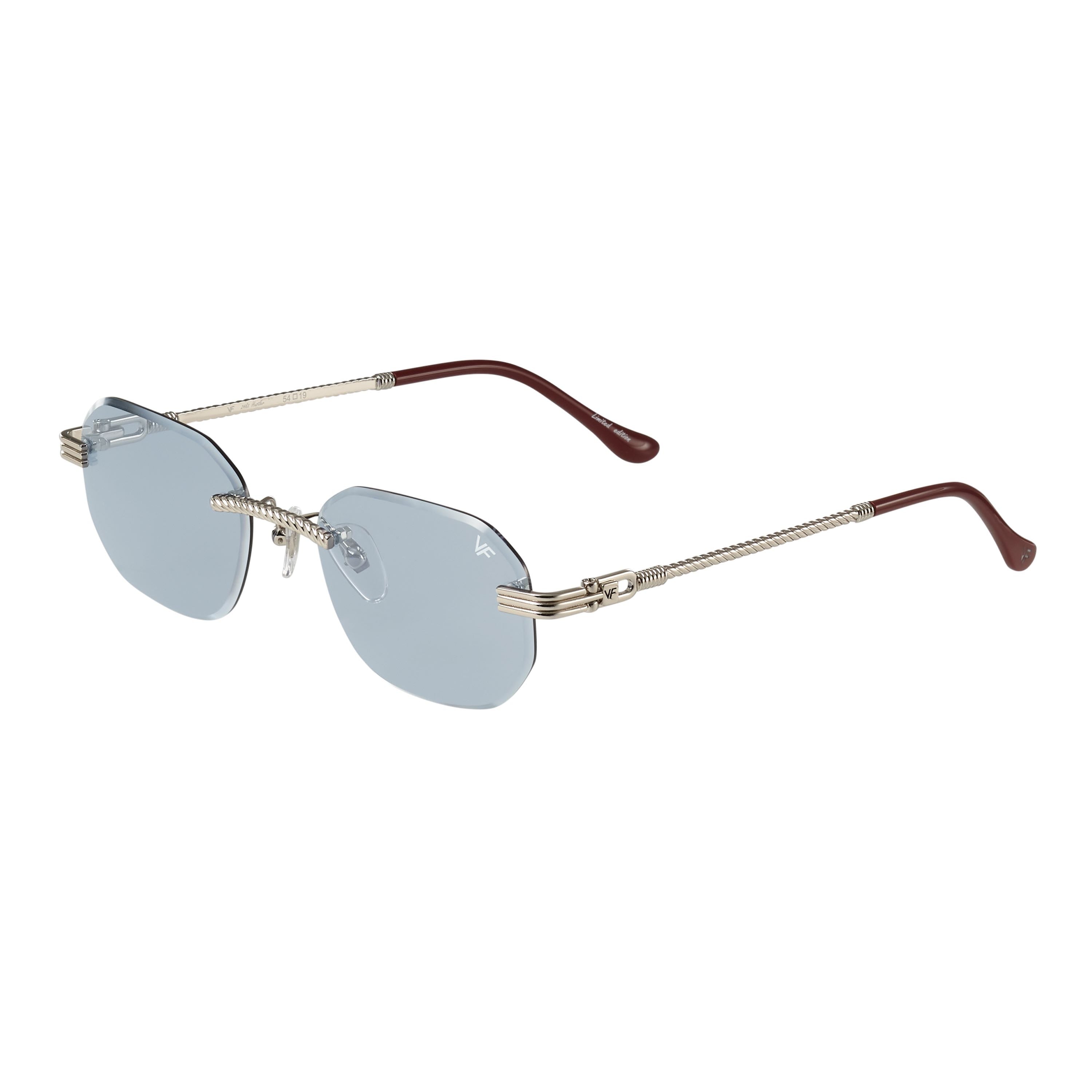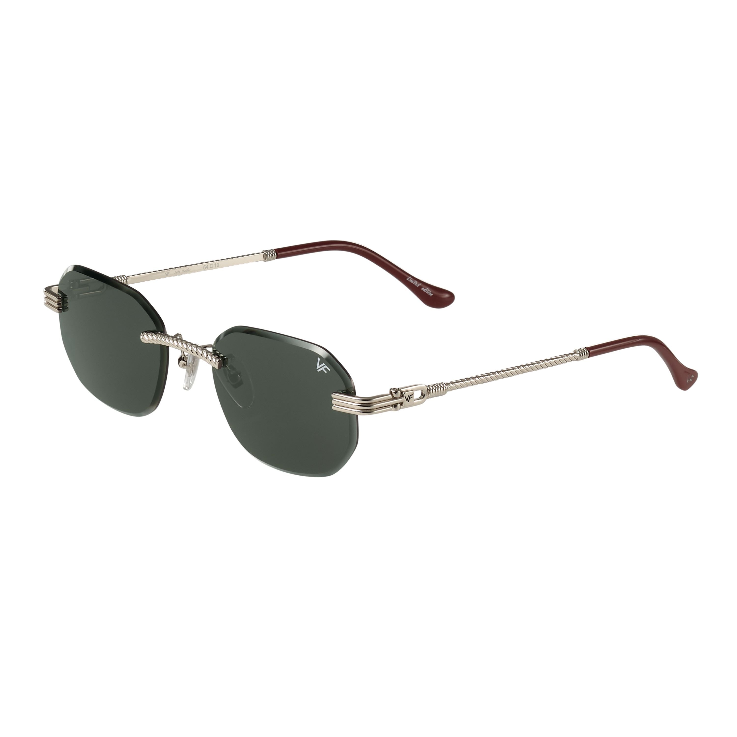 The classic VF hustler silhouette is now available in a rimless style. The Hustler drill mount features 24KT white gold hardware and our classic rope detailed arms. Available in an array of our iconic sun lenses and is also available for prescription.