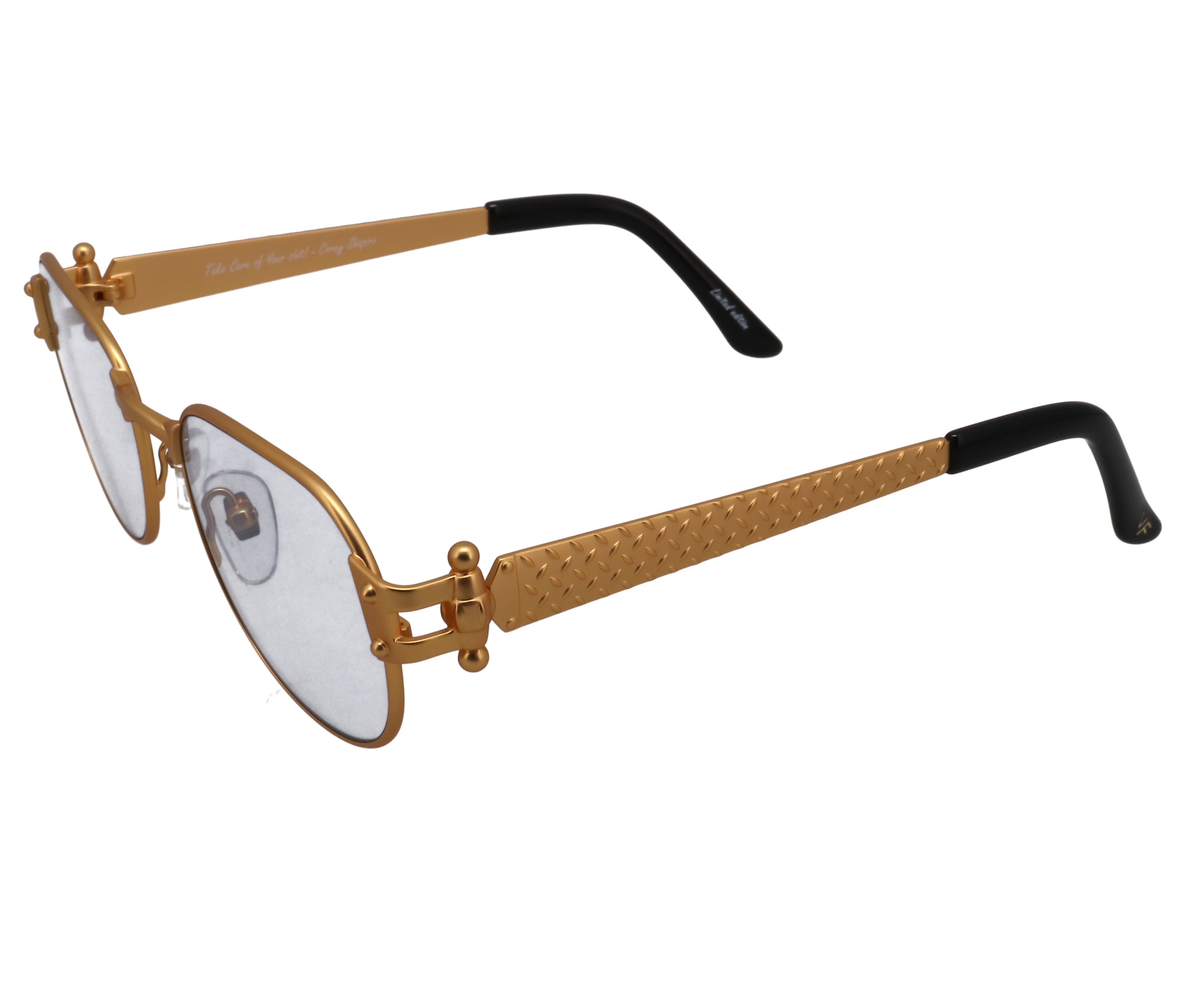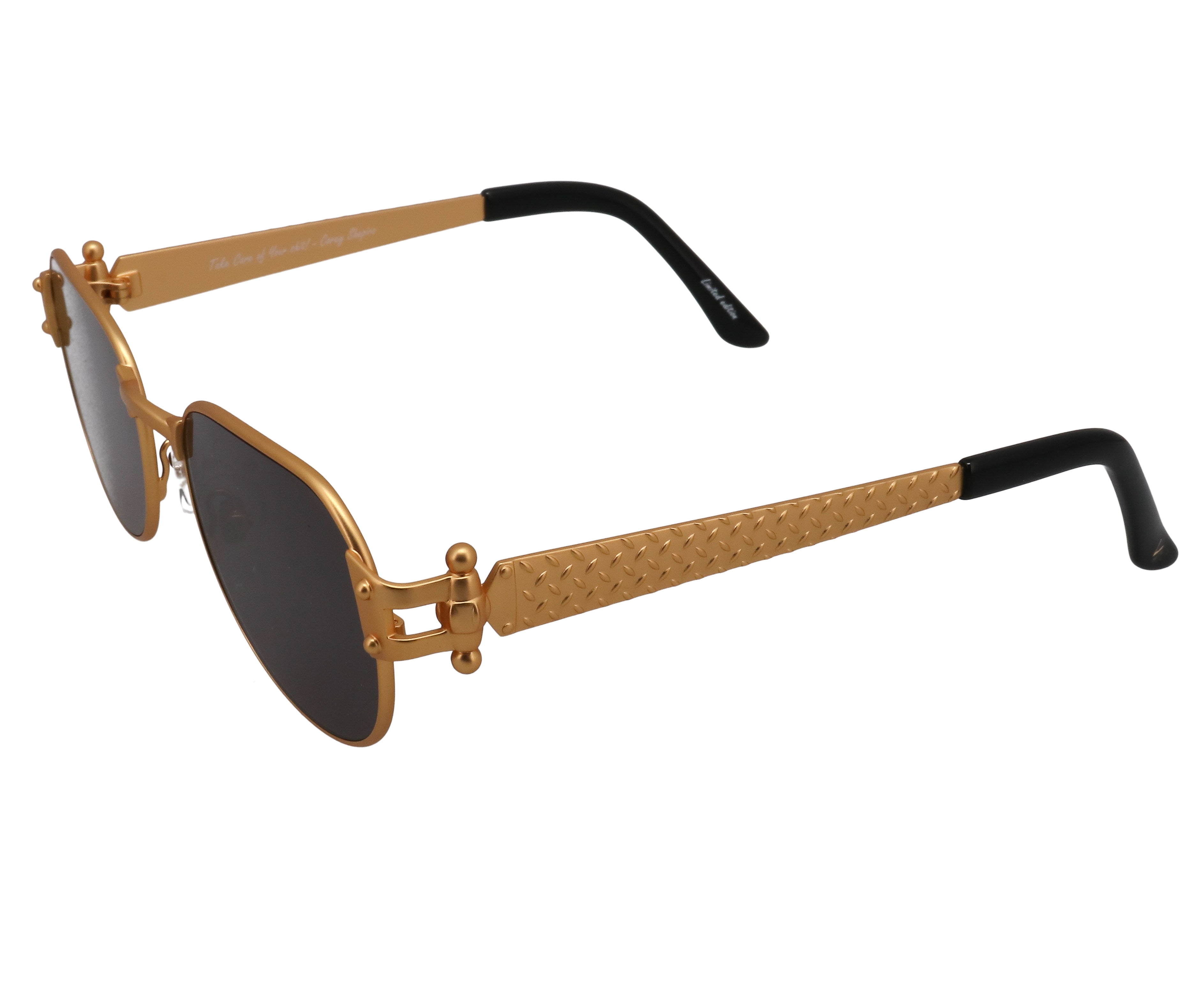 Made using vintage machinery and techniques, the 1999 Millenium Edition features a 24KT yellow gold with a satin finish frame and is available in several lens options. Vintage Frames Company pays homage to its vintage archive by mixing historical fashion references with today's pop culture to create timeless collections of sunglasses and eyewear. The 1999 Millenium Edition is a unisex style and can be worn to elevate any look; from day to night.