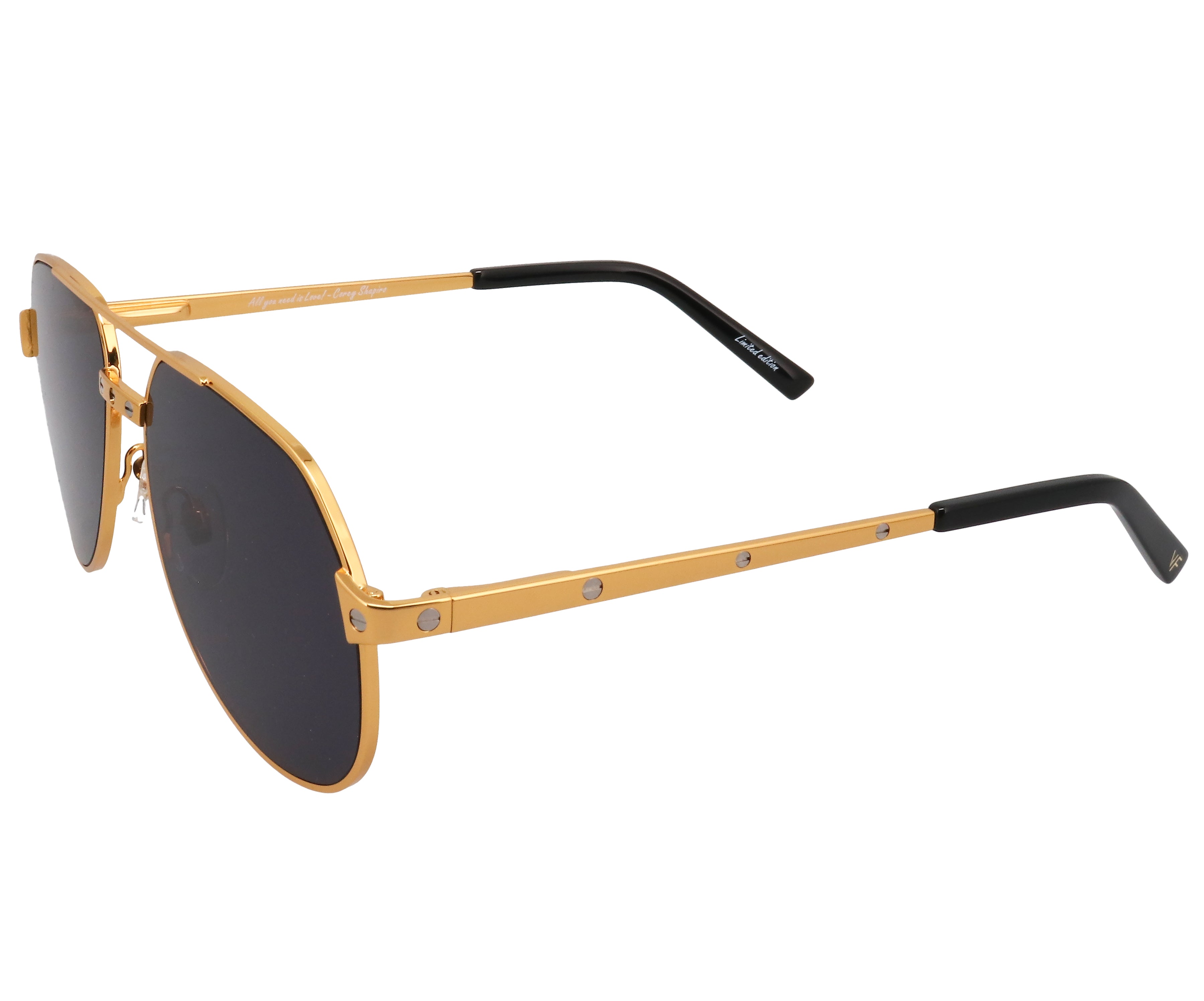 The LOVE Collection takes us on a luxury journey combining two 24KT gold finishes with a combination of classic Vintage Frames Company silhouettes. Each frame is delicately dipped in 24KT gold, mounted with spring hinges for maximum comfort, and paired with some of the highest quality lenses we have to offer. The timeless classics are offered in a yellow gold, white gold, and rose gold base, each with different attributes. Each model’s unique screws can be removed and paired with different models in this collection giving you the options to purchase a couple of colors and change the screws amongst each other. Today we drop the unique Bad Boys model. Never complain about your head being to big again! Our Bad Boys Sunglasses fit anyone in need of a luxury XL fit, or the person just looking for something bold and oversized.