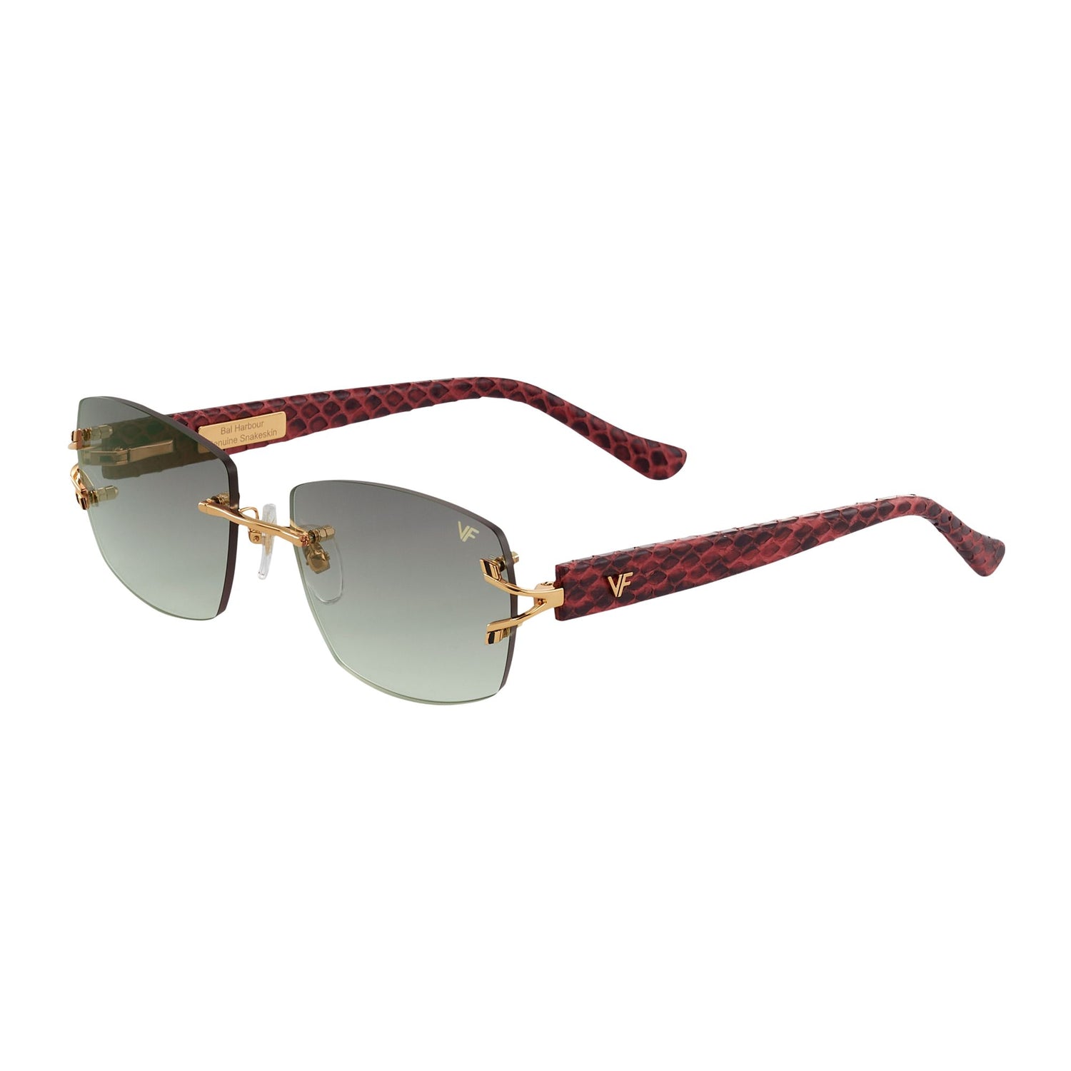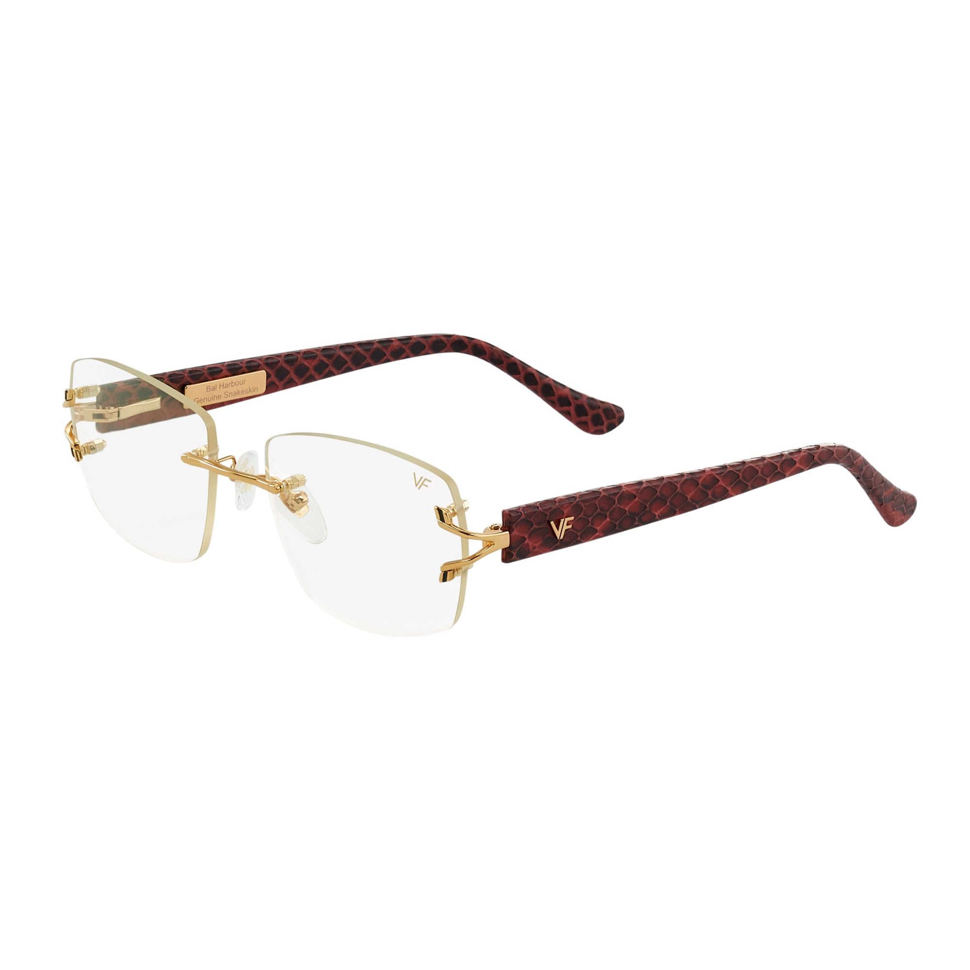 The VF Bal Harbour Snakeskin Edition by Vintage Frames Company is more than eyewear, it is a revival of a lost production legacy. In the late 1970s, high end eyewear houses experimented with authentic snakeskin detailing, but only a handful of factories ever mastered the technique. VF acquired one of these historic production facilities, restored its vintage machinery, and brought the craft back to life. This edition features a full python snakeskin wrap along the arms, paired with 24KT gold dipped hardware for an unmistakably luxurious finish. Built with premium spring hinges, the frame adjusts comfortably to any head size, blending rare materials with modern engineering.