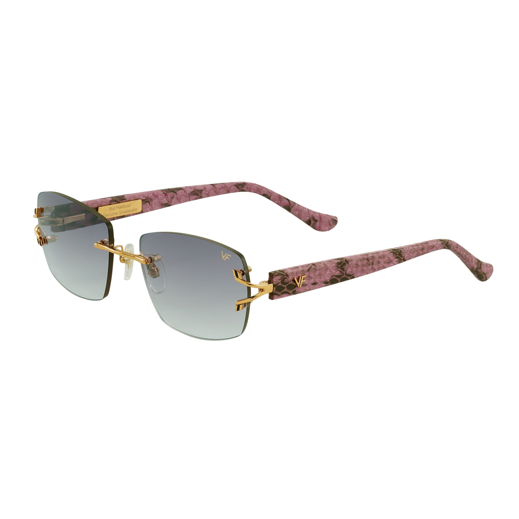 The VF Bal Harbour Snakeskin Edition by Vintage Frames Company is more than eyewear, it is a revival of a lost production legacy. In the late 1970s, high end eyewear houses experimented with authentic snakeskin detailing, but only a handful of factories ever mastered the technique. VF acquired one of these historic production facilities, restored its vintage machinery, and brought the craft back to life. This edition features a full python snakeskin wrap along the arms, paired with 24KT gold dipped hardware for an unmistakably luxurious finish. Built with premium spring hinges, the frame adjusts comfortably to any head size, blending rare materials with modern engineering.