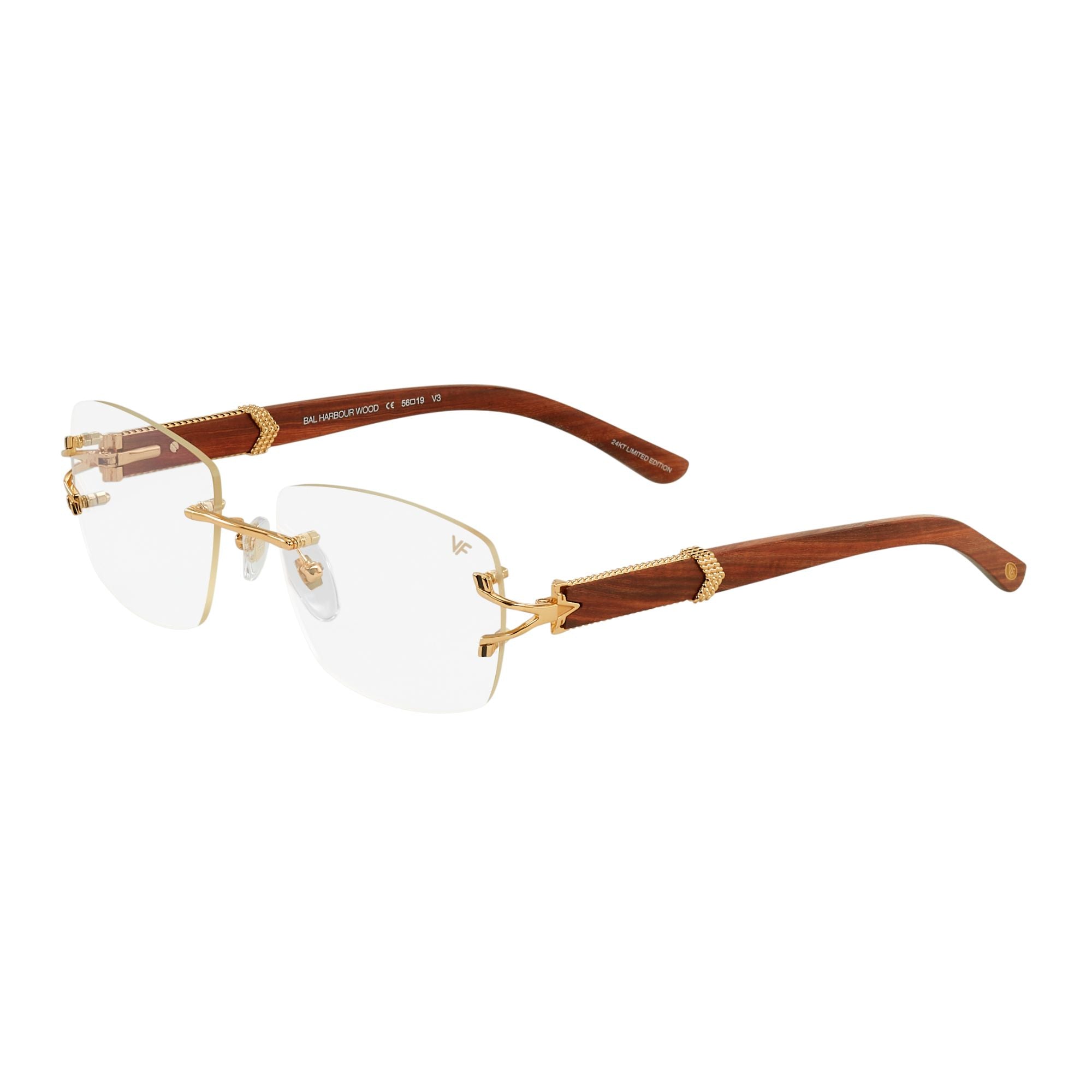Bal Harbour Wood Edition Rimless Drill Mount 24KT Gold