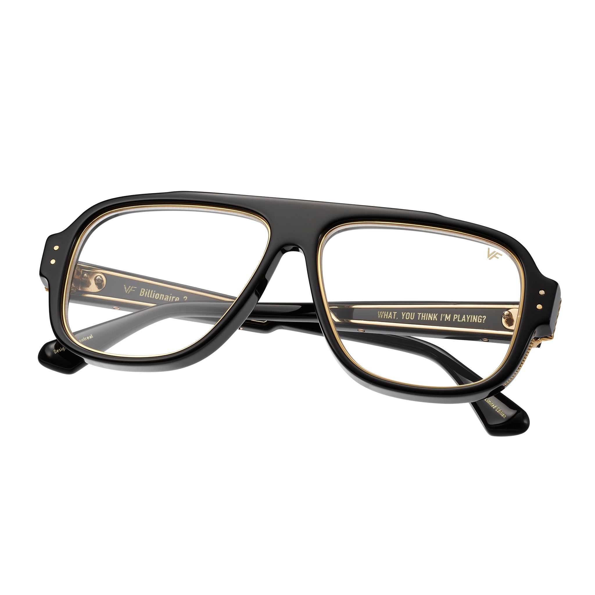 VF Billionaire 2 by Vintage Frames Company evolves our best-selling Billionaire silhouette into a bold, modern aviator. This upgraded edition blends 24KT gold accents with authentic 1980s vintage acetates, creating a powerful fusion of luxury, history, and unmistakable VF attitude. The gold-plated architecture delivers presence and precision, while the rare acetate elements introduce depth, texture, and collectability that can only come from true archival materials. Designed as a frame for leaders, innovators, and culture makers, the VF Billionaire 2 expands the Billionaire legacy with a sharper profile and elevated craftsmanship.