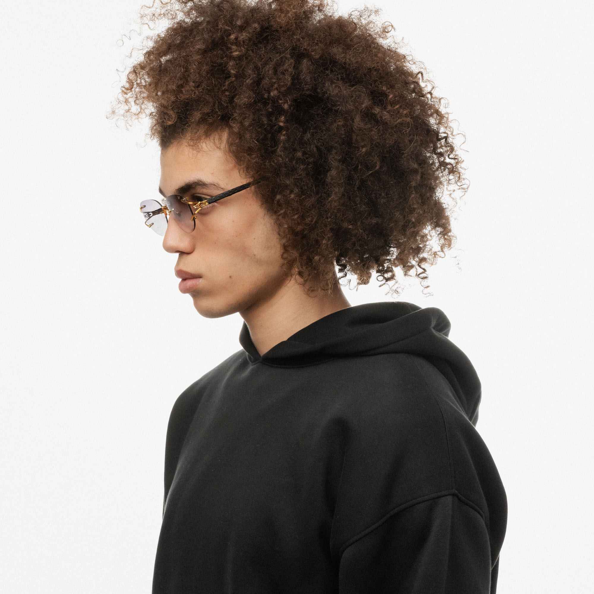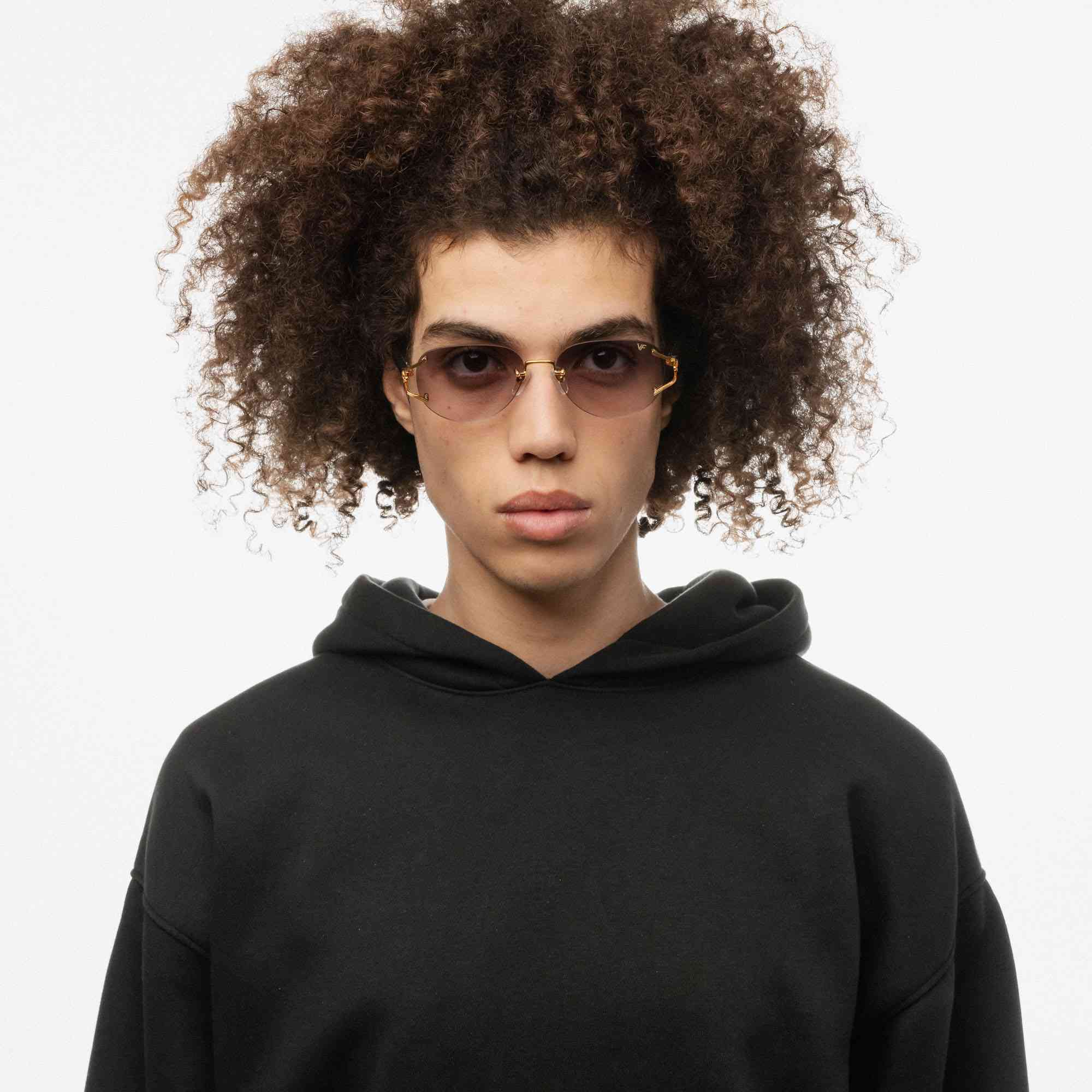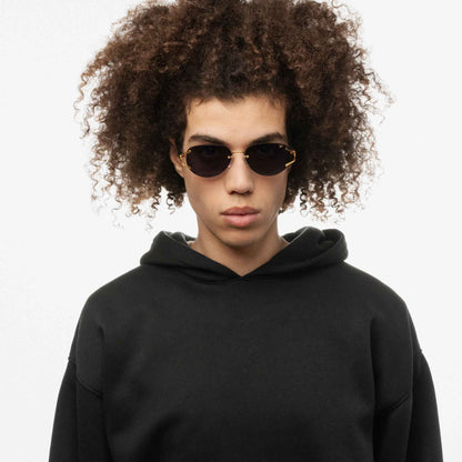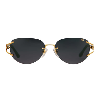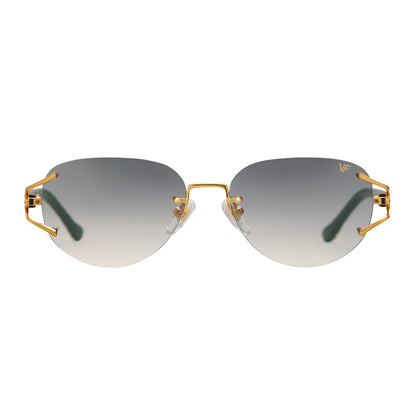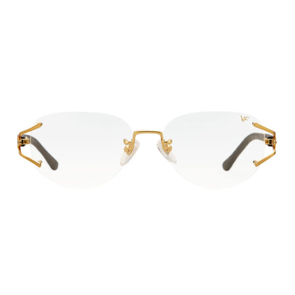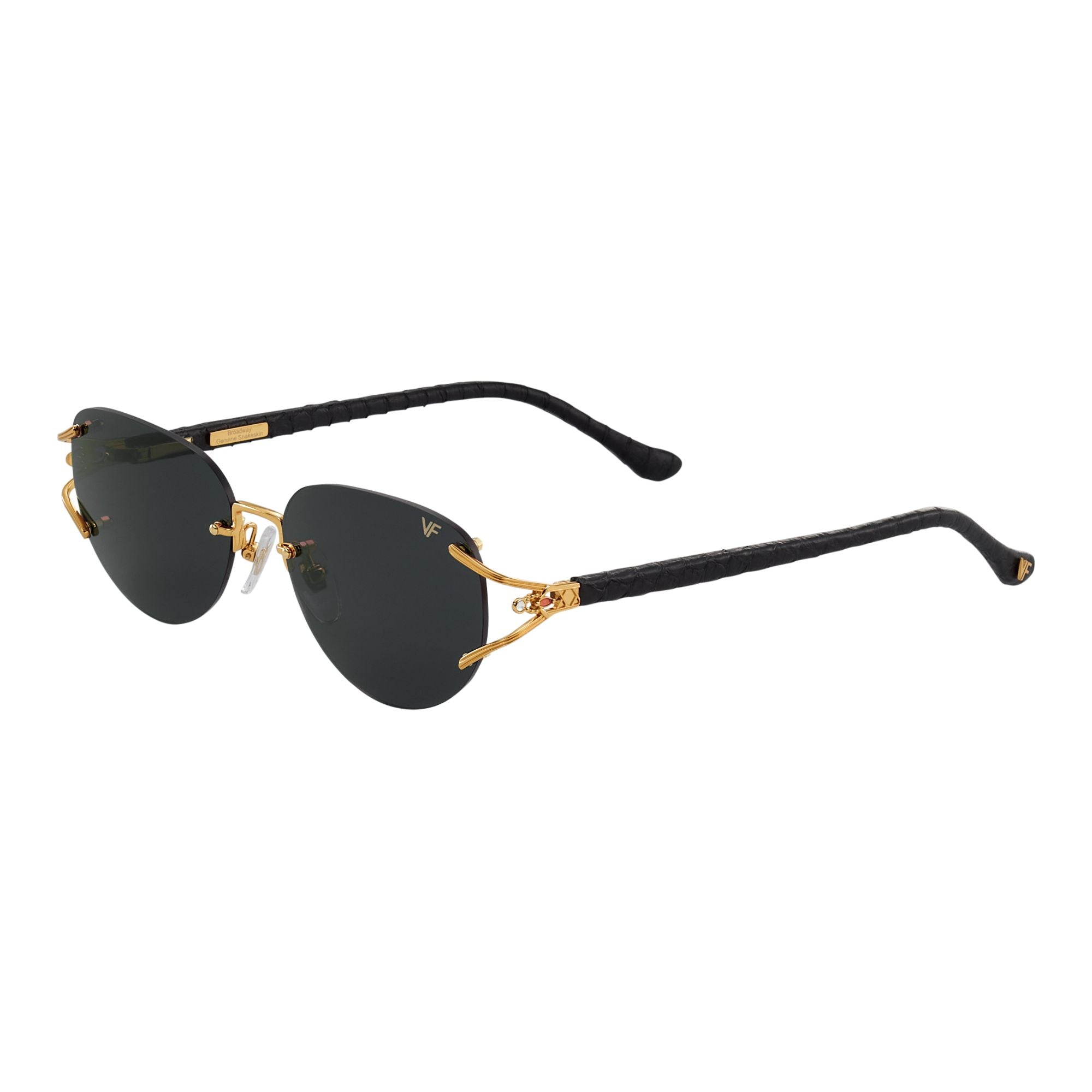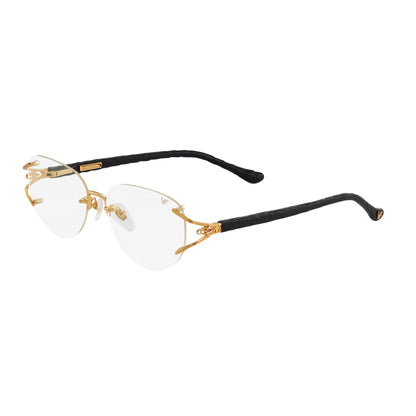 Introducing the Broadway Snakeskin edition. The round custom color lenses are mounted by 24KT gold butterfly pattern temples with crystal detailing, inspired by the iconic double-deck Broadway Bridge in New York City. This frame is designed with special posts mounted on the lenses; making this frame great for both sun and optical.