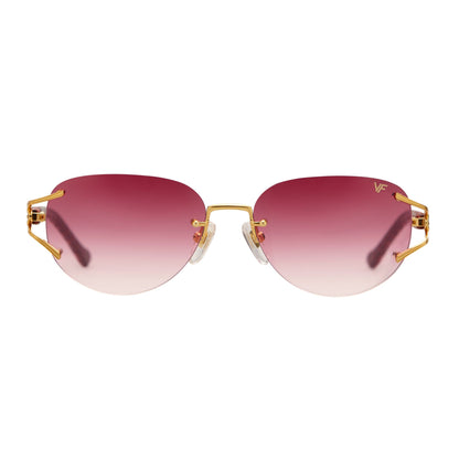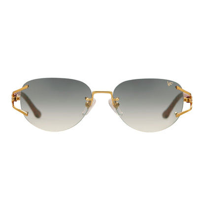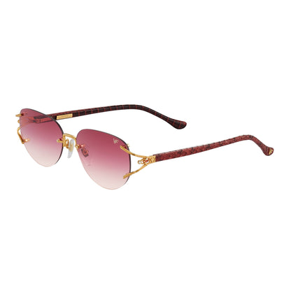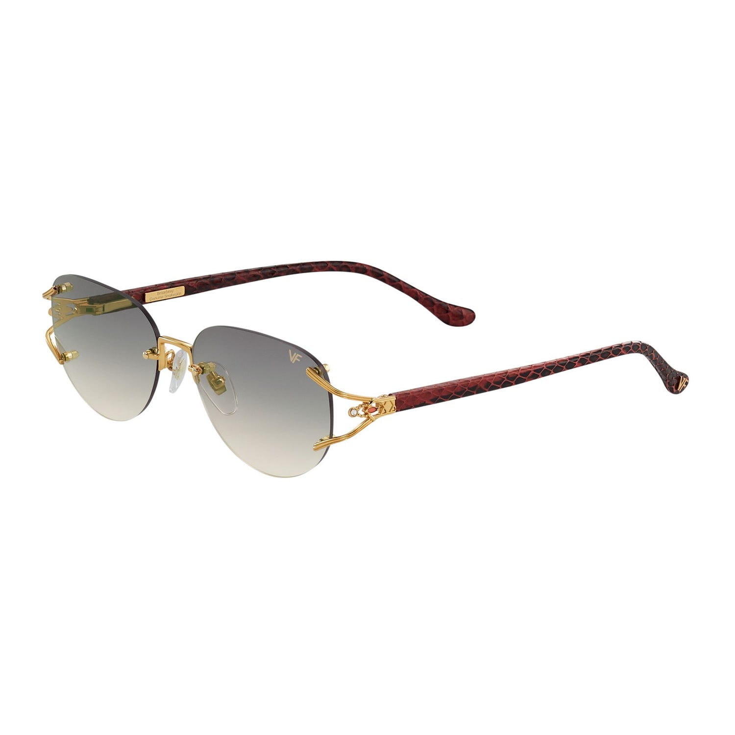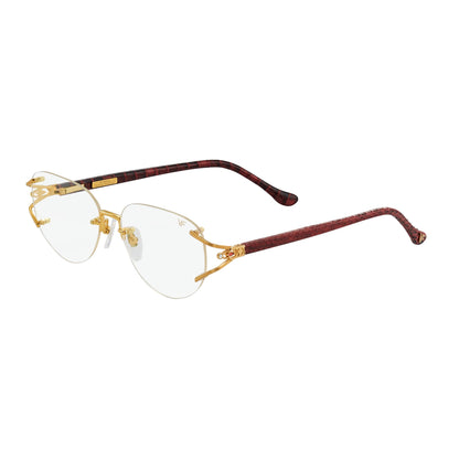 Introducing the Broadway Snakeskin edition. The round custom color lenses are mounted by 24KT gold butterfly pattern temples with crystal detailing, inspired by the iconic double-deck Broadway Bridge in New York City. This frame is designed with special posts mounted on the lenses; making this frame great for both sun and optical.