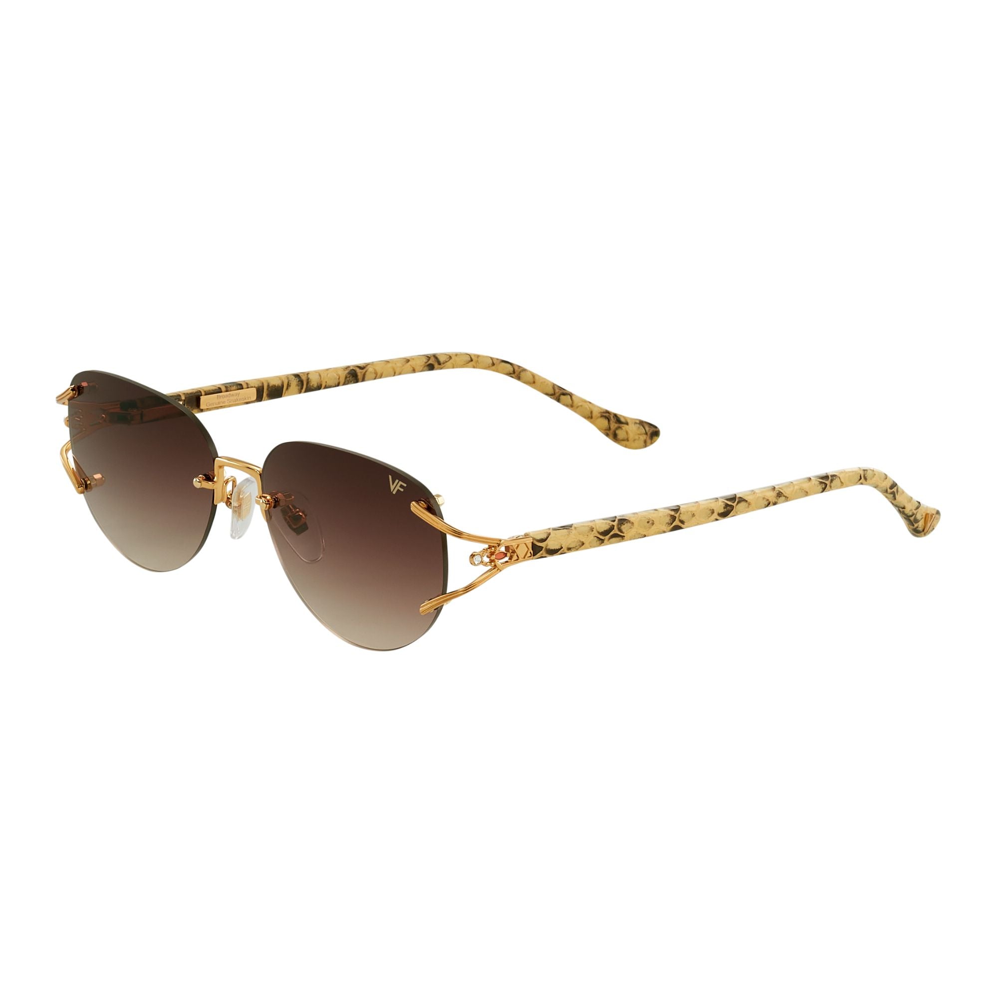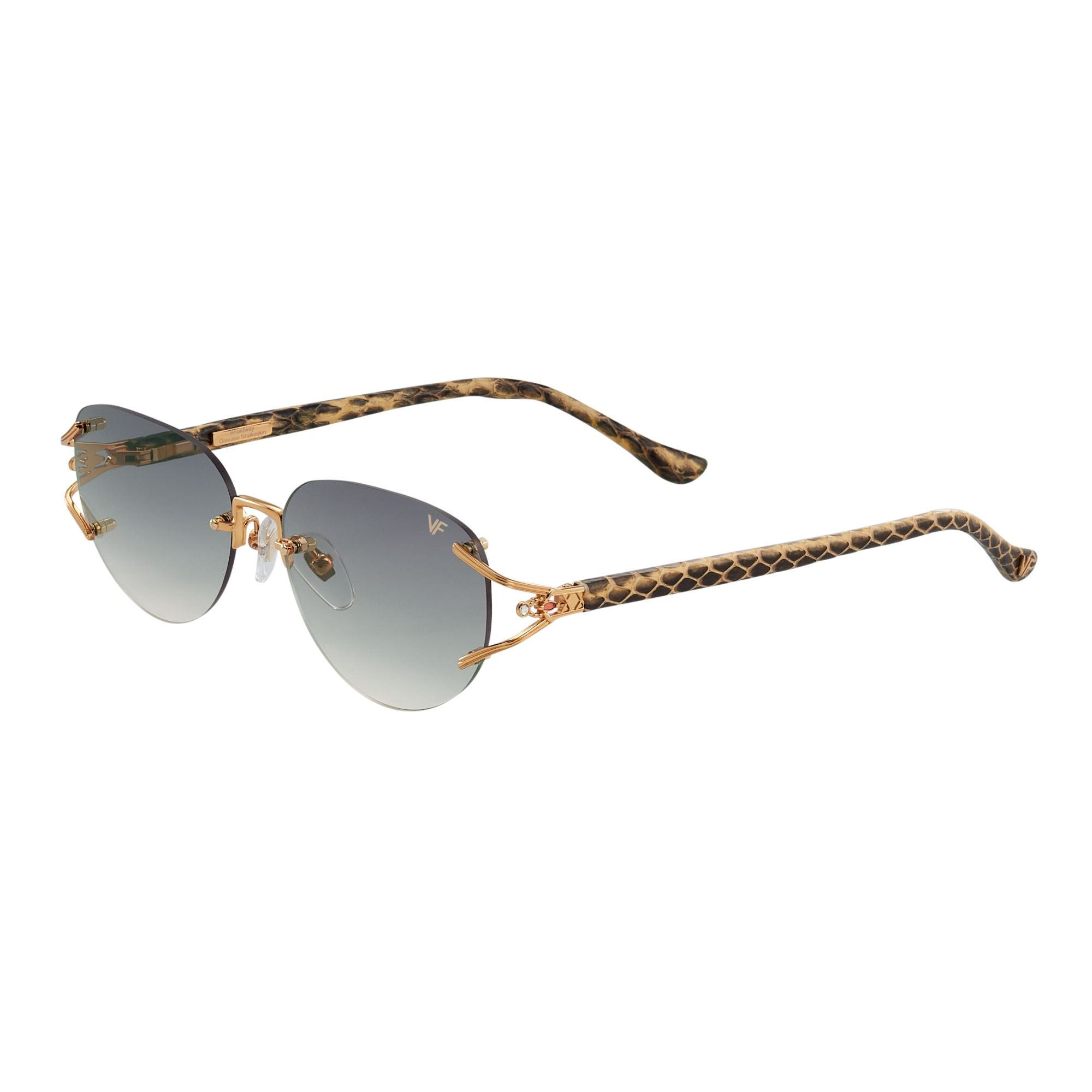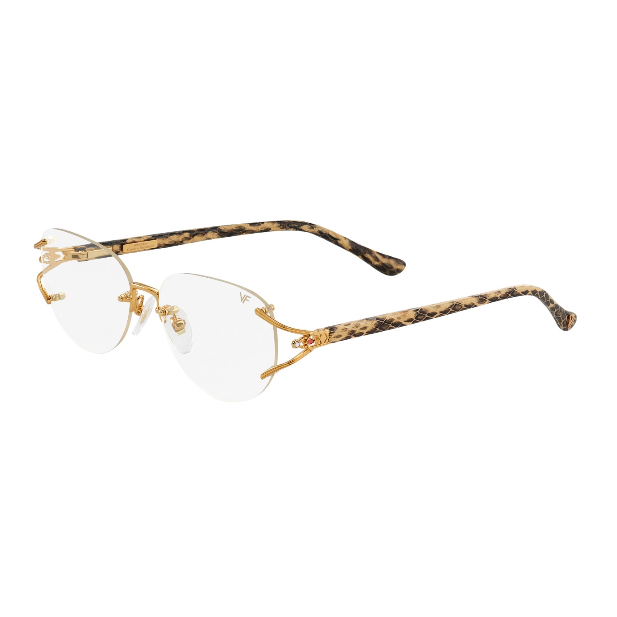 Introducing the Broadway Snakeskin edition. The round custom color lenses are mounted by 24KT gold butterfly pattern temples with crystal detailing, inspired by the iconic double-deck Broadway Bridge in New York City. This frame is designed with special posts mounted on the lenses; making this frame great for both sun and optical.