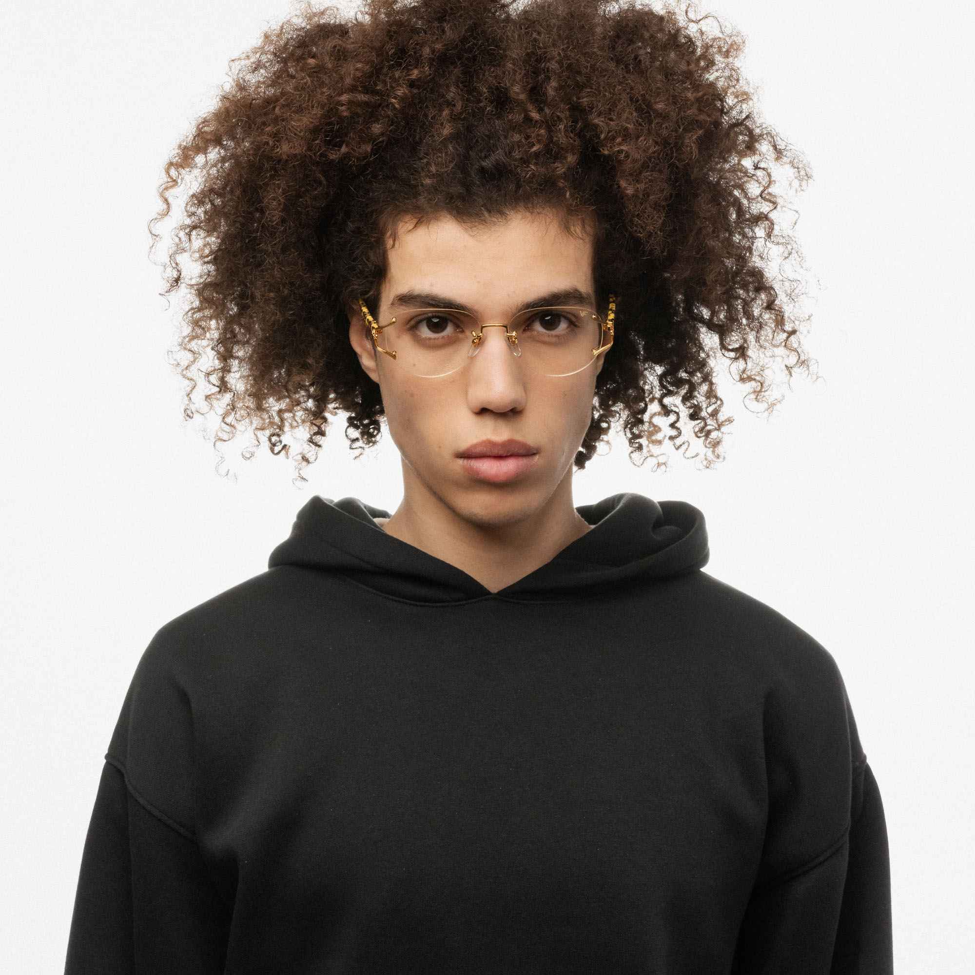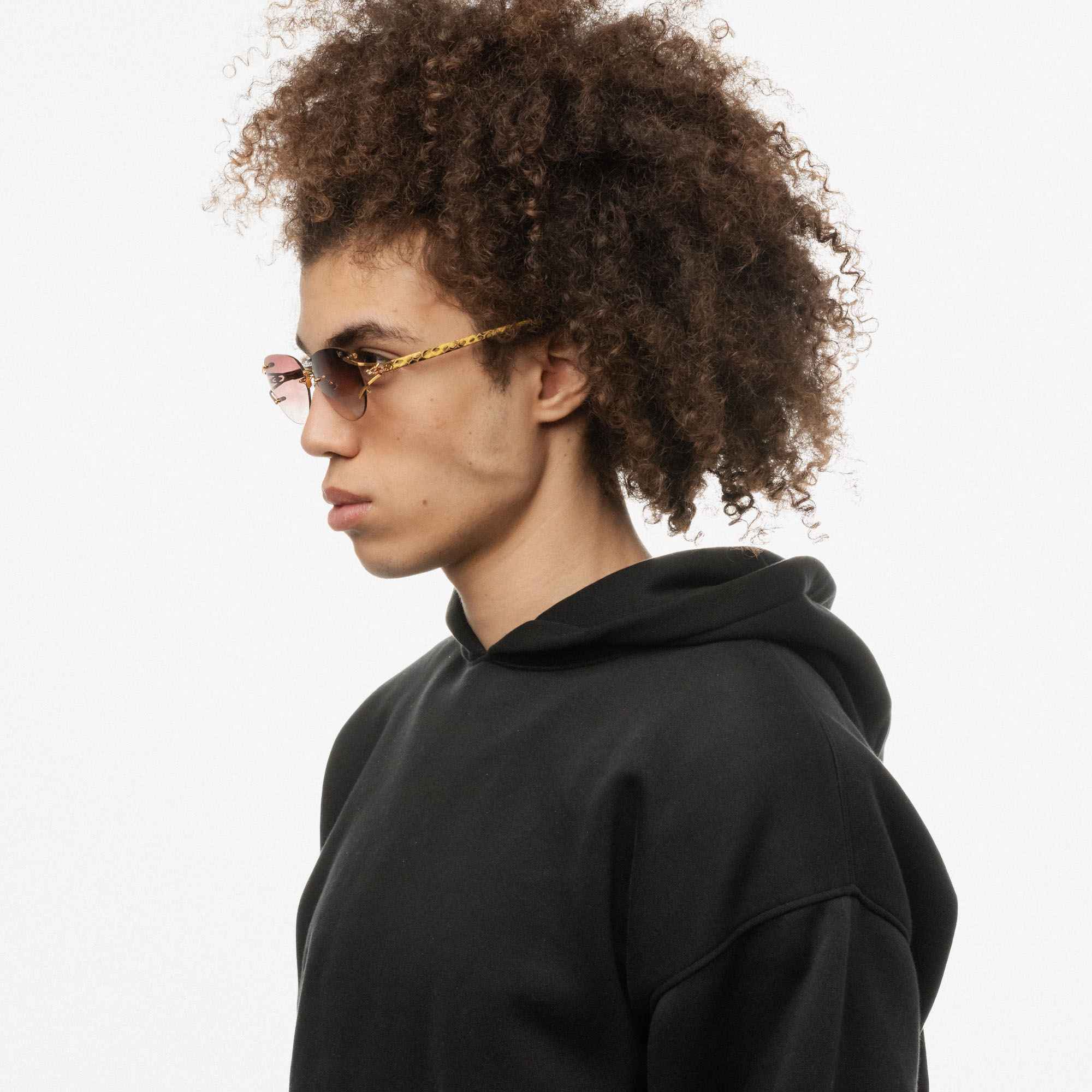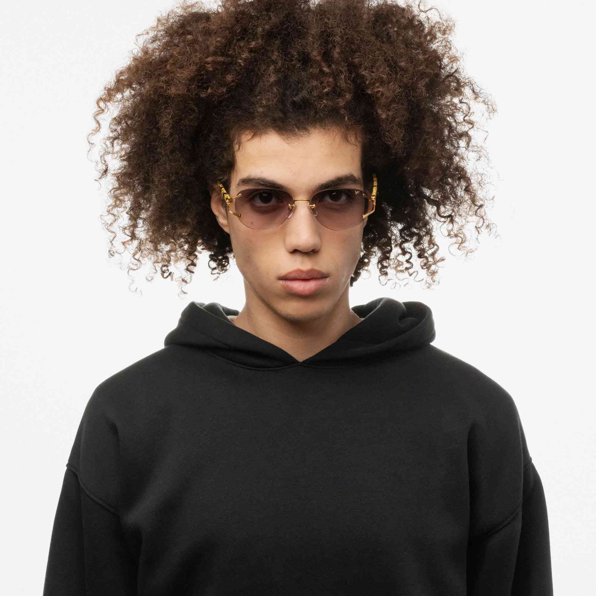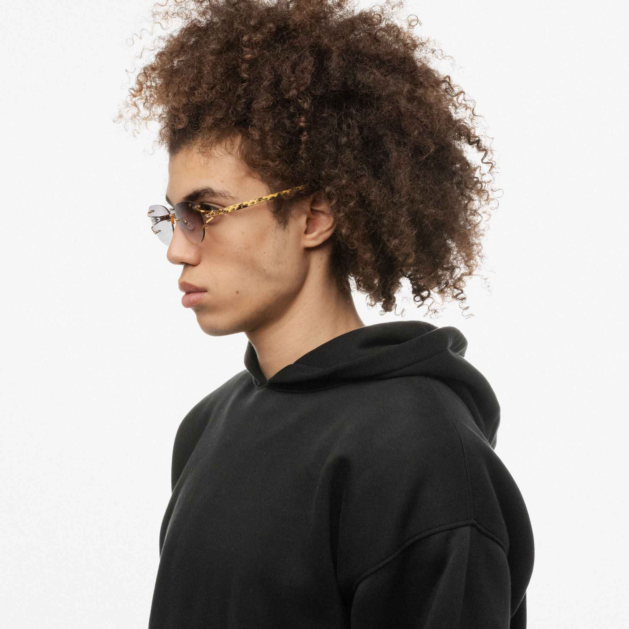 Introducing the Broadway Snakeskin edition. The round custom color lenses are mounted by 24KT gold butterfly pattern temples with crystal detailing, inspired by the iconic double-deck Broadway Bridge in New York City. This frame is designed with special posts mounted on the lenses; making this frame great for both sun and optical.