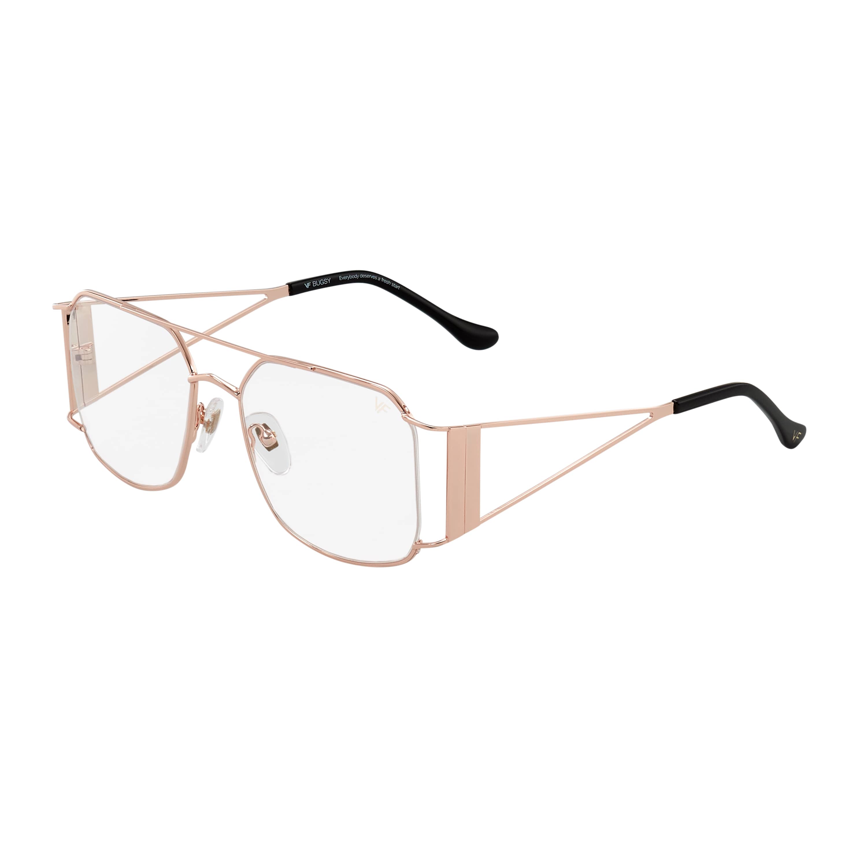 The Bugsy is inspired by New York boss Bugsy Siegal. This frame takes on a gritty oversized rectangular shape with particular side windows. Available for both optical and sun, the versatility of this design is shown in yellow gold, white gold and rose gold.