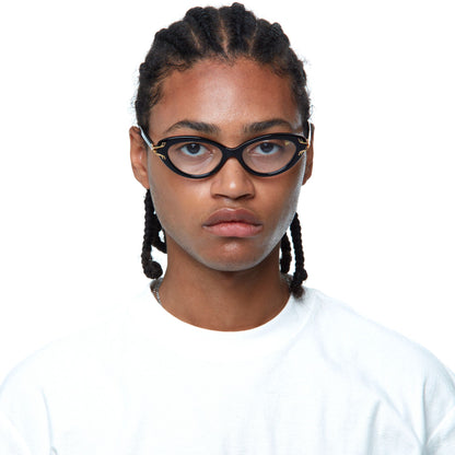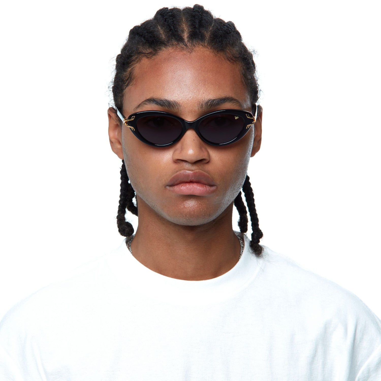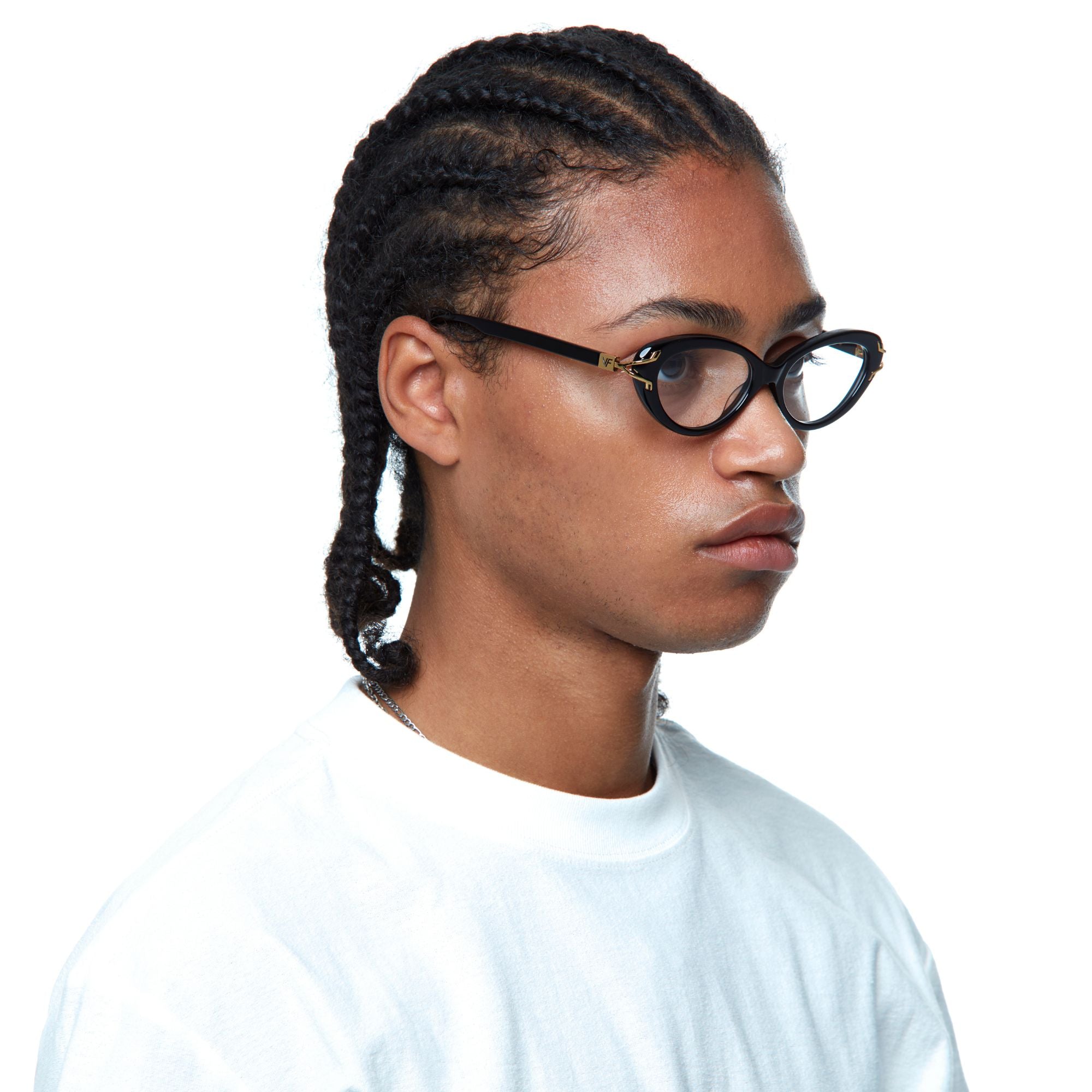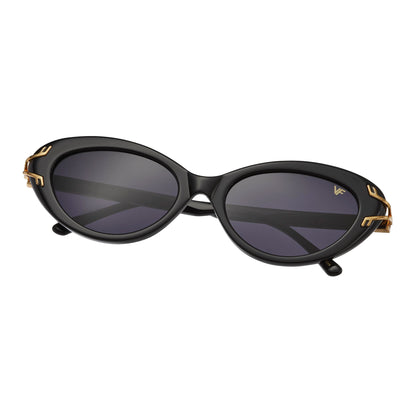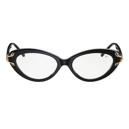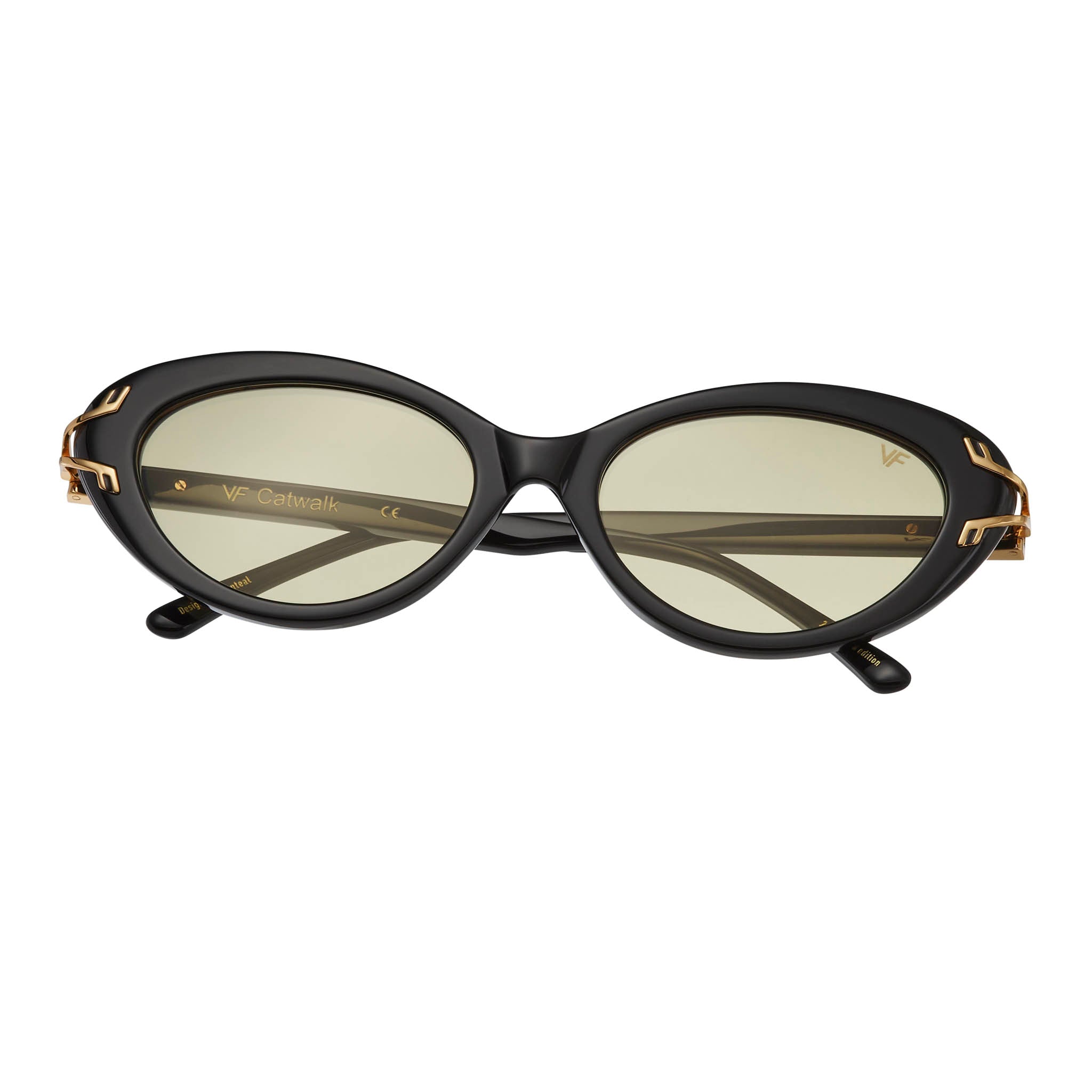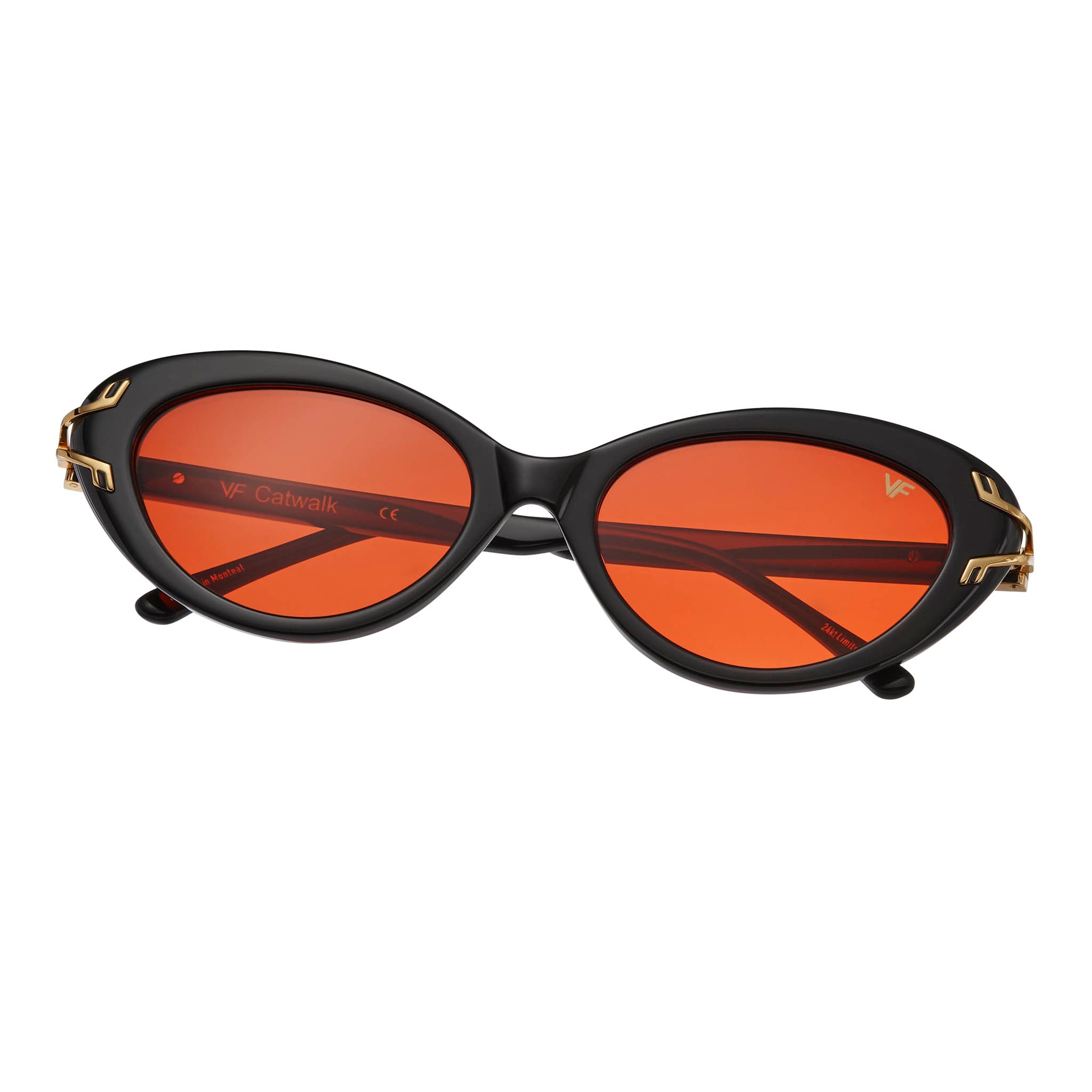 The ultimate cat shaped acetate frame with gold dipped signature v-decor temples and our custom dyed lenses. The sophistication of the catwalk completes any look and makes this frame perfect for both sun and optical.