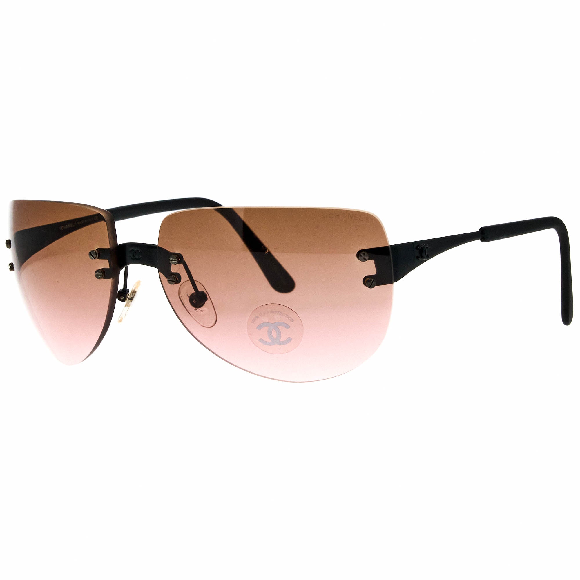 The Chanel 4007 101 77 sunglasses, with its black frame and iconic rimless silhouette, is a rare vintage sunglasses find for collectors.