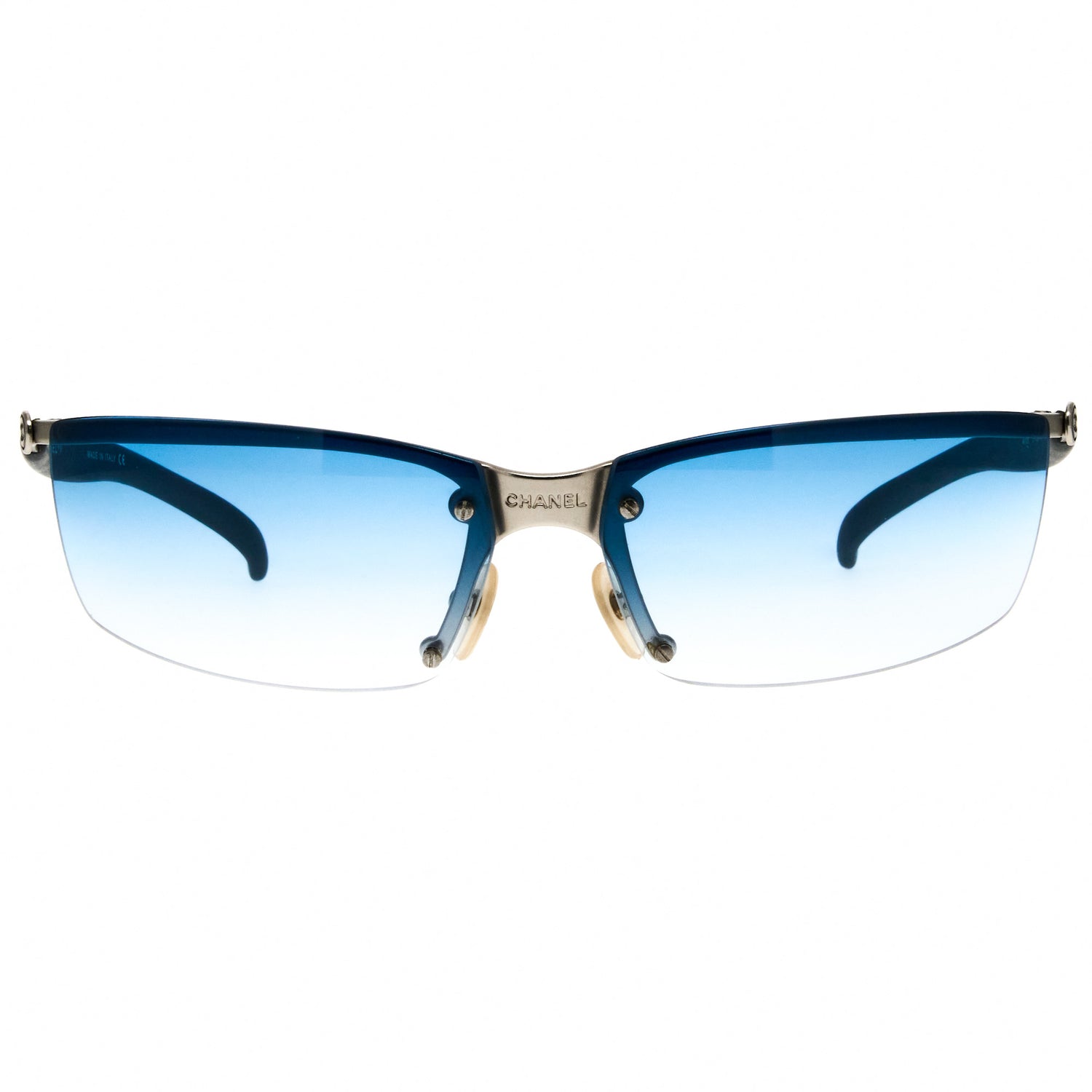 The Chanel 4008 123 79 sunglasses, with its silver/gray frame and iconic half rim silhouette, is a rare vintage sunglasses find for collectors.