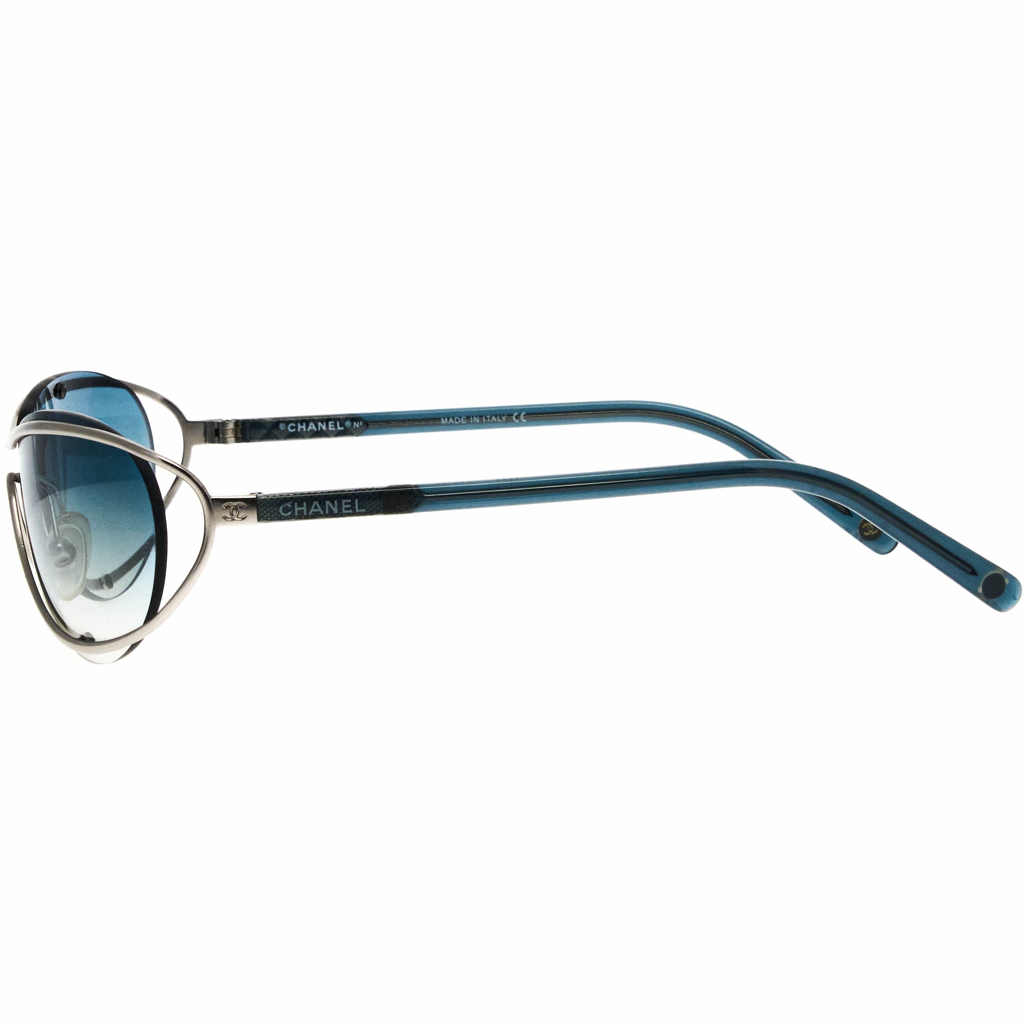 The Chanel 4020 145 55 sunglasses, with its silver/blue frame and iconic editorial silhouette, is a rare vintage sunglasses find for collectors.