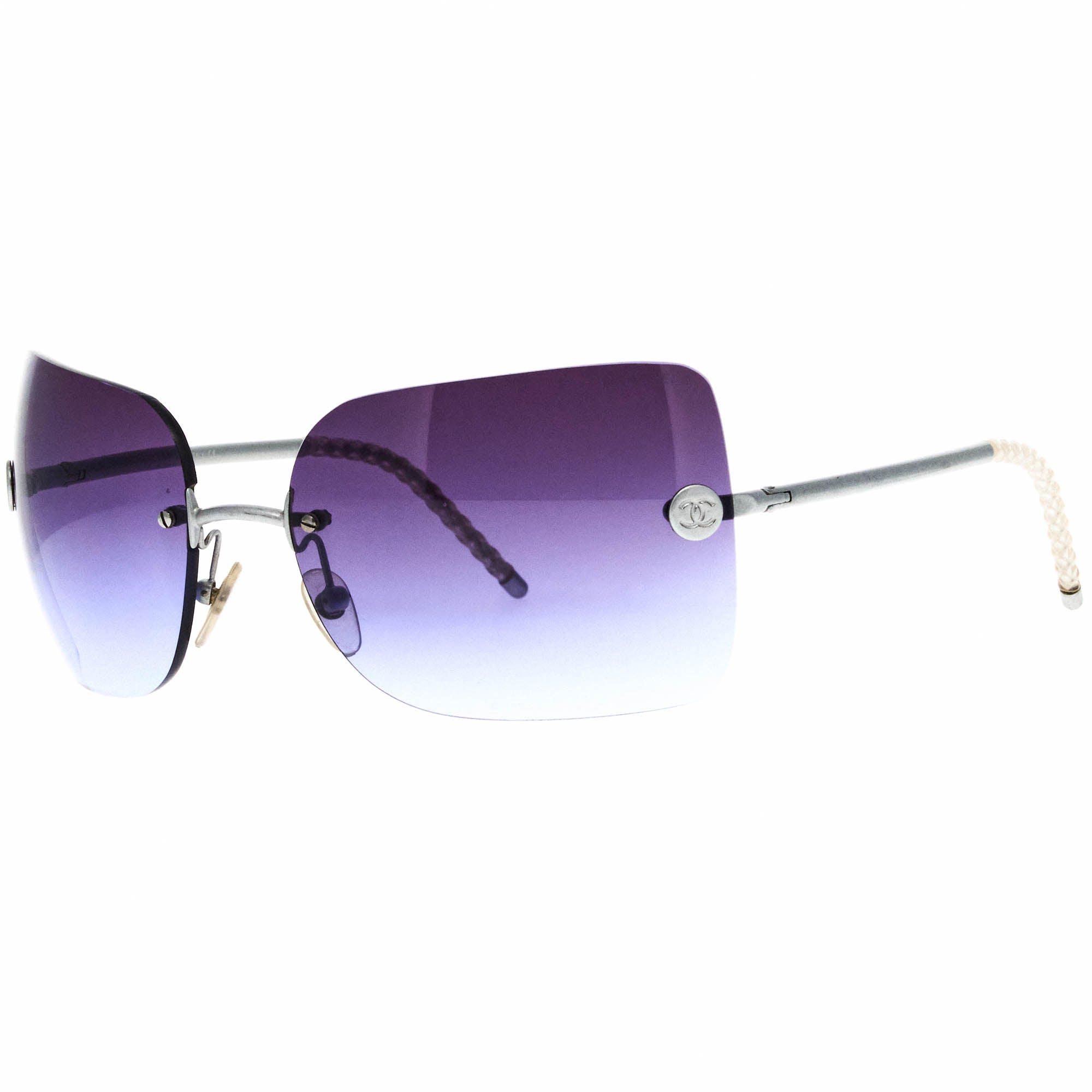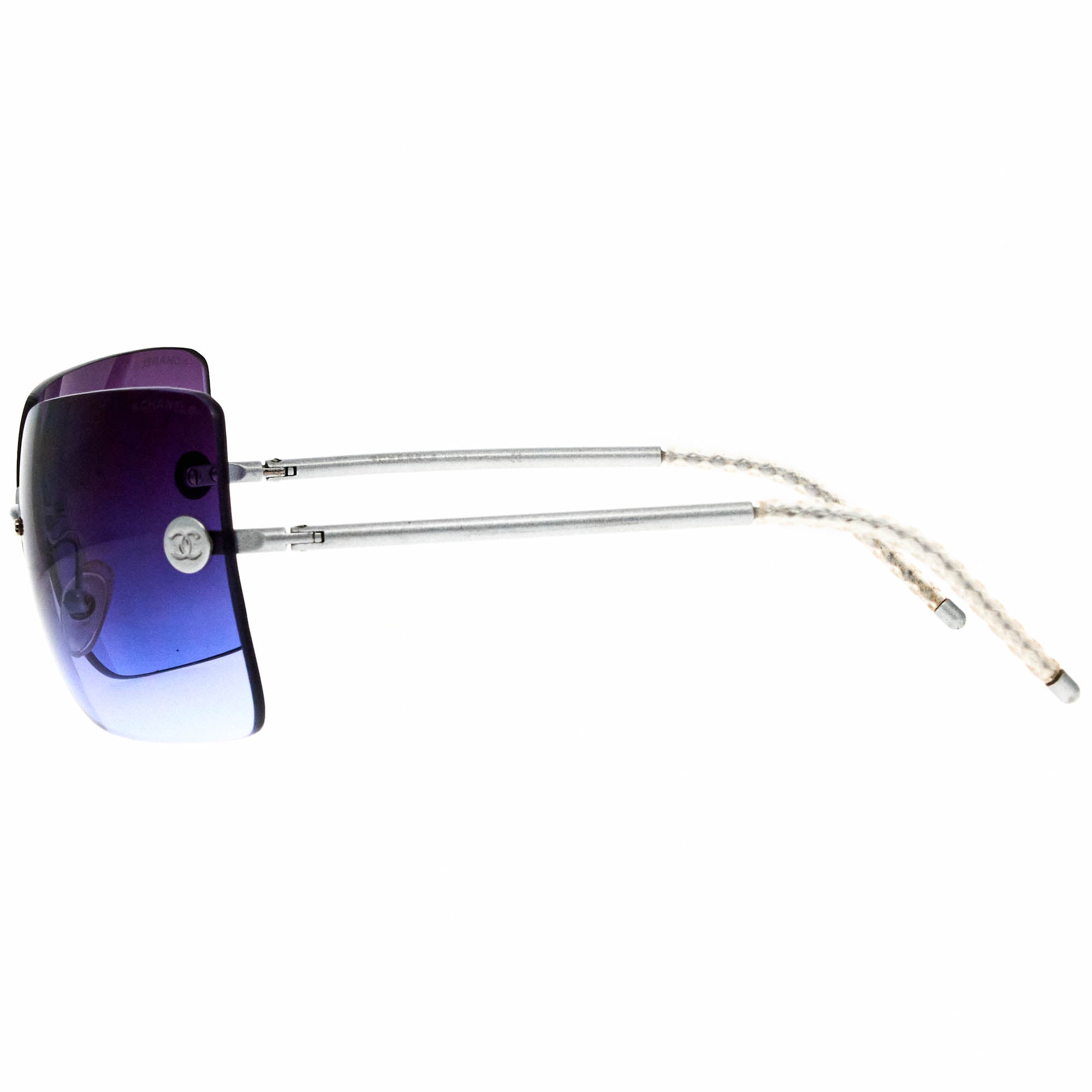 The Chanel 4047 167 6I sunglasses, with its silver frame and iconic rimless silhouette, is a rare vintage sunglasses find for collectors.