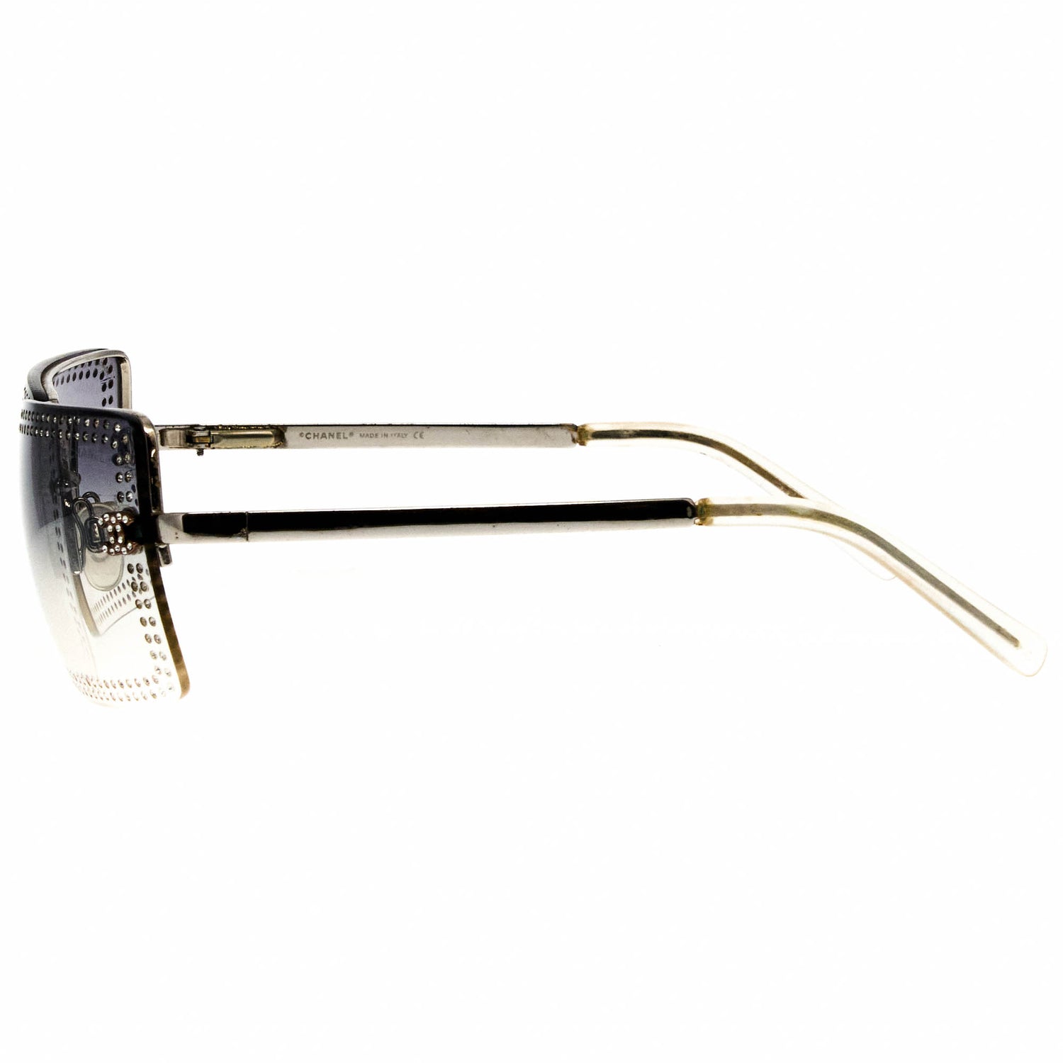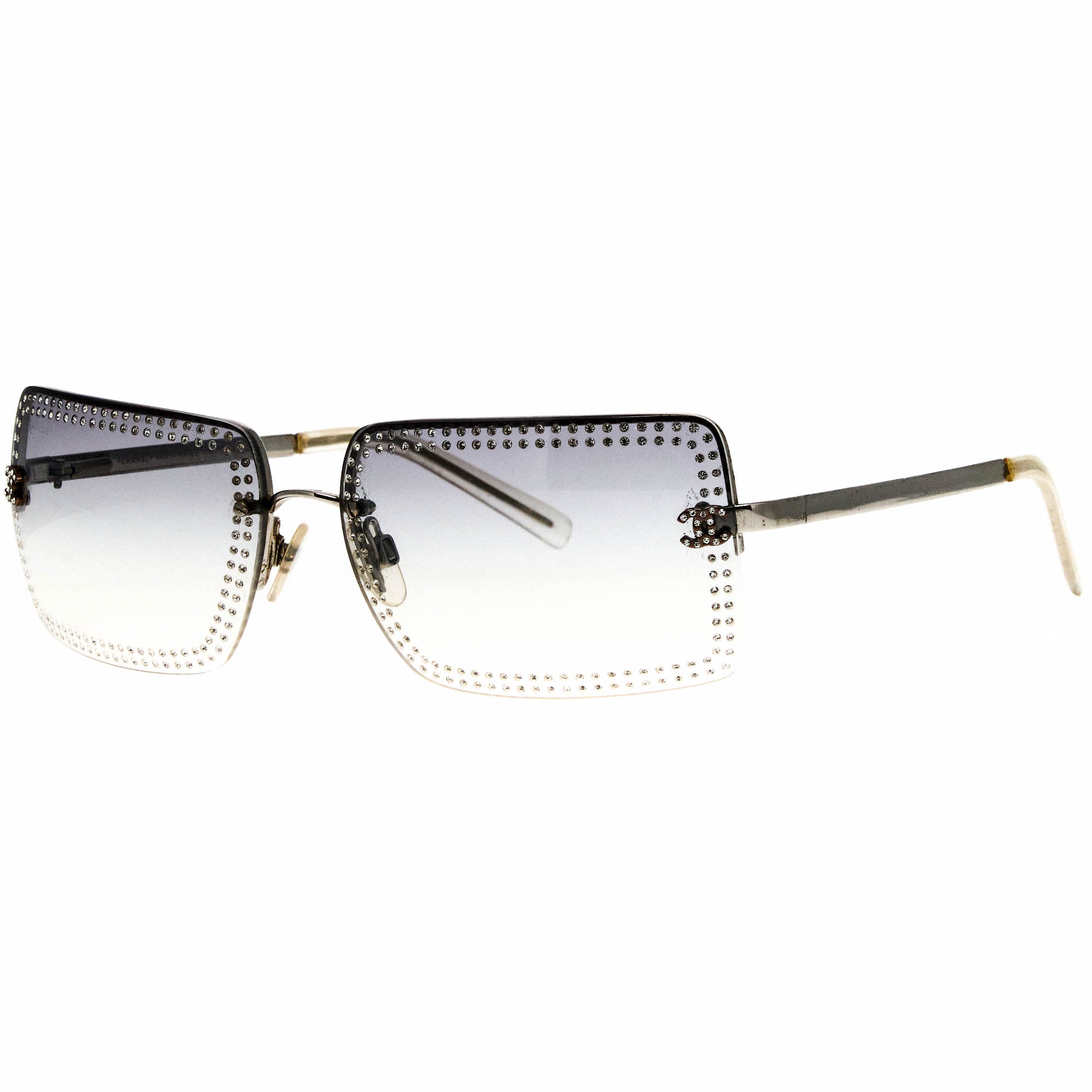 The Chanel 4105B 124 79 1 sunglasses, with its silver frame and iconic half rim silhouette, is a rare vintage sunglasses find for collectors.