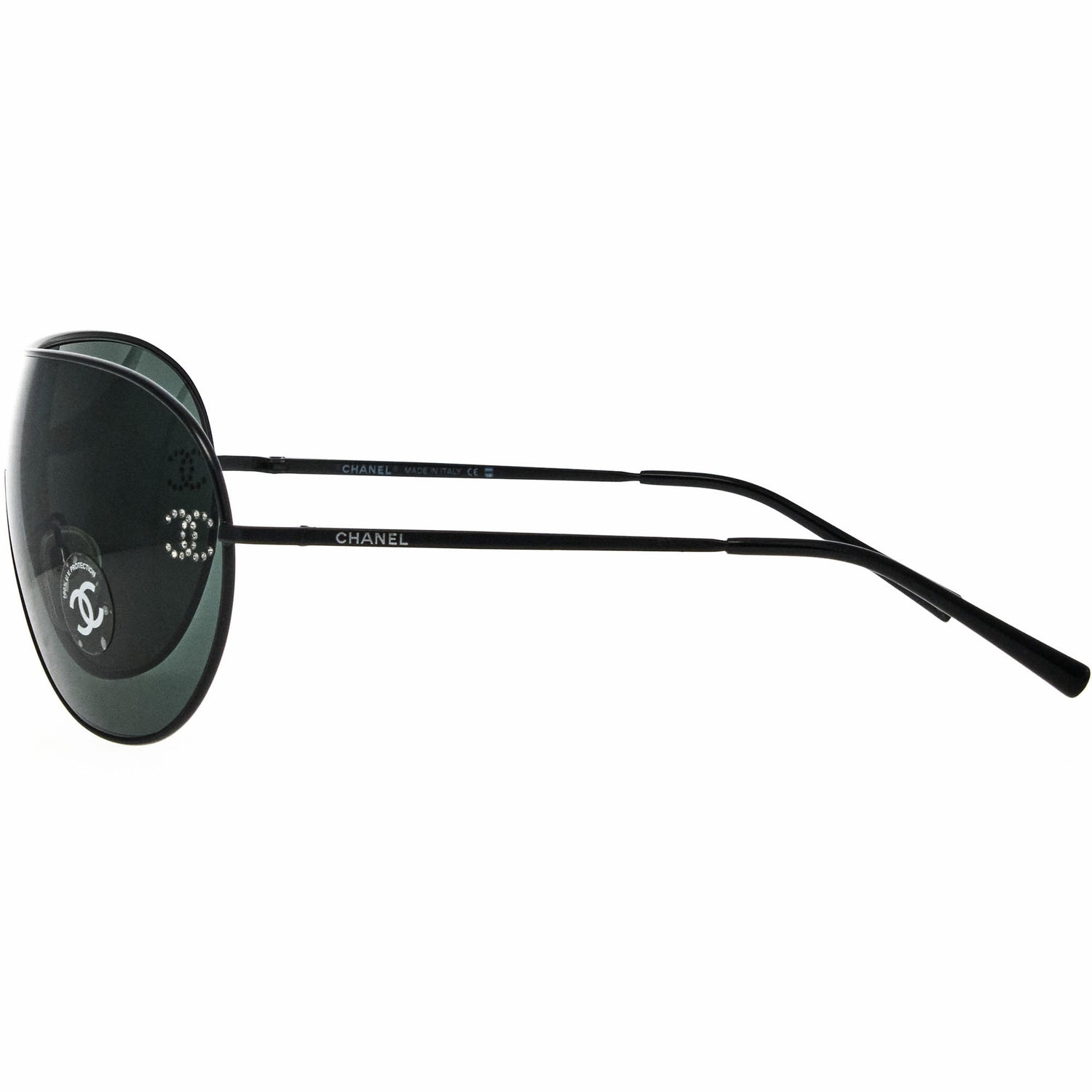 The Chanel 4122B 101 71 sunglasses, with its black frame and iconic shield silhouette, is a rare vintage sunglasses find for collectors.