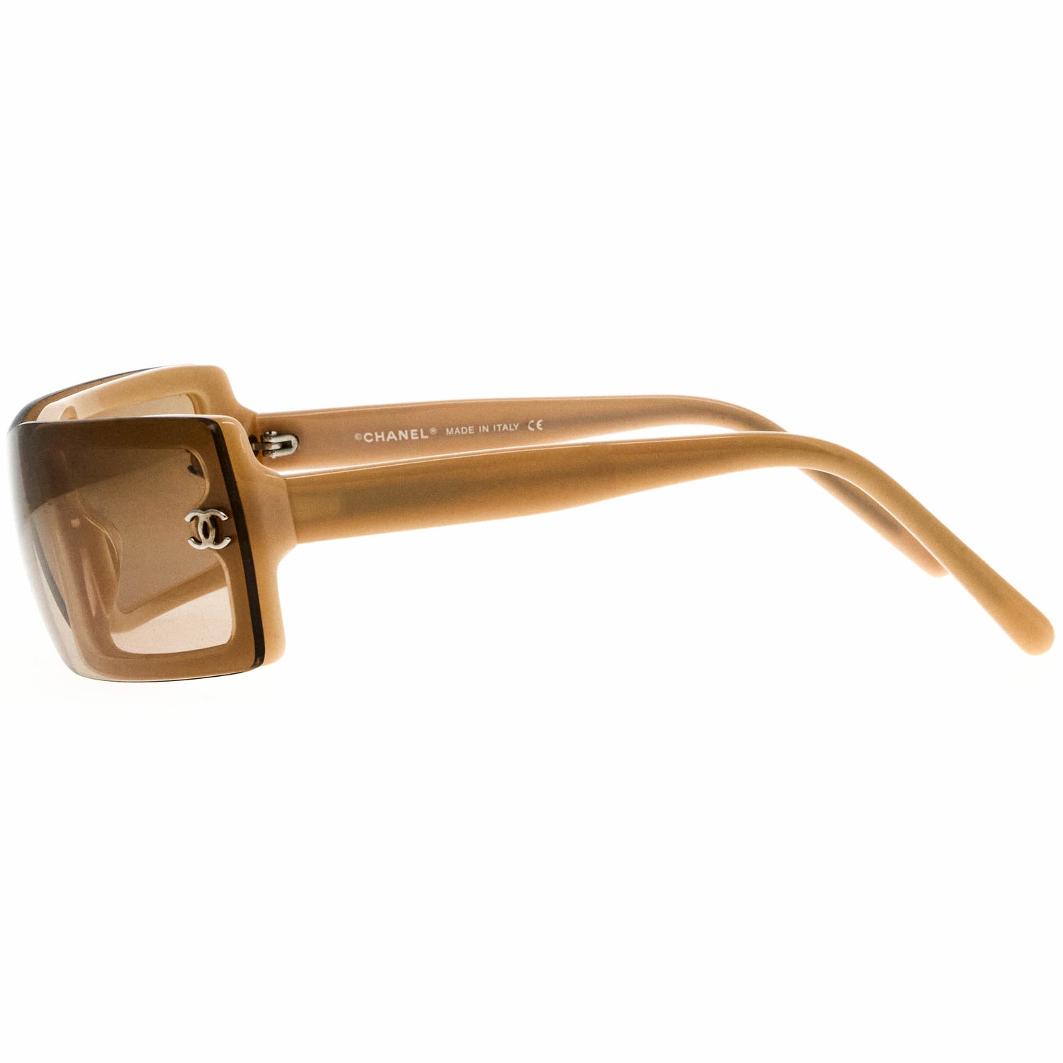 The Chanel 5067 710 13 sunglasses, with its beige frame and iconic rectangular silhouette, is a rare vintage sunglasses find for collectors.
