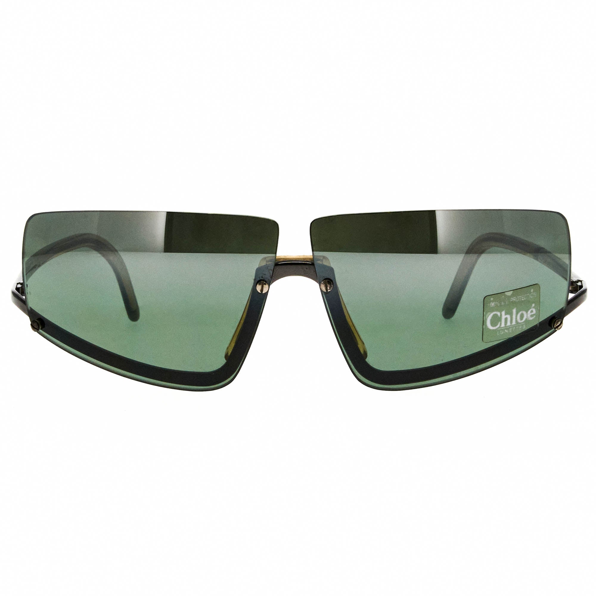 The Chloe 84S 671, with its green frame and iconic rectangular silhouette, is a rare vintage sunglasses find for collectors.