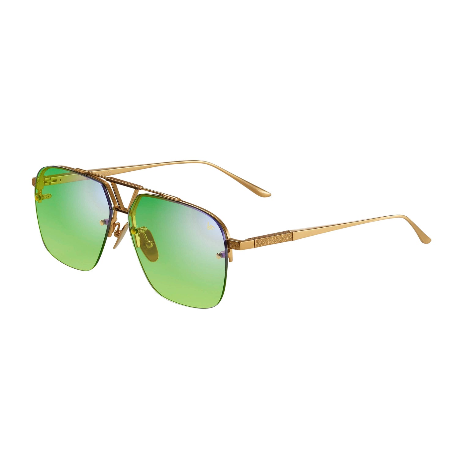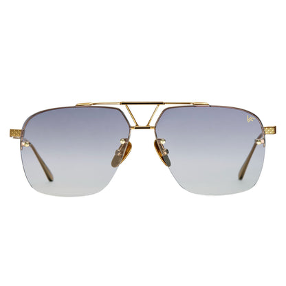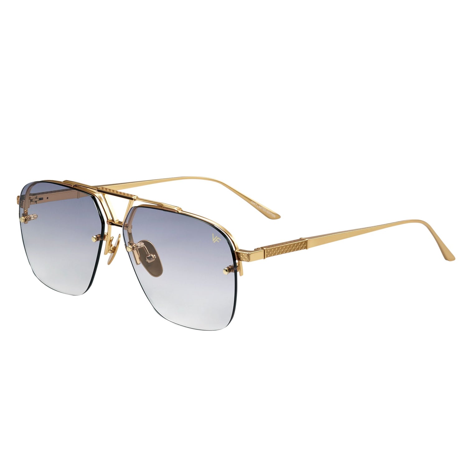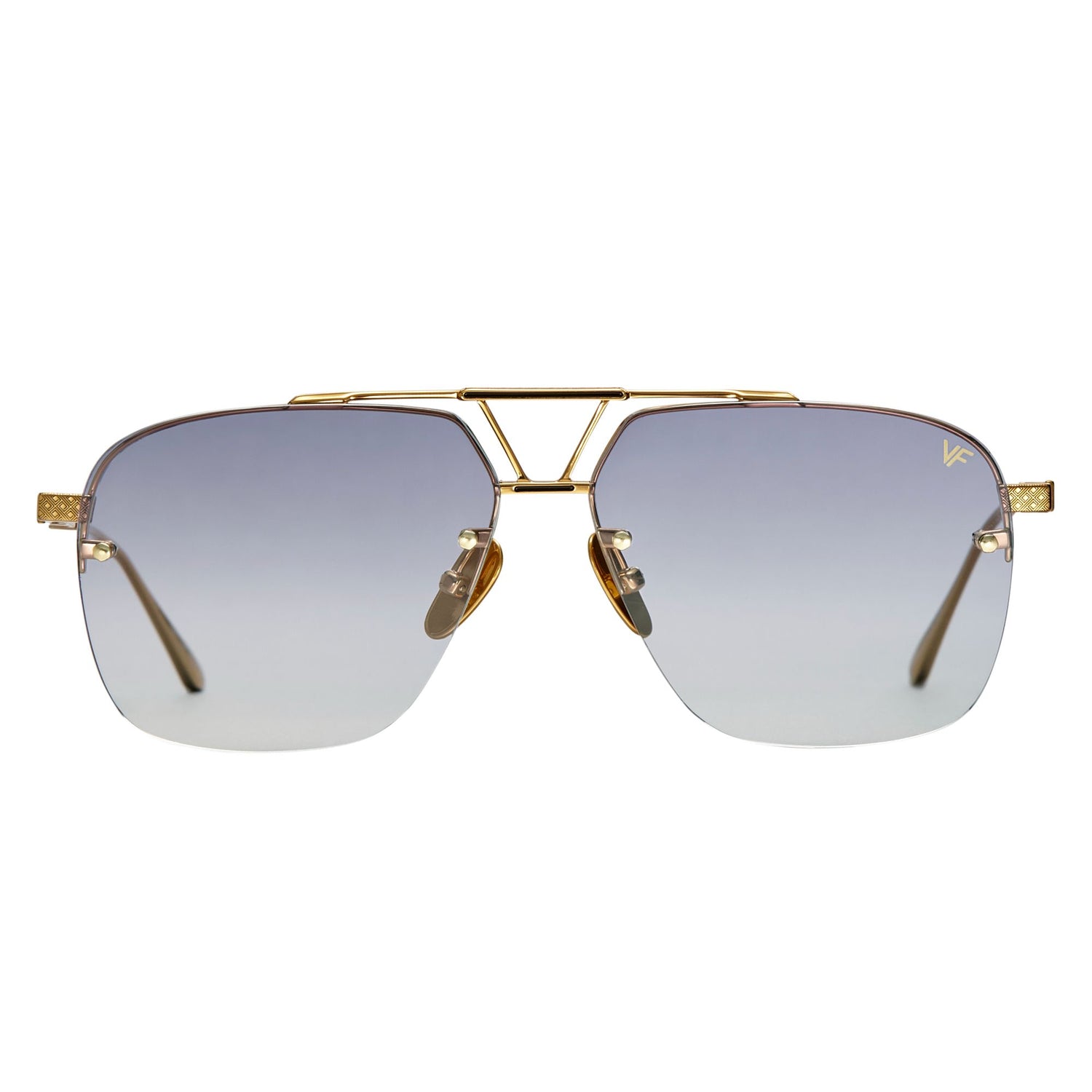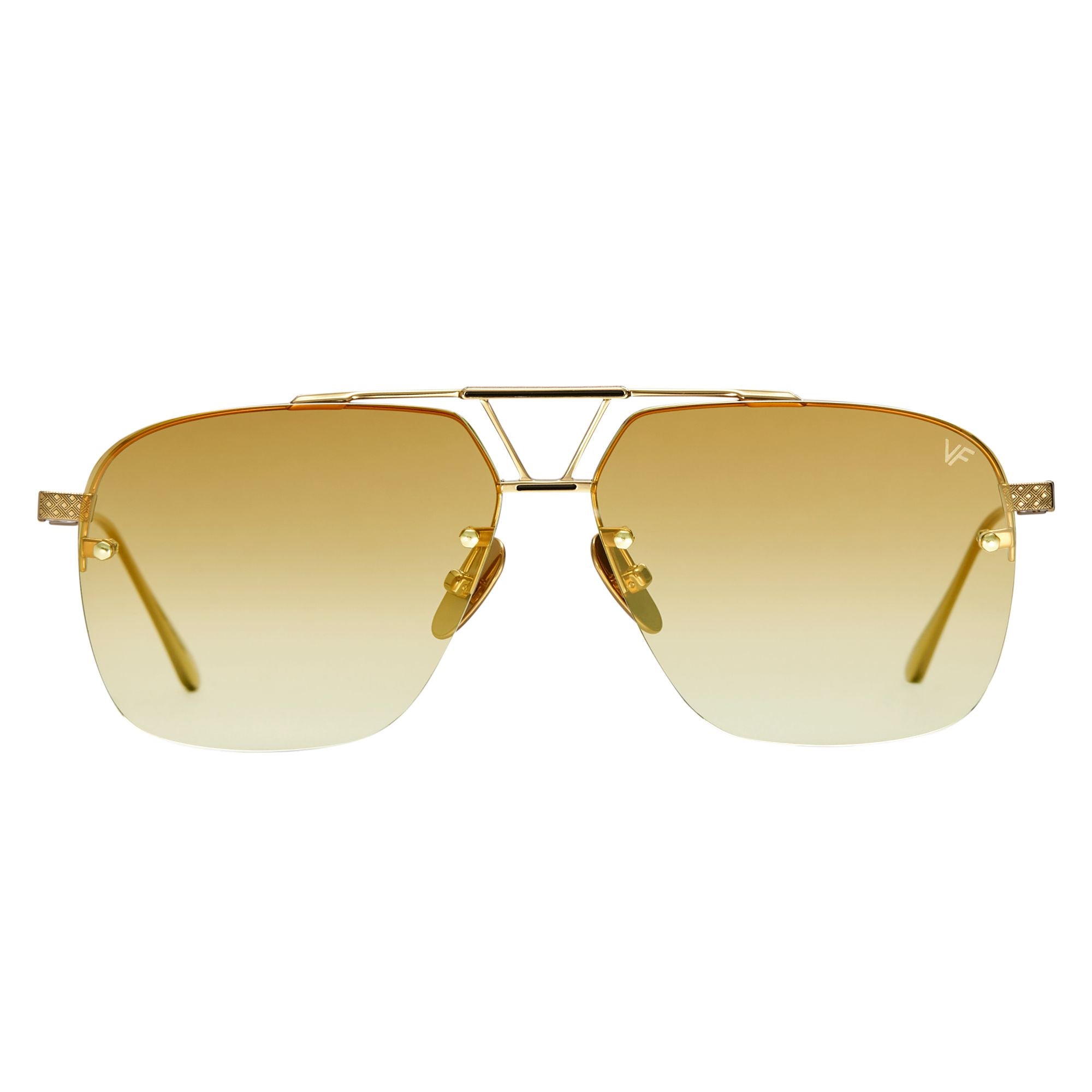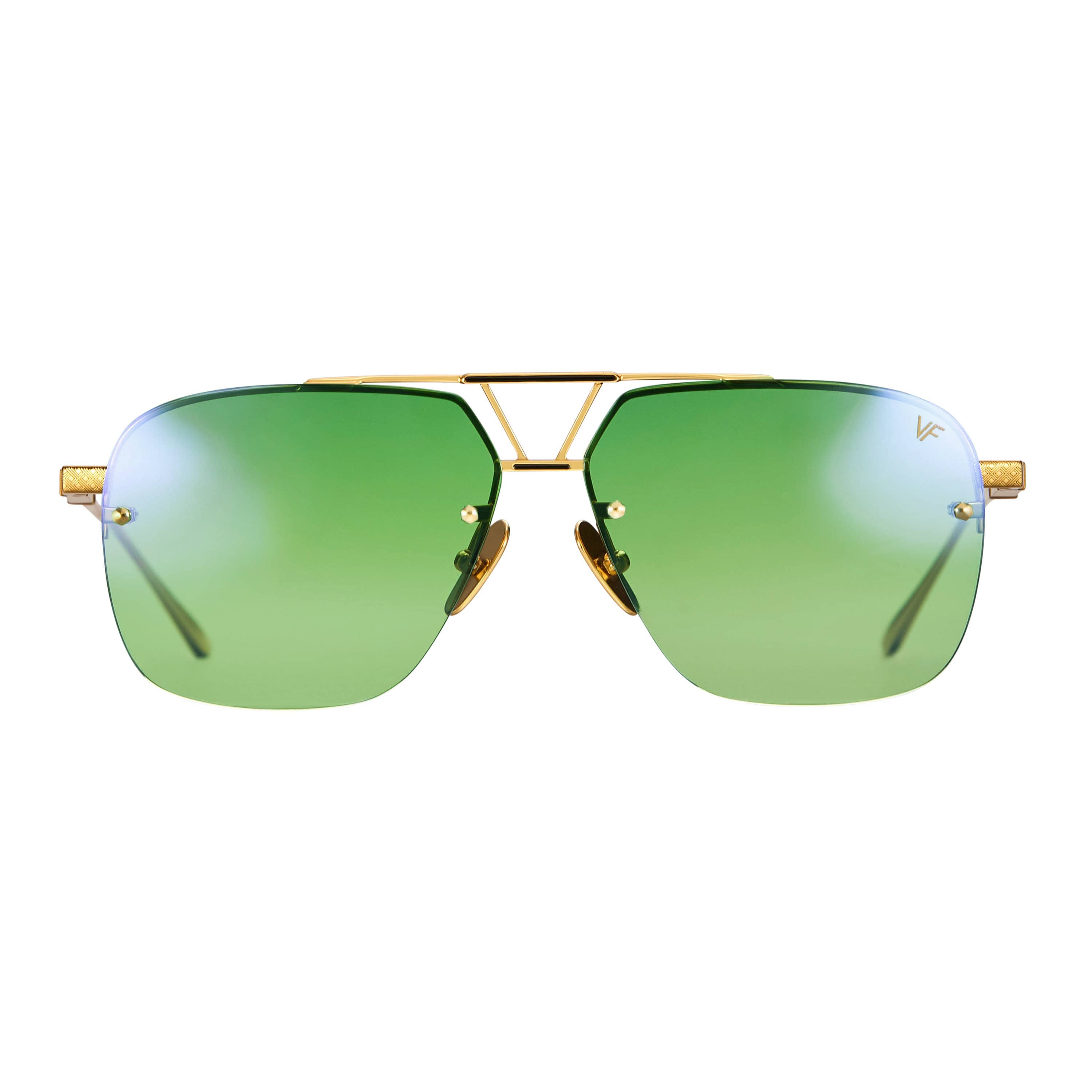 In the 1980s, the Eyewear industry was desperate for technological innovation. Based on their view of the future, we created the falcon. Unlike any other frames, the light titanium base, 24 karat, gold accents, and front drill mounted specialty lenses pay homage to a very special time in Optical. The sides of the frame have markings from an old aviation model called the falcon.