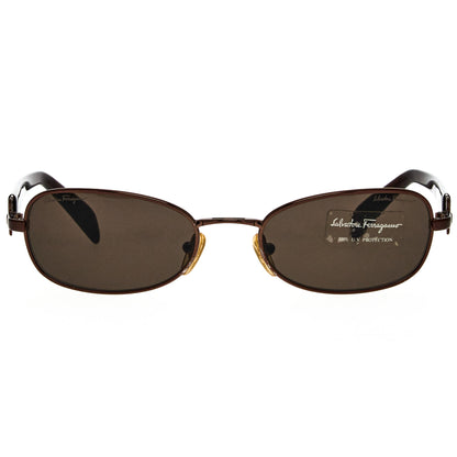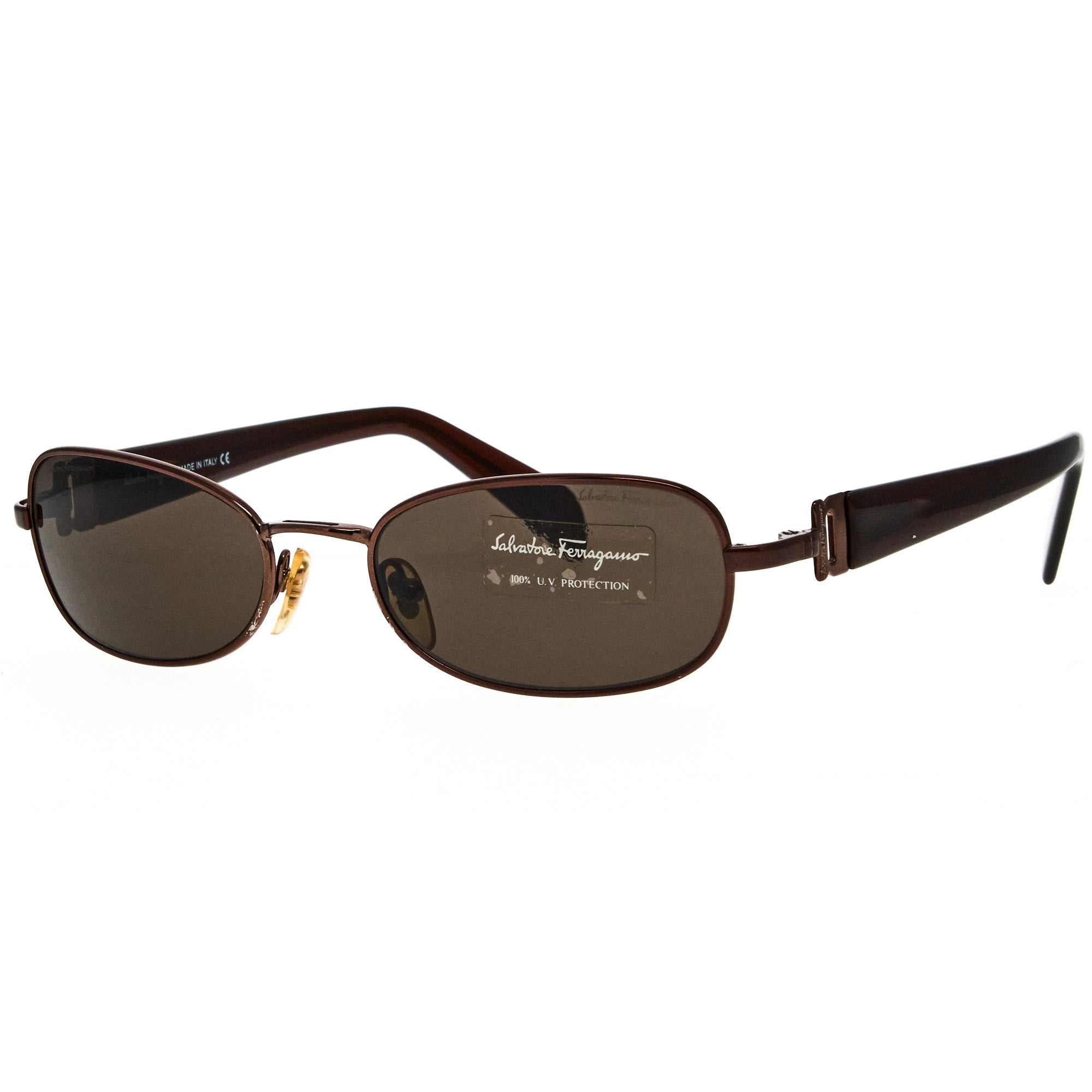 The Ferragamo 1018 519 63 135 vintage sunglasses, with its bronze/brown frame and iconic oval silhouette, is a rare vintage sunglasses find for collectors.
