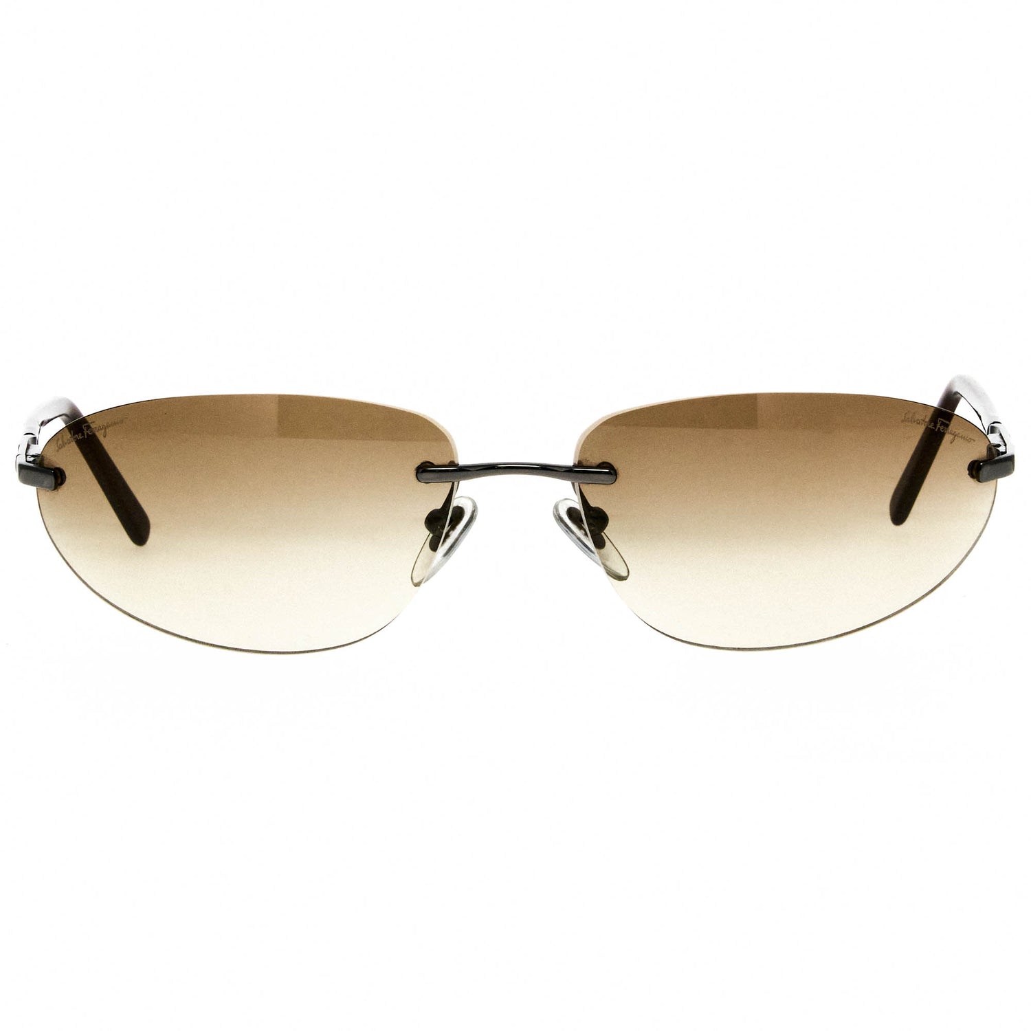 The Ferragamo 1044 502 13 vintage sunglasses, with its silver/brown transparent frame and iconic oval silhouette, is a rare vintage sunglasses find for collectors.