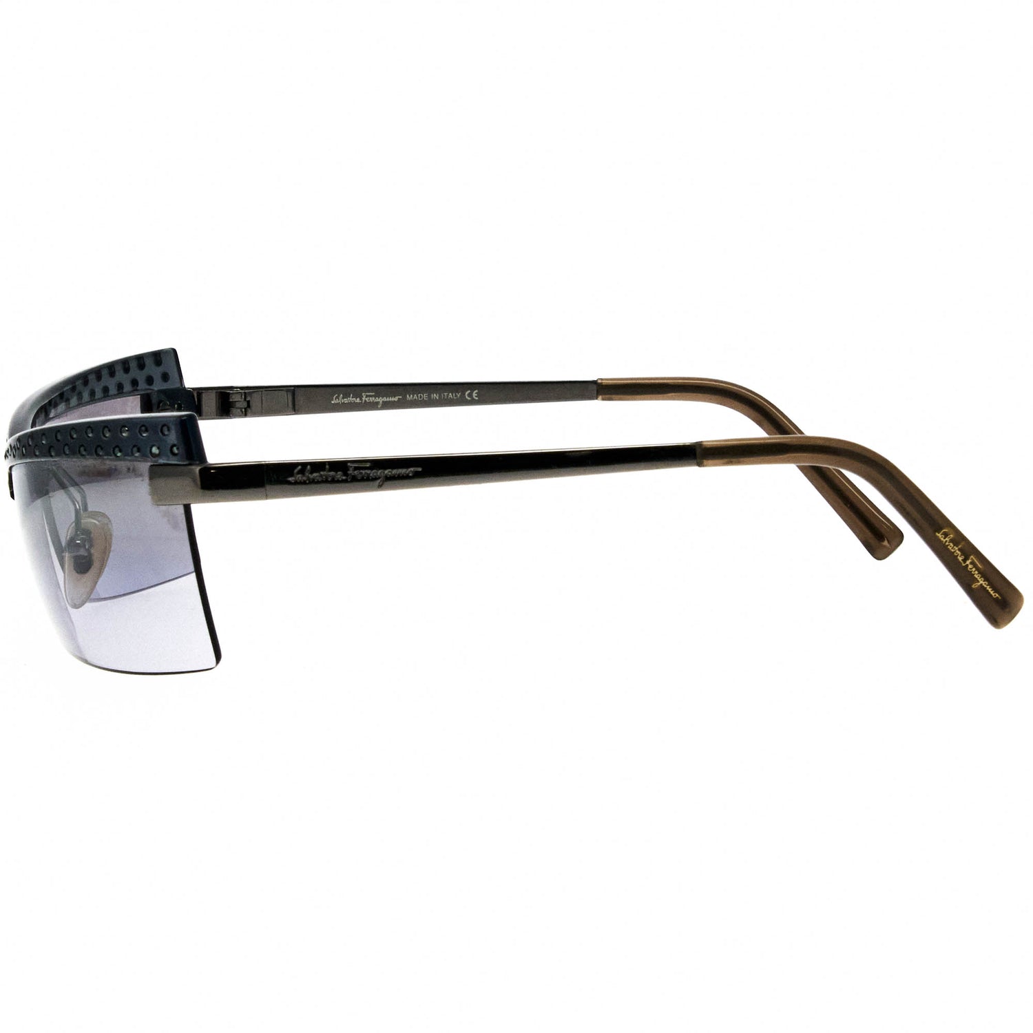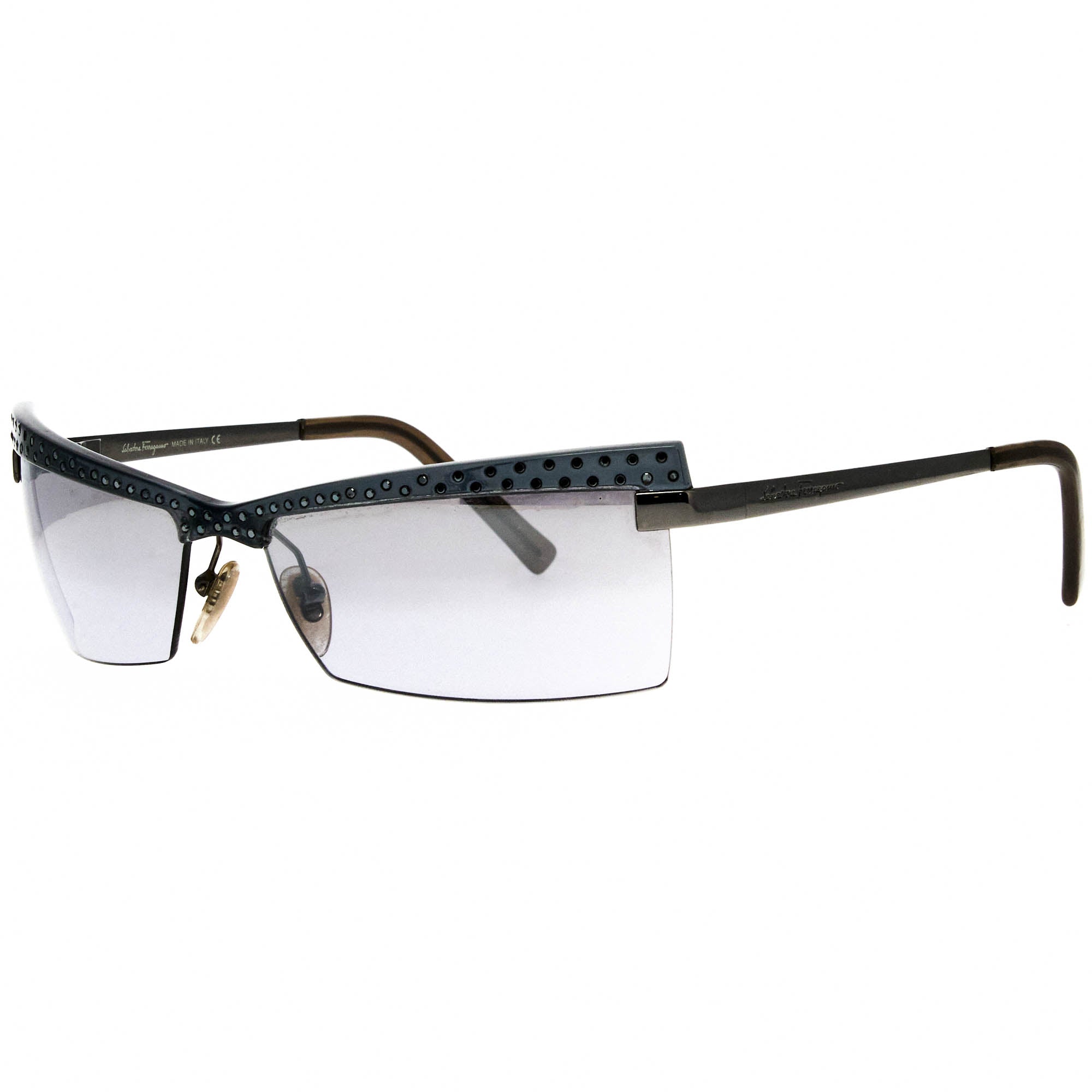 The Ferragamo 2064B 1002 6V vintage sunglasses, with its black frame and iconic rectangular silhouette, is a rare vintage sunglasses find for collectors.