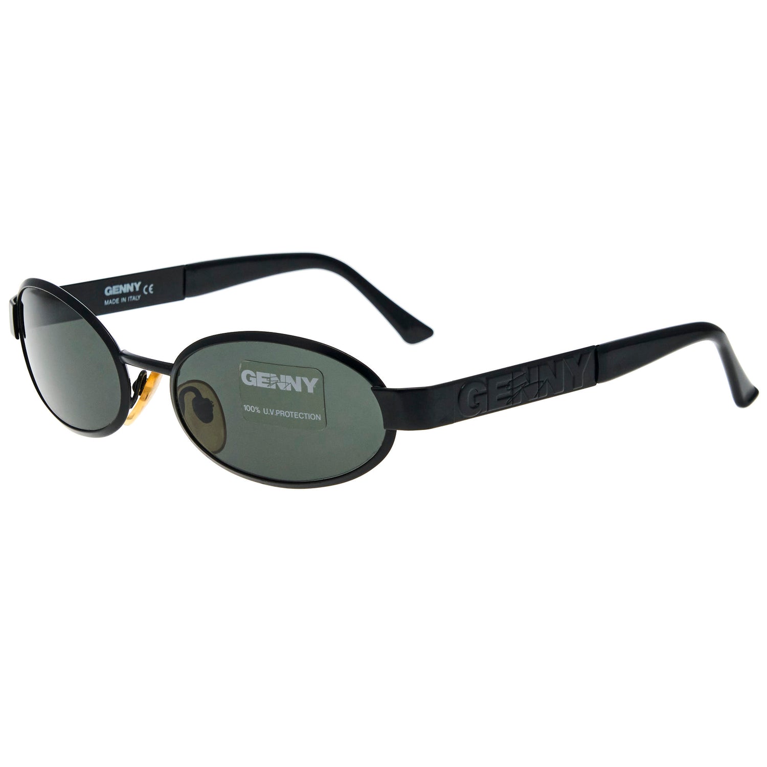 The Genny 5247 125 vintage sunglasses, with its black frame and iconic oval silhouette, is a rare vintage sunglasses find for collectors.