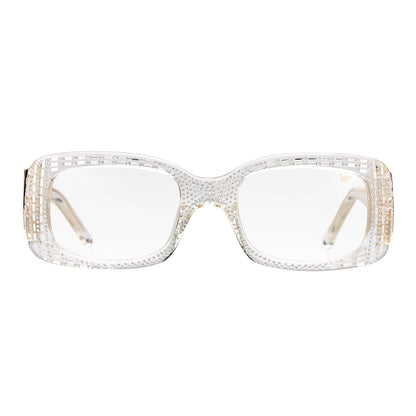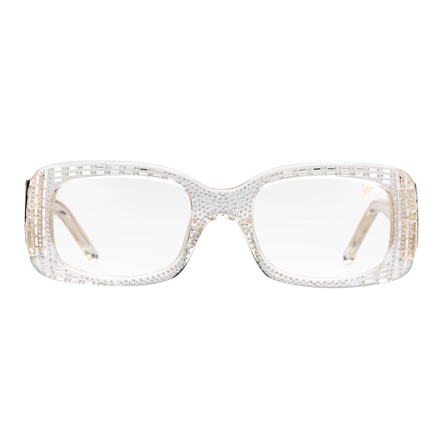 A frame is meant to empower you. The sleek acetate lines, combined with the bold 24KT gold VF cues, make The Godfather an instant classic in the ever growing Vintage Frames line. The midnight black acetate with clear lenses will leave an everlasting impression on anyone that comes your way.