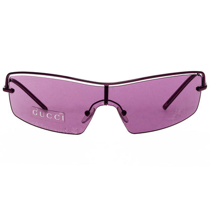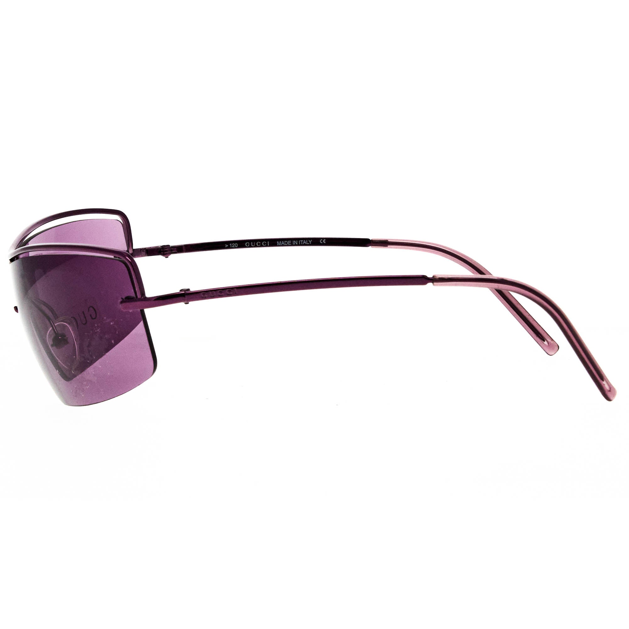 The Gucci GG 2683S 834 sunglasses, with its purple frame and iconic shield silhouette, is a rare vintage sunglasses find for collectors.