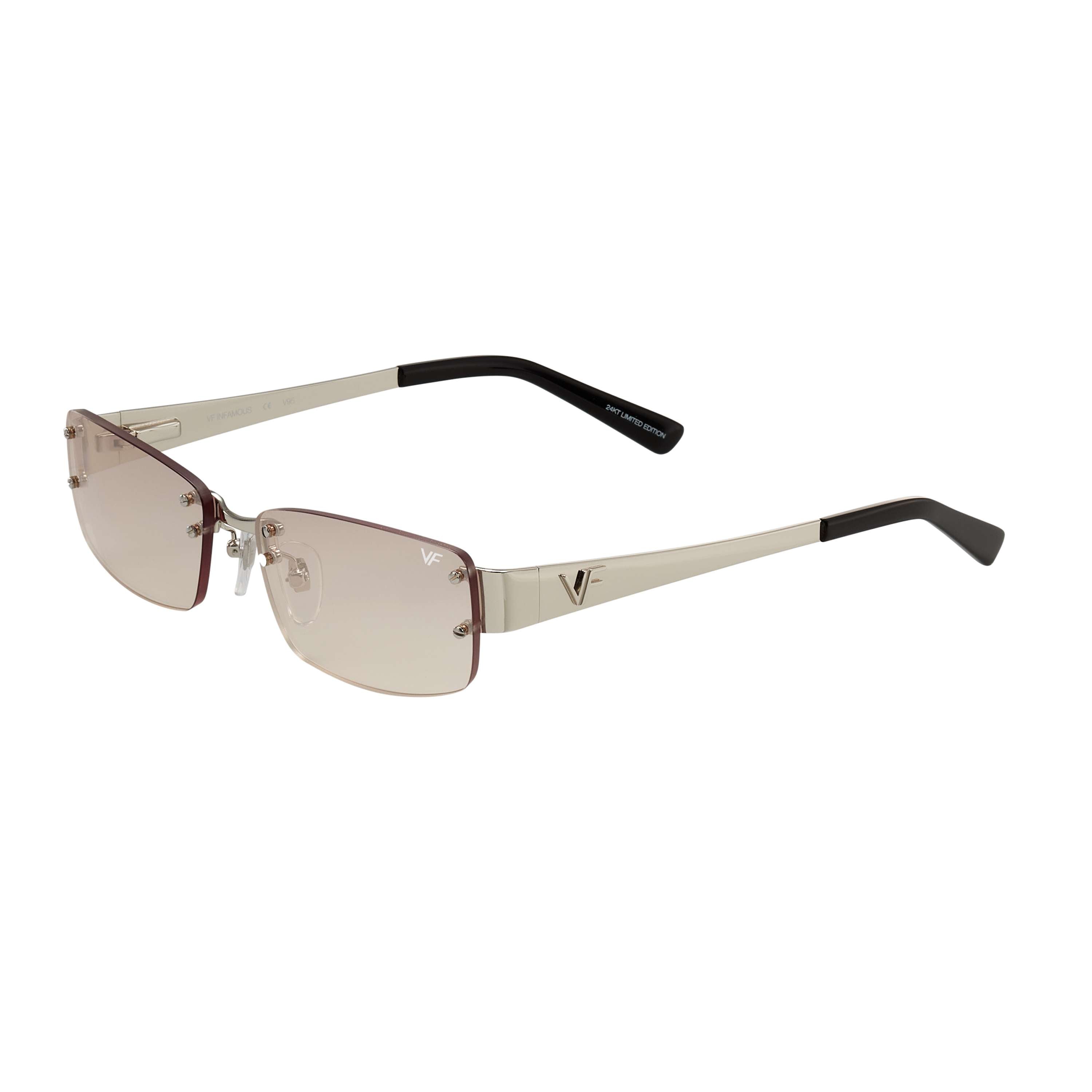 The VF Infamous is the latest addition to our rimless drill mount collection. Featuring 24KT white gold spring-hinged arms, paired with custom, double-reinforced ’90s dipped lenses, it’s a true classic. Inspired by timeless designs from 1998, the VF Infamous pays homage to that era, with our twist.