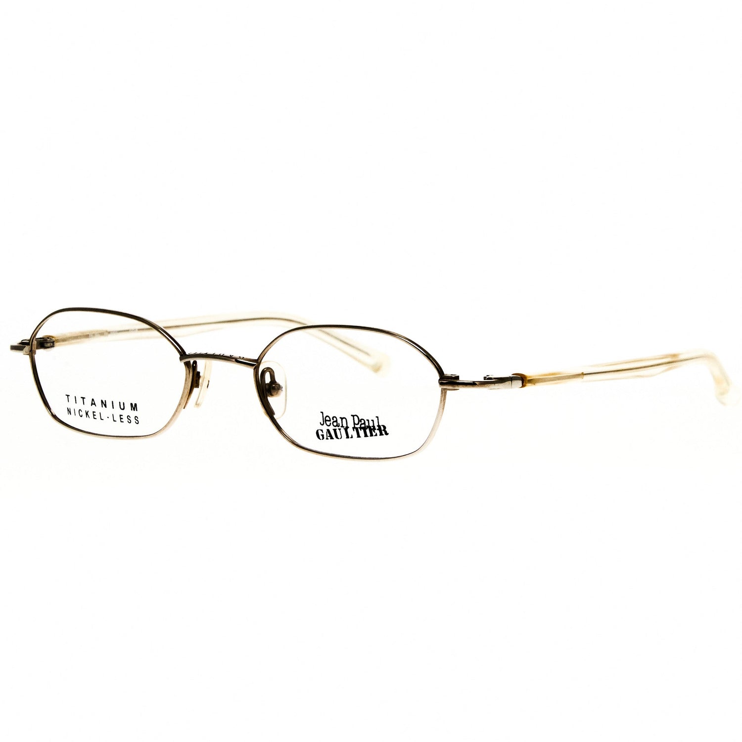 The Jean Paul Gaultier 55 0035 frames, with its silver frame and iconic rectangular silhouette, is a rare vintage frames find for collectors.