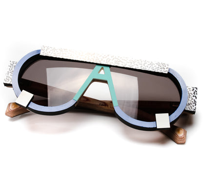 The Eighties Collection draws heavily on the eighties aesthetics presents glasses that are like small sculptures for the face, characterized by decors in laminate which are as crucial as they were for the pieces of furniture designed in this period.