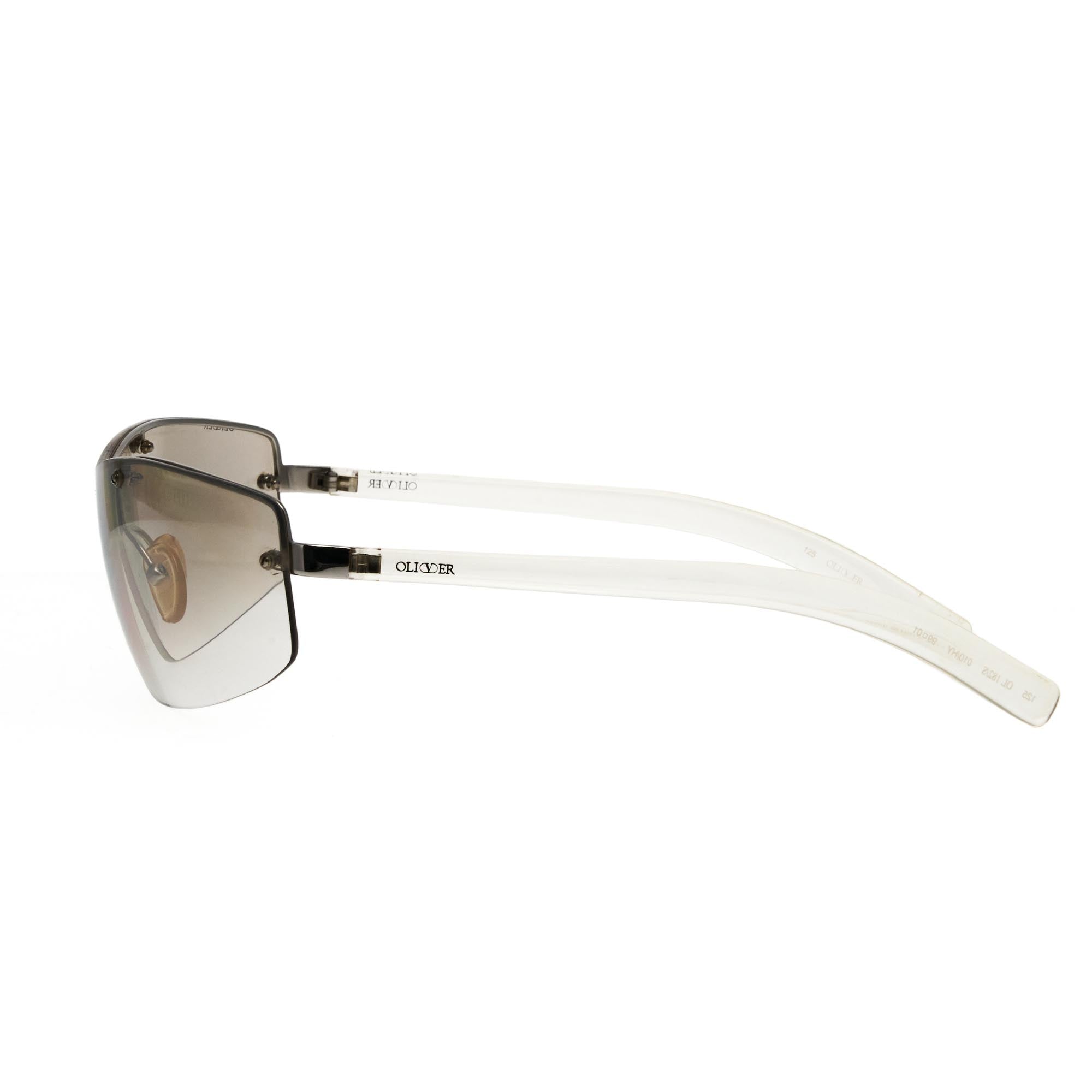 The Oliver by Valentino 125 Ol 182/S 010Hy vintage sunglasses, with its transparent frame and iconic shield silhouette, is a rare vintage sunglasses find for collectors.