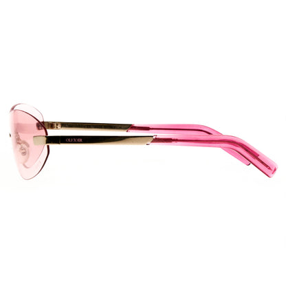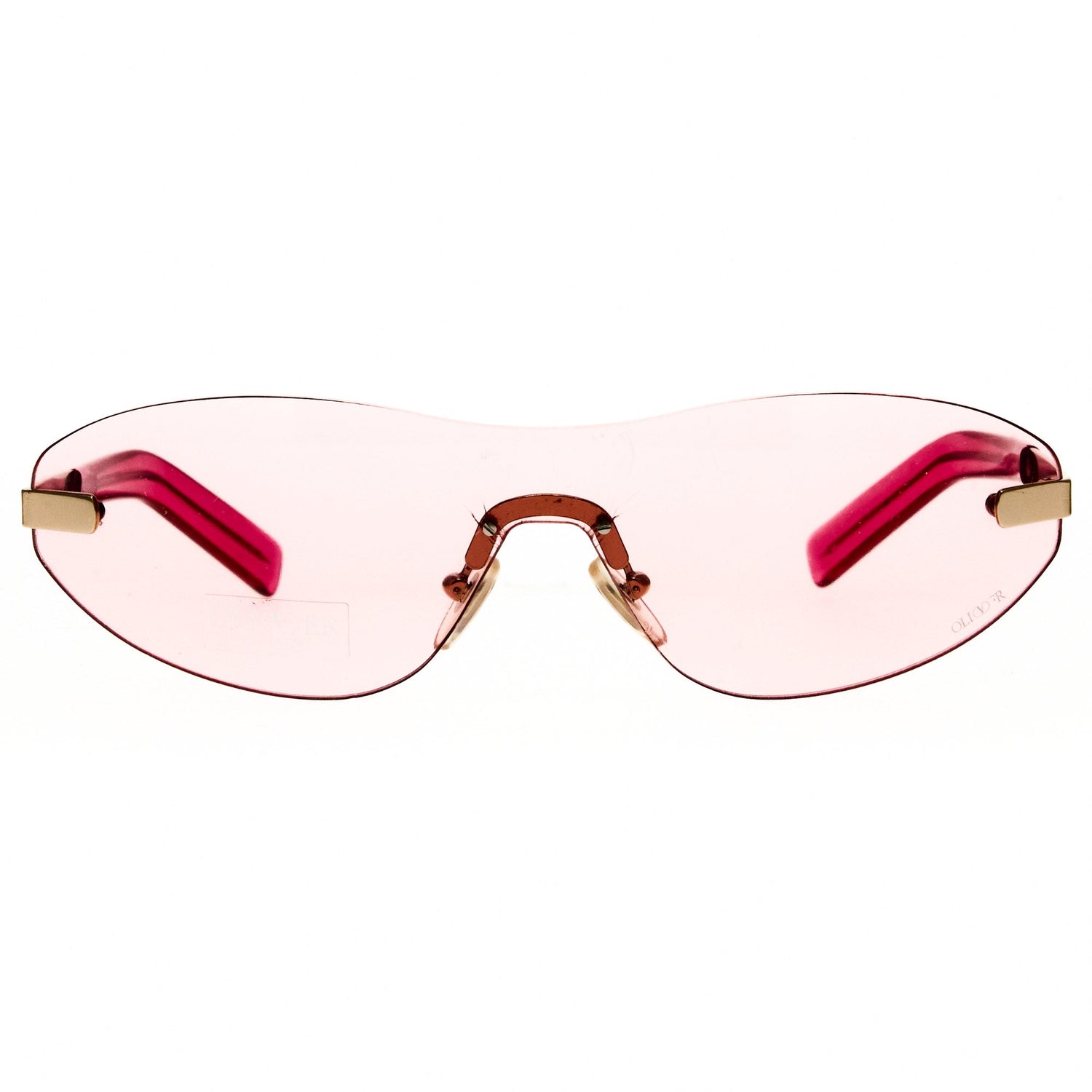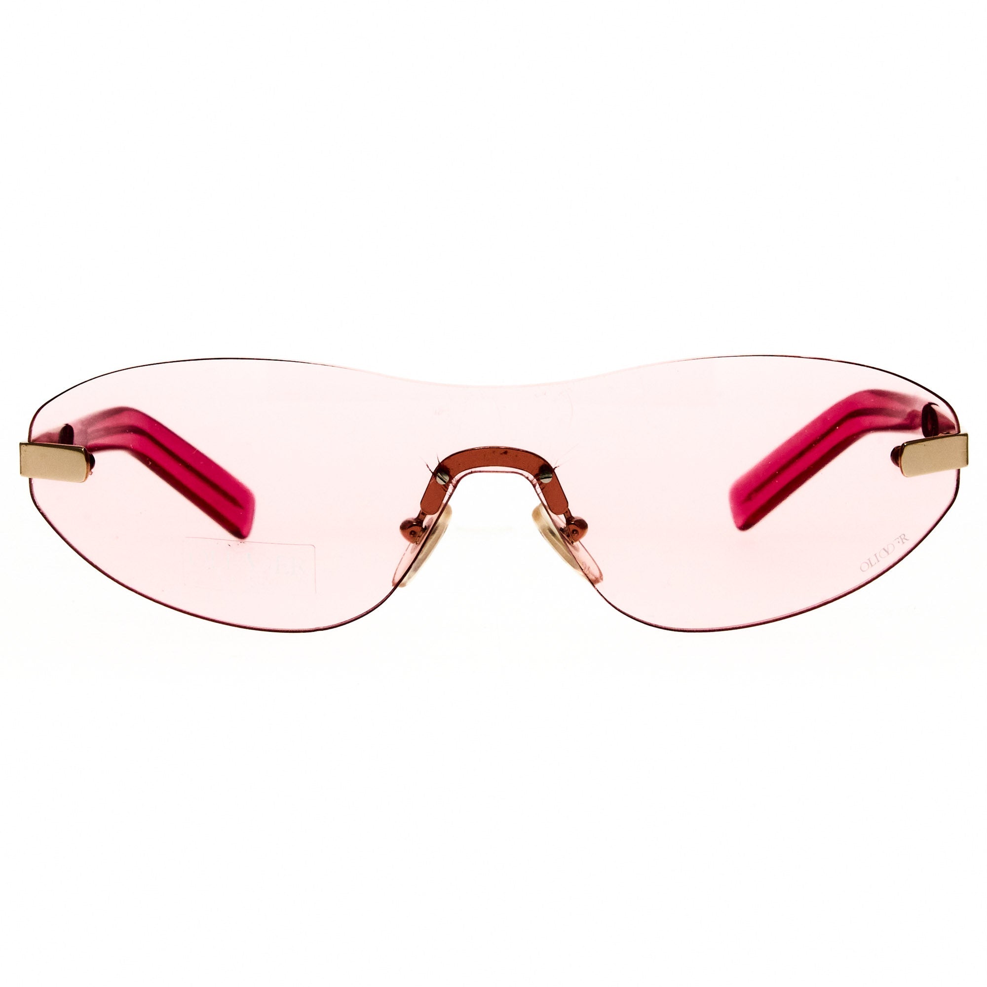 The Oliver by Valentino 223S 000 vintage sunglasses, with its pink/silver frame and iconic rimless silhouette, is a rare vintage sunglasses find for collectors.