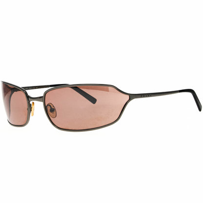 The Prada SPR 59E 5AV 7B1 sunglasses, with its silver frame and iconic rectangular silhouette, is a rare vintage sunglasses find for collectors.