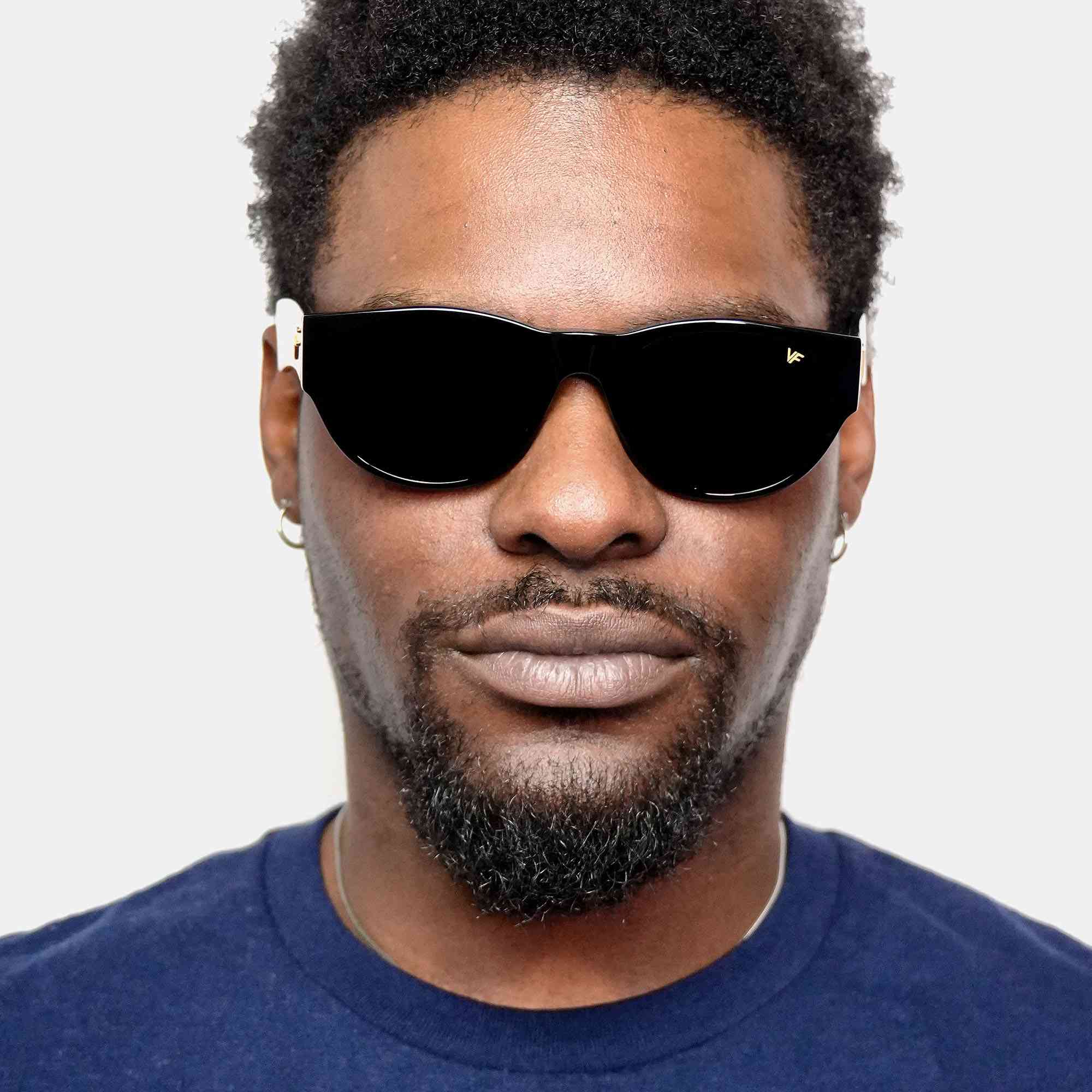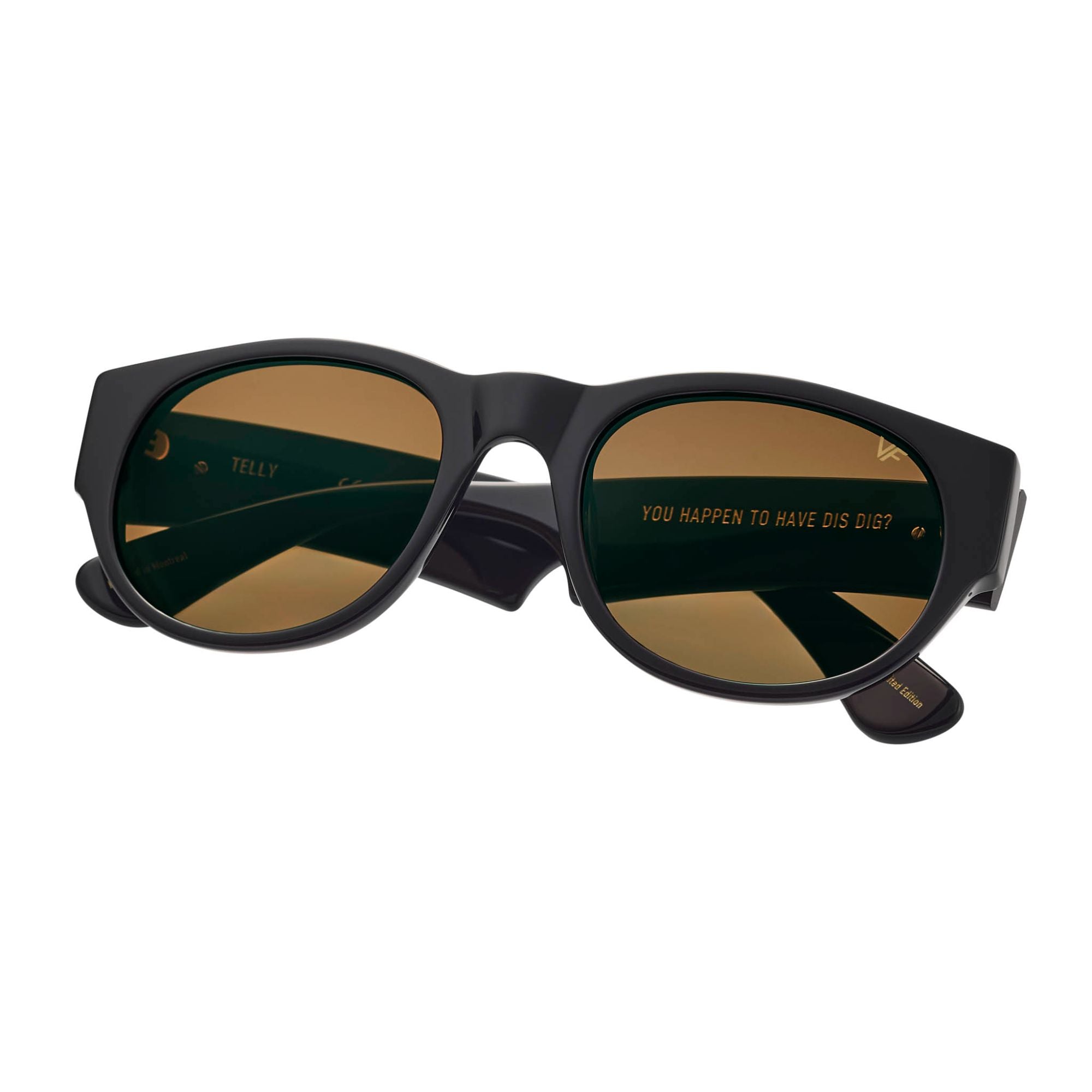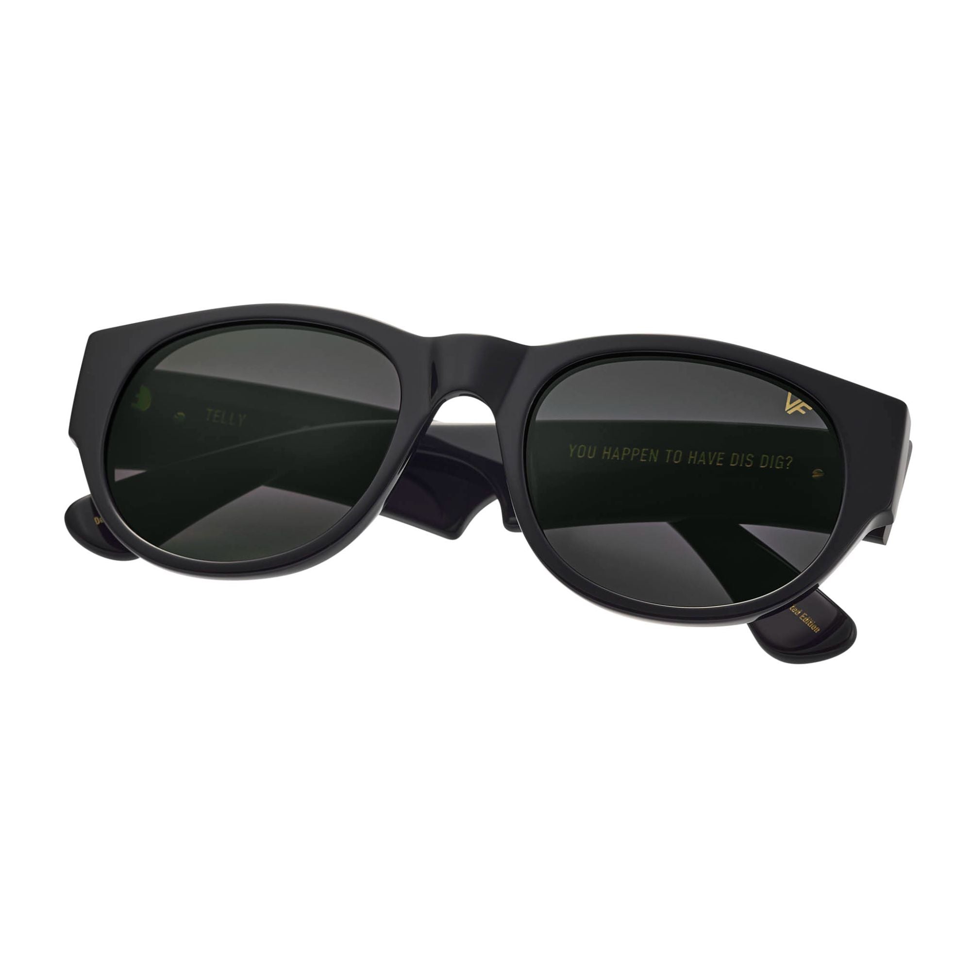 The VF Telly embodies the classic styling of 1990s New York youth. Its timeless design features a classic front silhouette with drop-temple side branches, making it an instant staple. Crafted from vintage black acetate, the VF Telly is available with two custom lens options.
