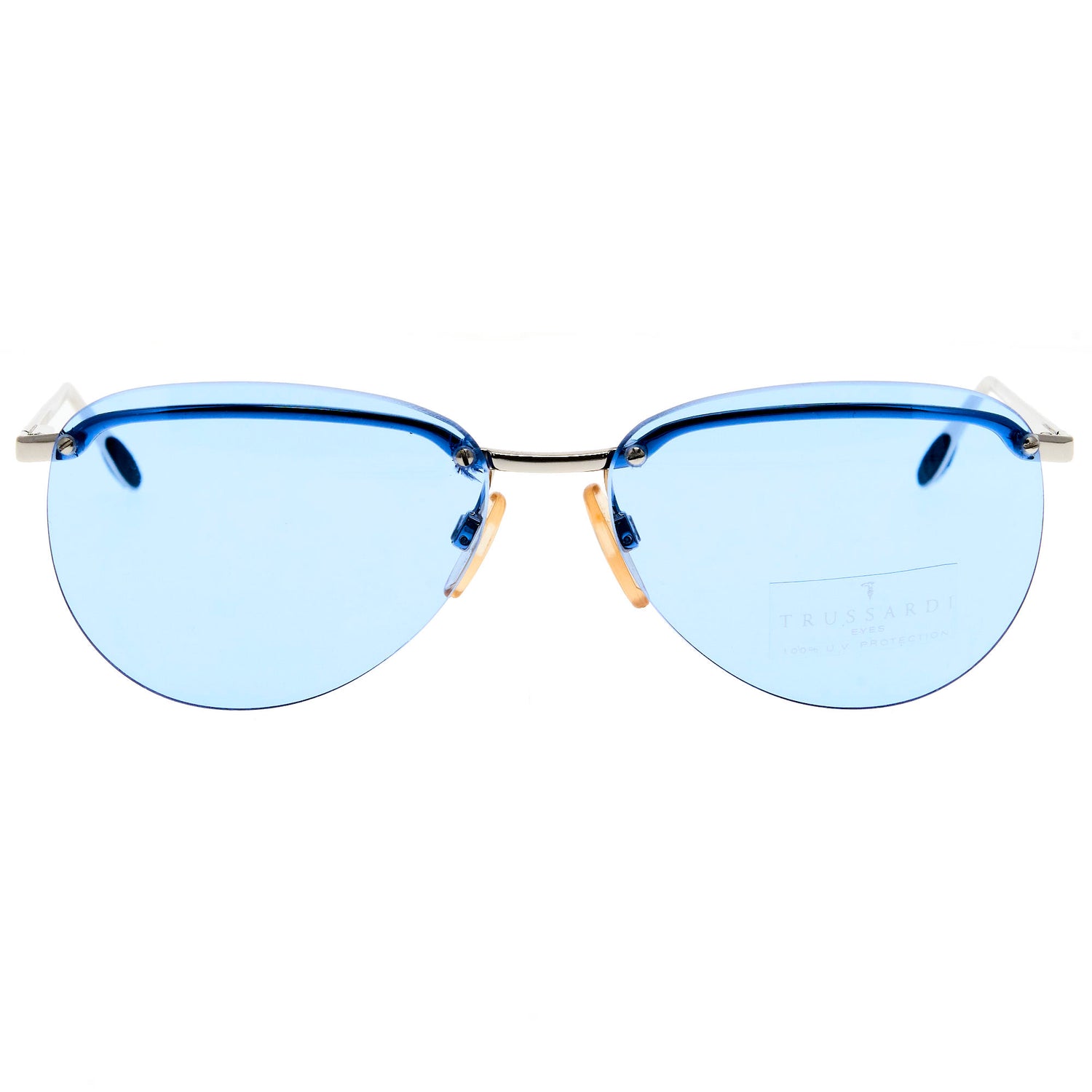The Trussardi TE20221 712 vintage sunglasses, with its silver frame and iconic half rim silhouette, is a rare vintage sunglasses find for collectors.
