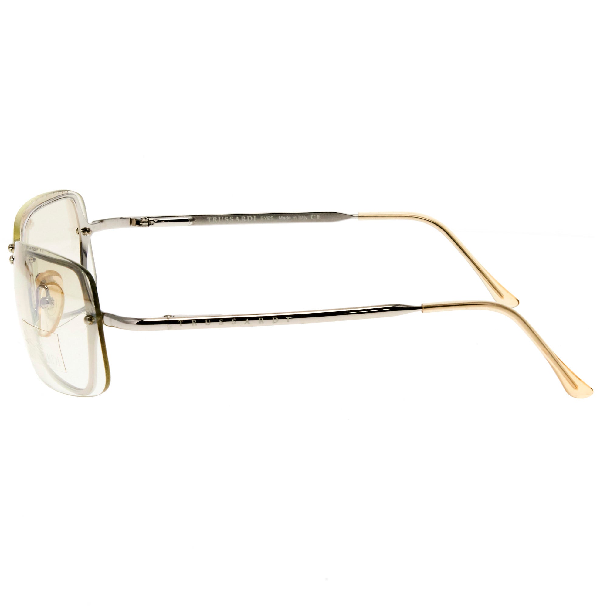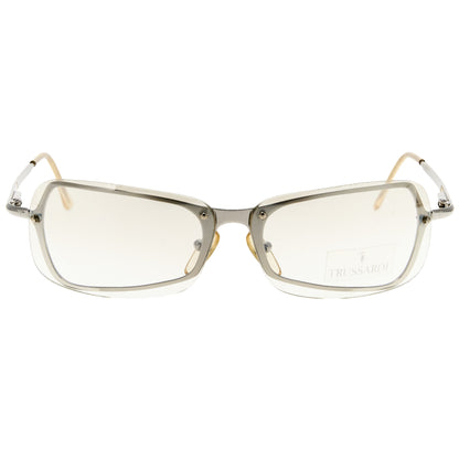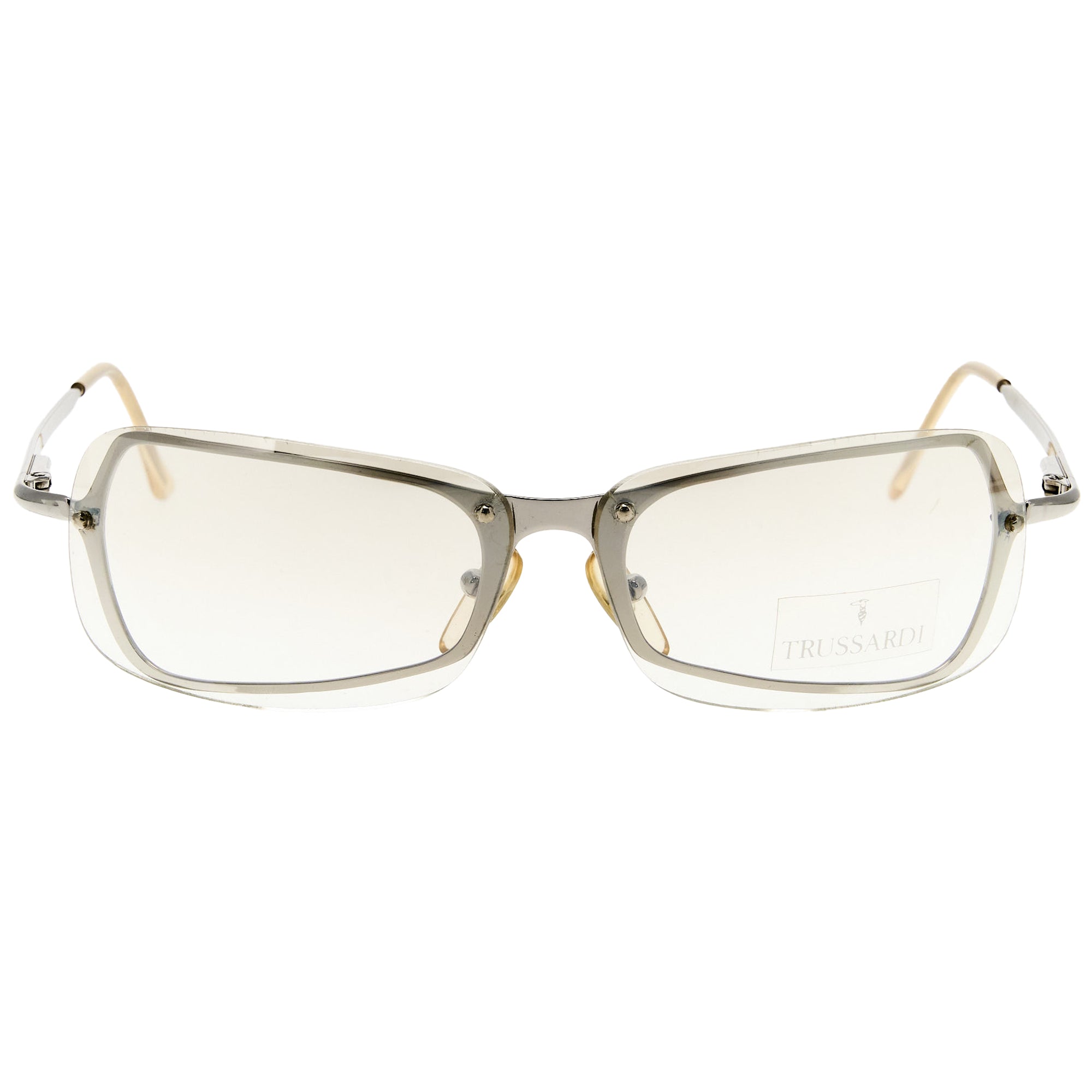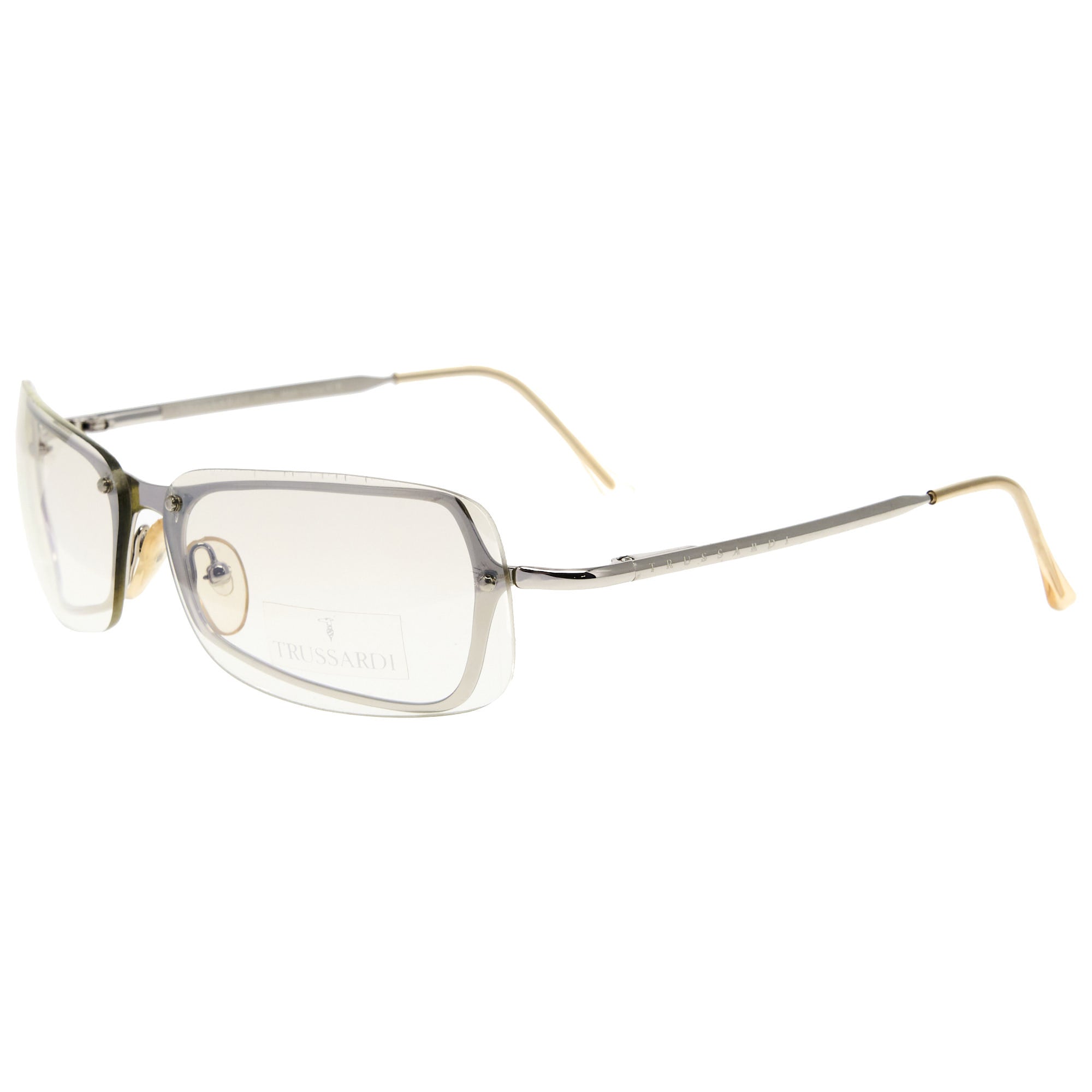 The Trussardi TE20379 712 vintage sunglasses, with its silver frame and iconic rectangular silhouette, is a rare vintage sunglasses find for collectors.