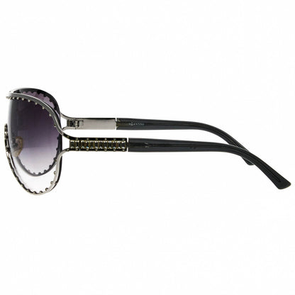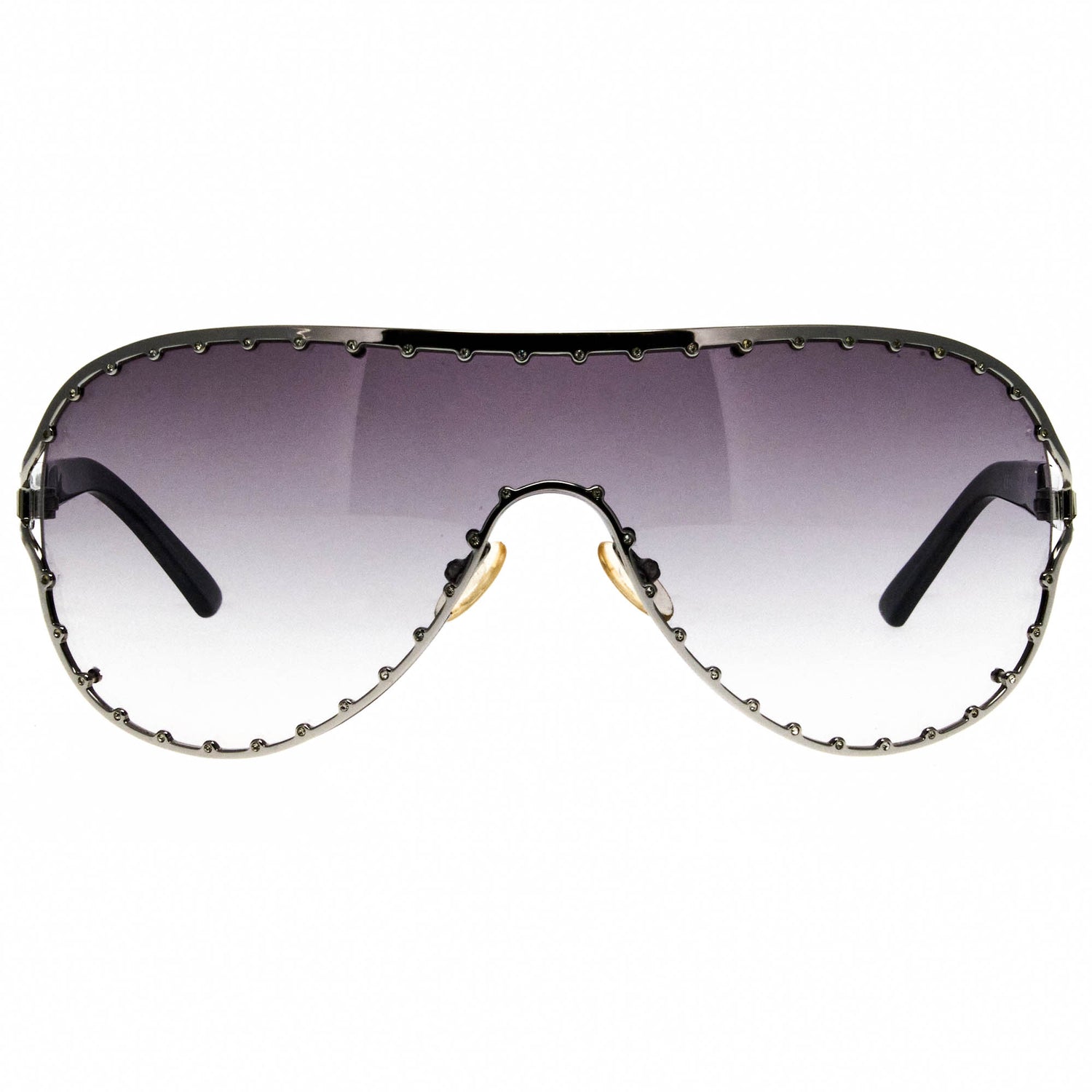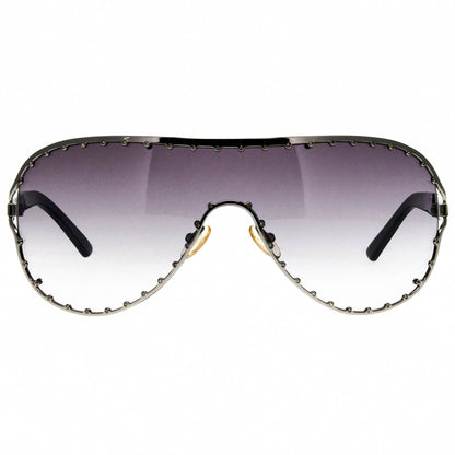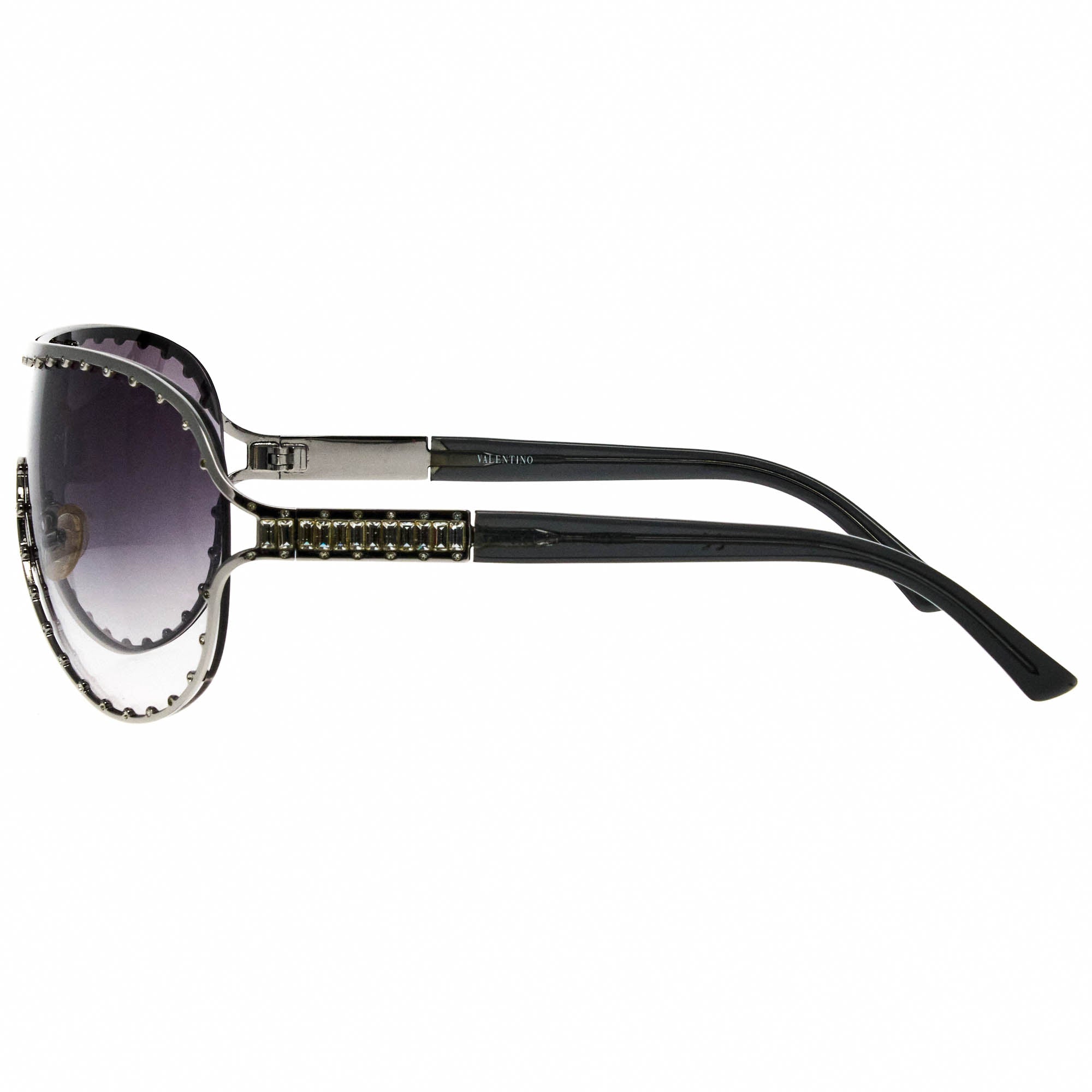 The Valentino 5434S DCEO0 vintage sunglasses, with its silver/black frame and iconic shield silhouette, is a rare vintage sunglasses find for collectors.