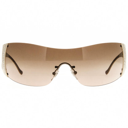 The Versace 2034B 1109 13 sunglasses, with its white frame and iconic shield silhouette, is a rare vintage sunglasses find for collectors.