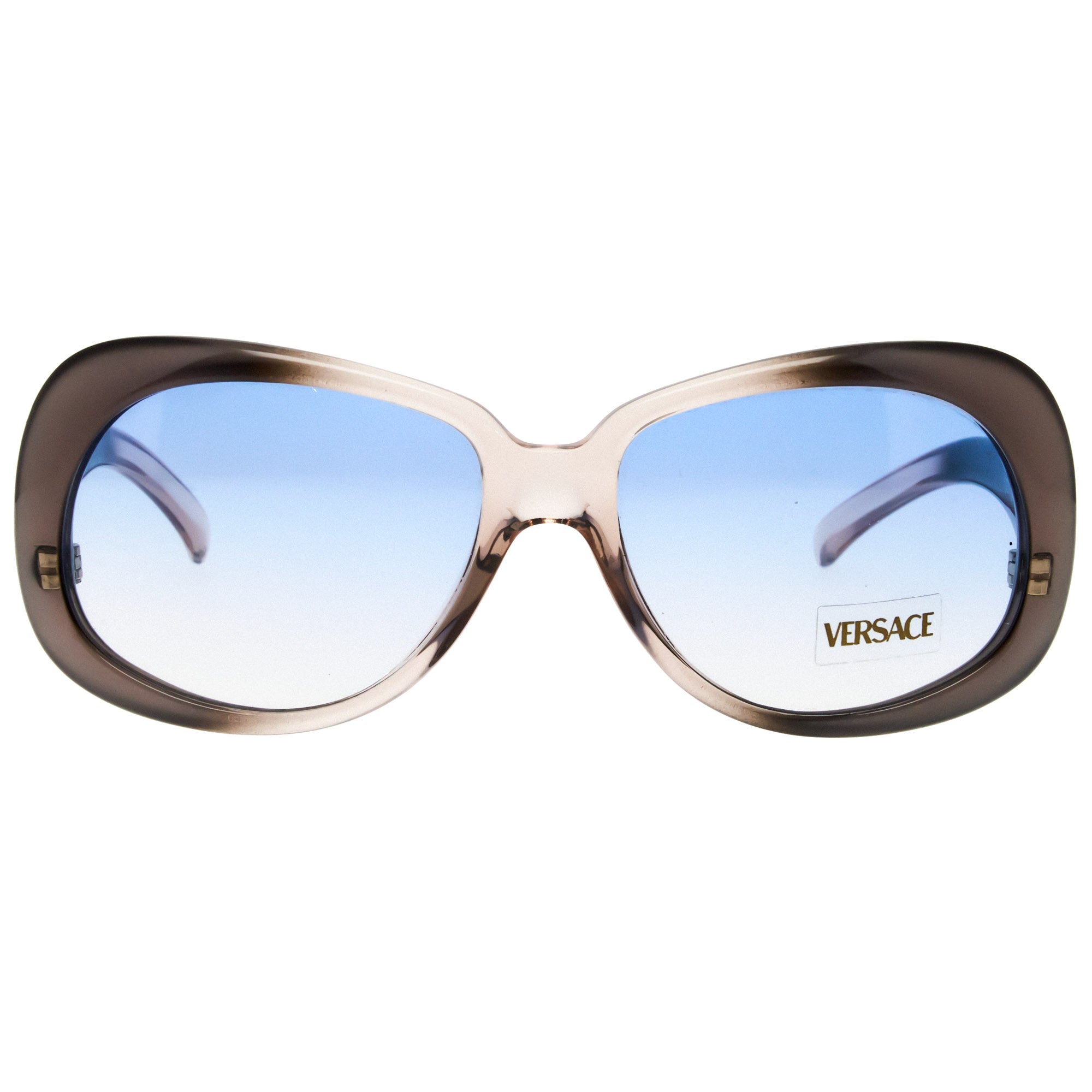 The Versace 739 670 sunglasses, with its gray frame and iconic round silhouette, is a rare vintage sunglasses find for collectors.