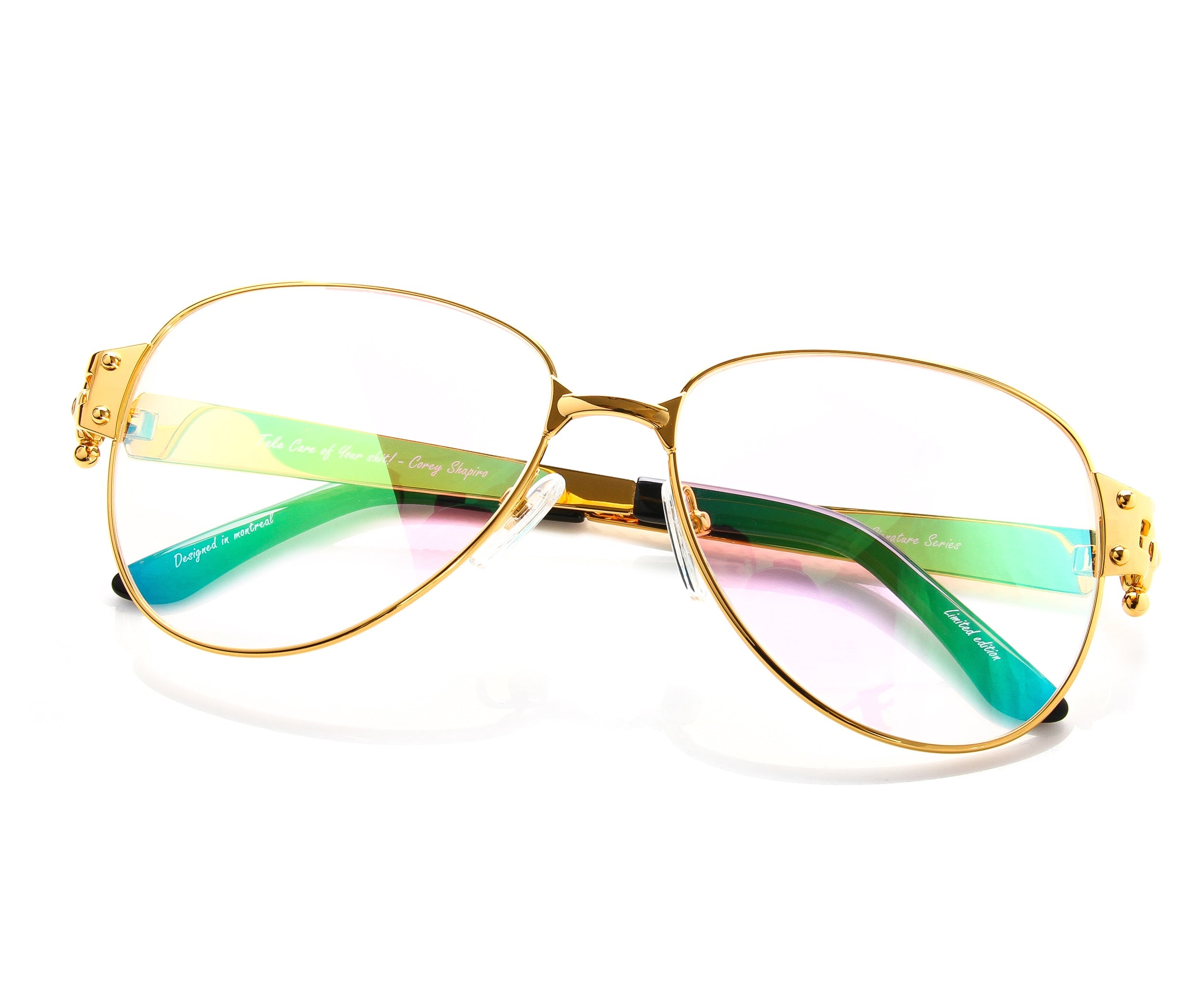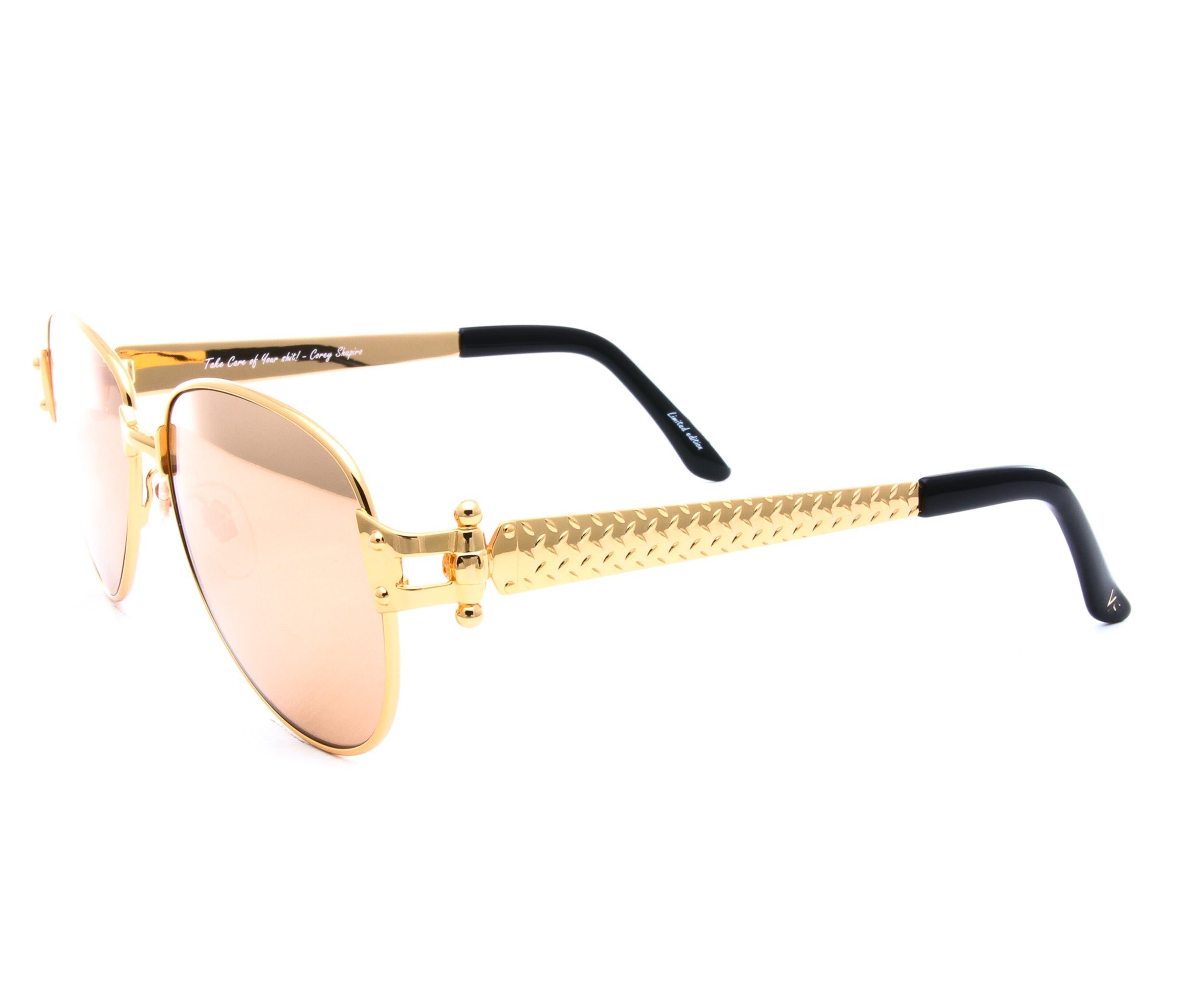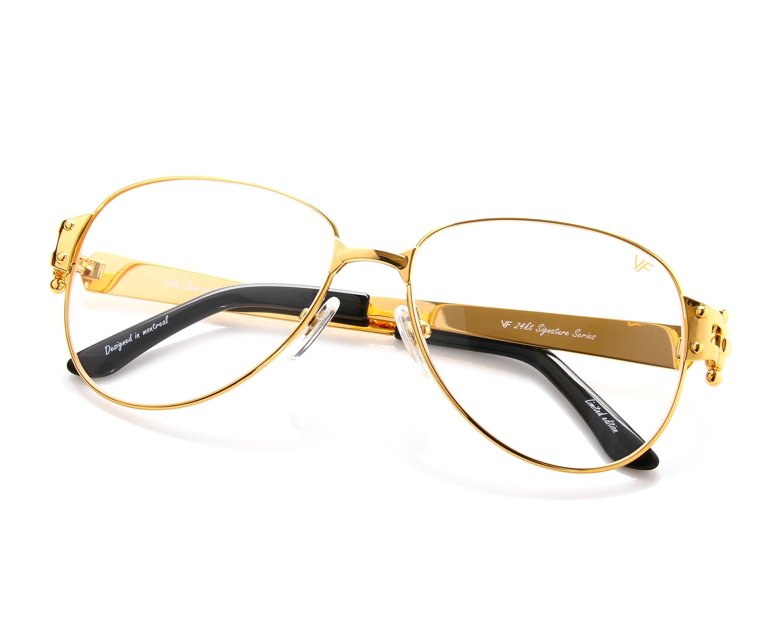 Made using vintage machinery and techniques, the 2001 Millenium Edition features a 24KT yellow gold frame and is available in several lens options. Vintage Frames Company pays homage to its vintage archive by mixing historical fashion references with today's pop culture to create timeless collections of sunglasses and eyewear. The 2001 Millenium Edition is a unisex style and can be worn to elevate any look; from day to night.