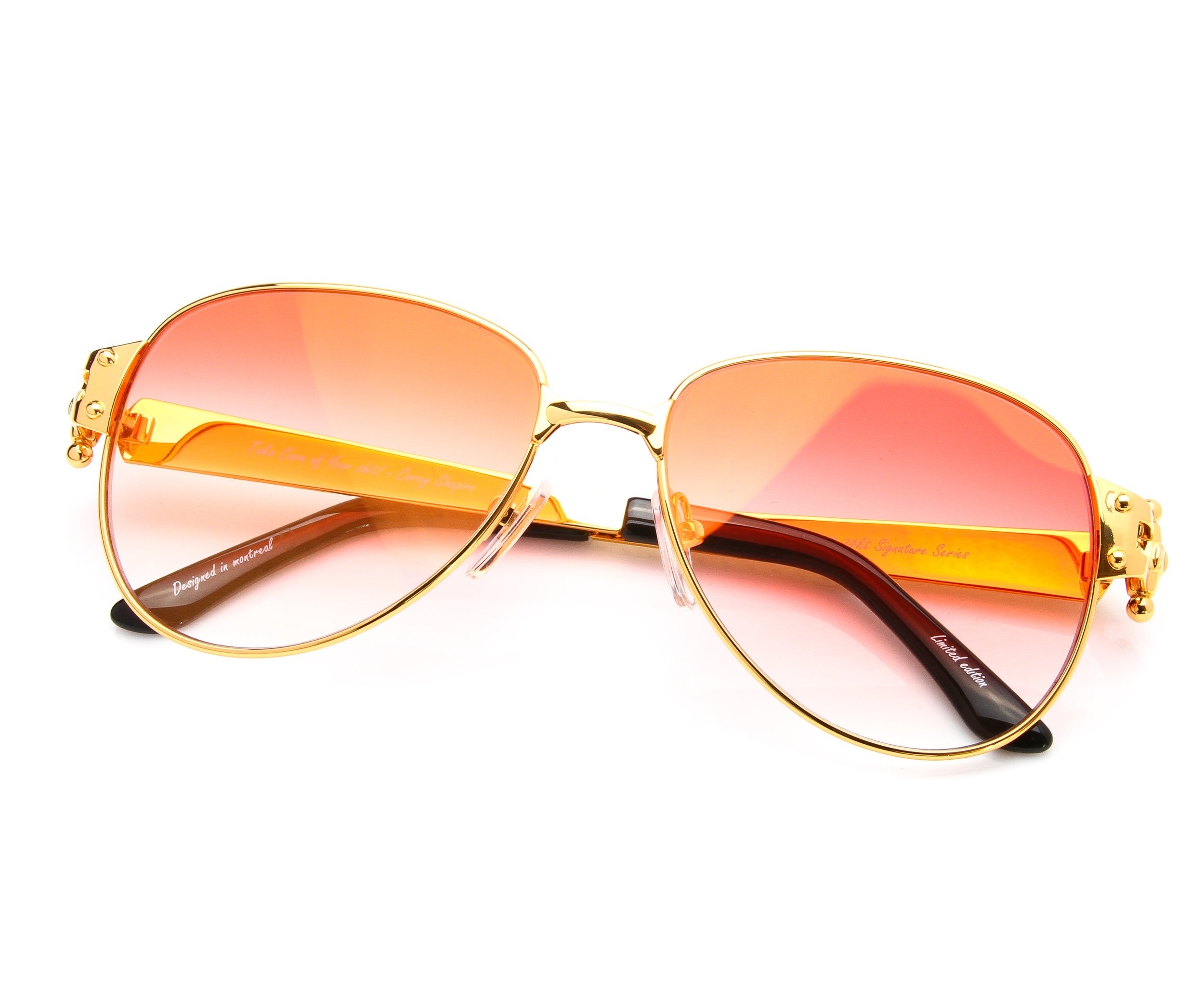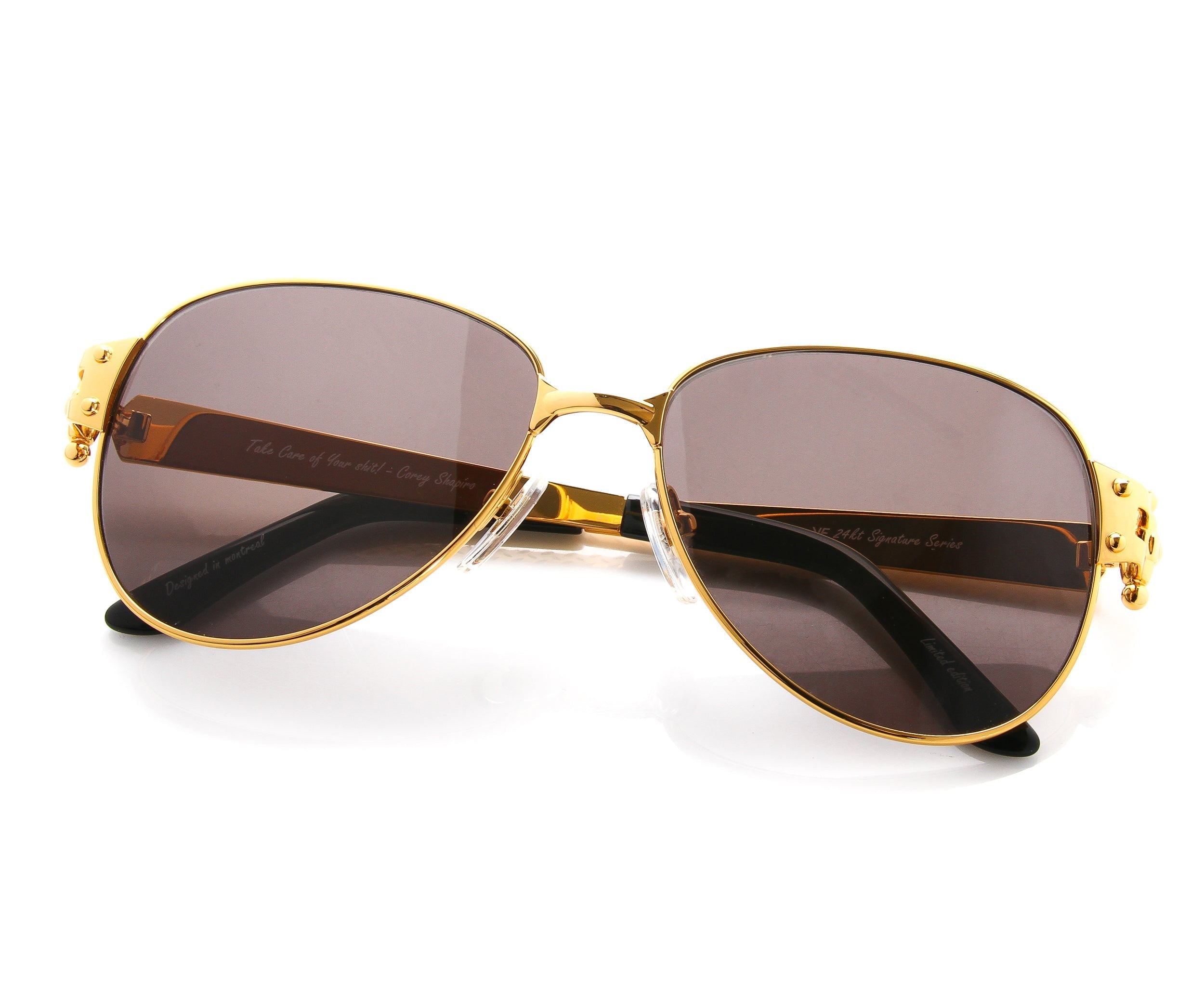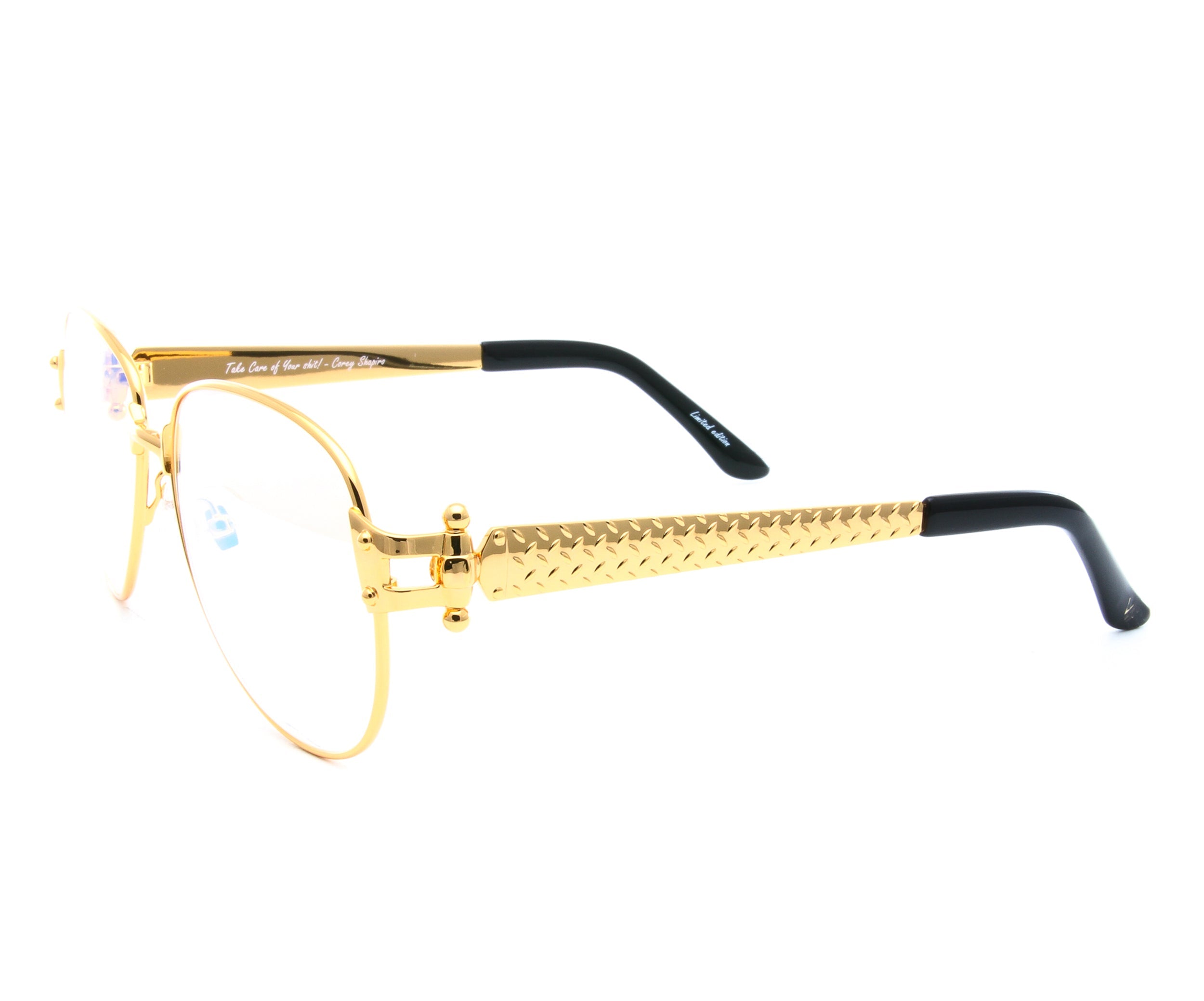 Made using vintage machinery and techniques, the 2001 Millenium Edition features a 24KT yellow gold frame and is available in several lens options. Vintage Frames Company pays homage to its vintage archive by mixing historical fashion references with today's pop culture to create timeless collections of sunglasses and eyewear. The 2001 Millenium Edition is a unisex style and can be worn to elevate any look; from day to night.