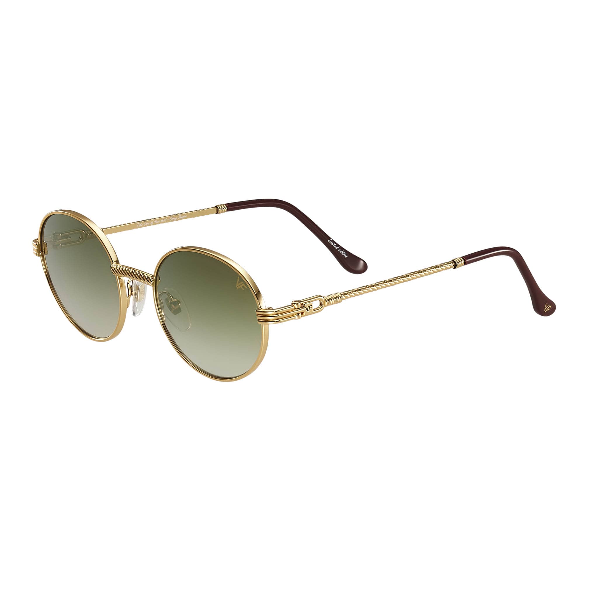 Made using vintage machinery and techniques, the 508 Signature Series features an 18KT yellow gold frame and is available in several lens options. Vintage Frames Company pays homage to its vintage archive by mixing historical fashion references with today's pop culture to create timeless collections of sunglasses and eyewear. The 508 Signature Series is a unisex style and can be worn to elevate any look; from day to night.