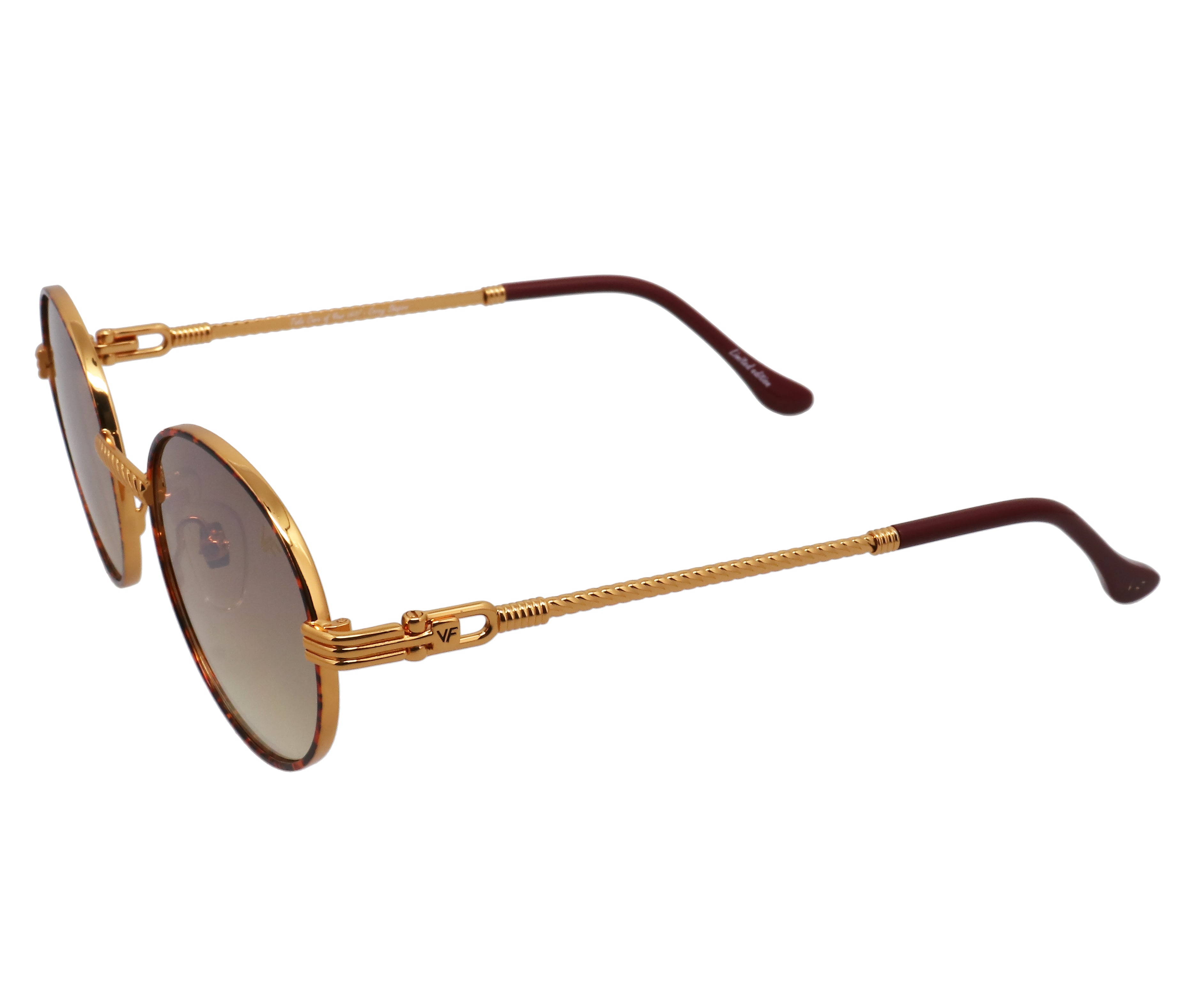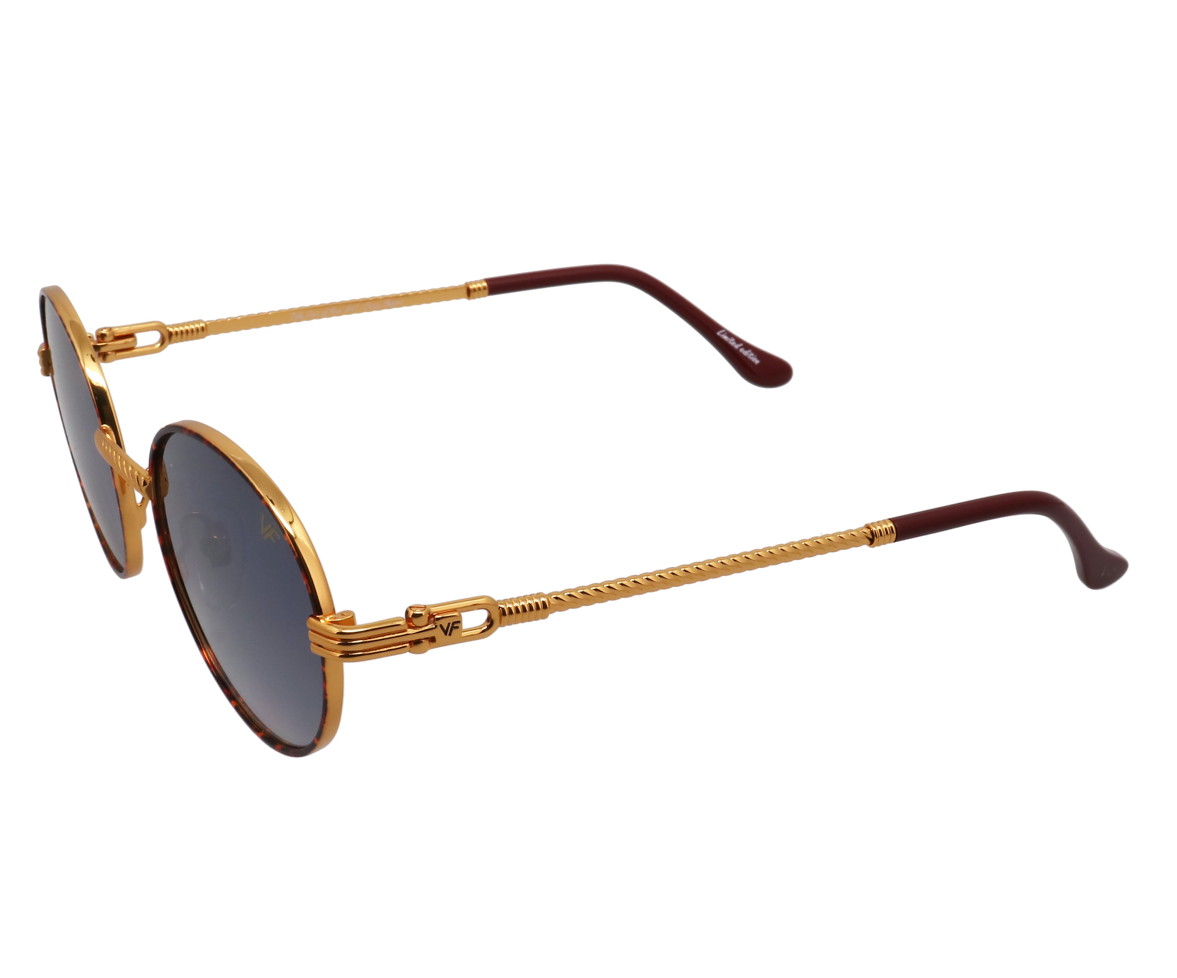 Made using vintage machinery and techniques, the 508 Tortoise Edition features an 18KT yellow gold frame with a brown tortoise rim and is available in several lens options. Vintage Frames Company pays homage to its vintage archive by mixing historical fashion references with today's pop culture to create timeless collections of sunglasses and eyewear. The 508 Tortoise Edition is a unisex style and can be worn to elevate any look; from day to night.