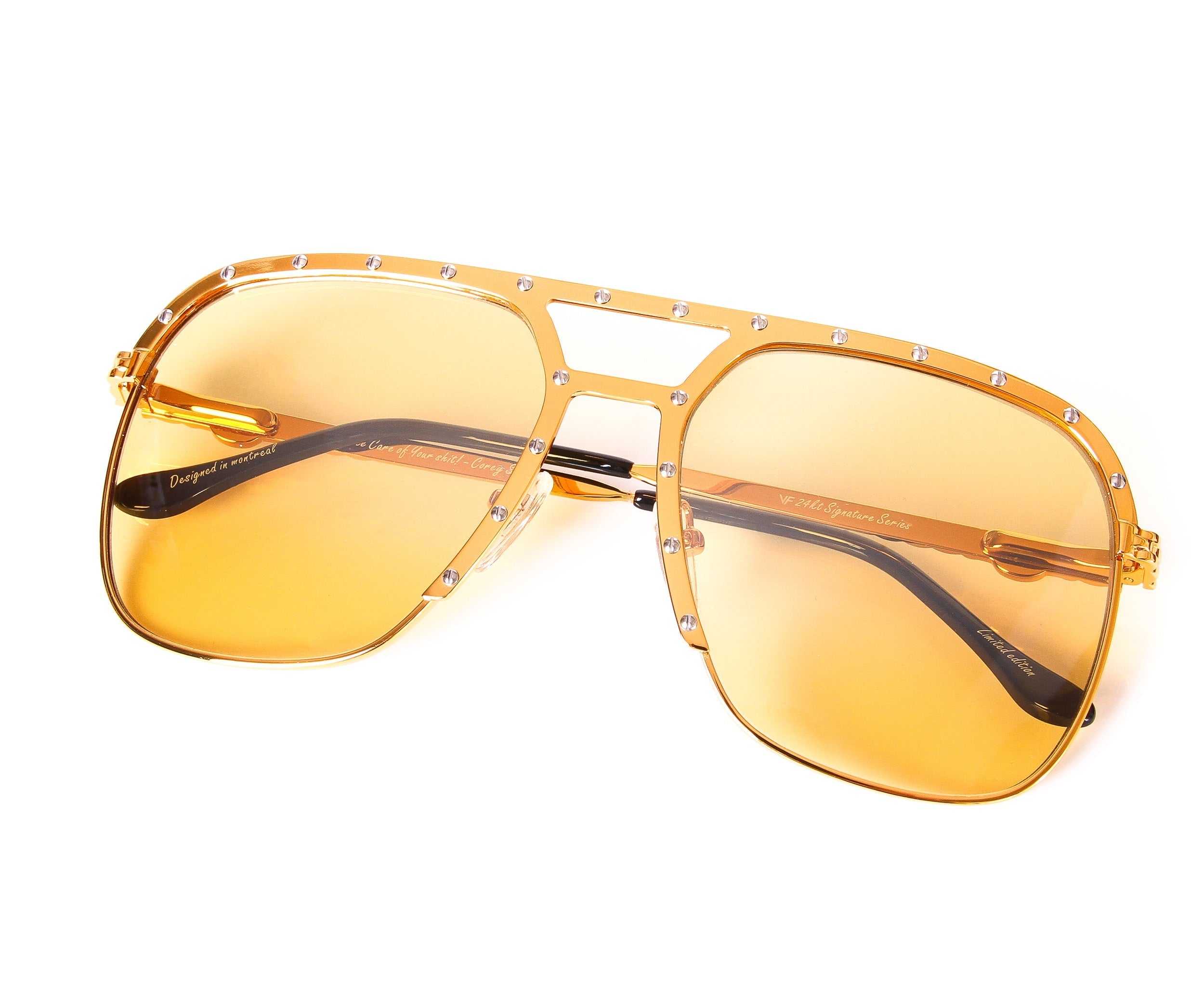 Made using vintage machinery and techniques, the Axel features a 24KT yellow gold frame adorned with white gold screws and is available in several lens options. Vintage Frames Company pays homage to its vintage archive by mixing historical fashion references with today's pop culture to create timeless collections of sunglasses and eyewear. The Axel is a unisex style and can be worn to elevate any look; from day to night.