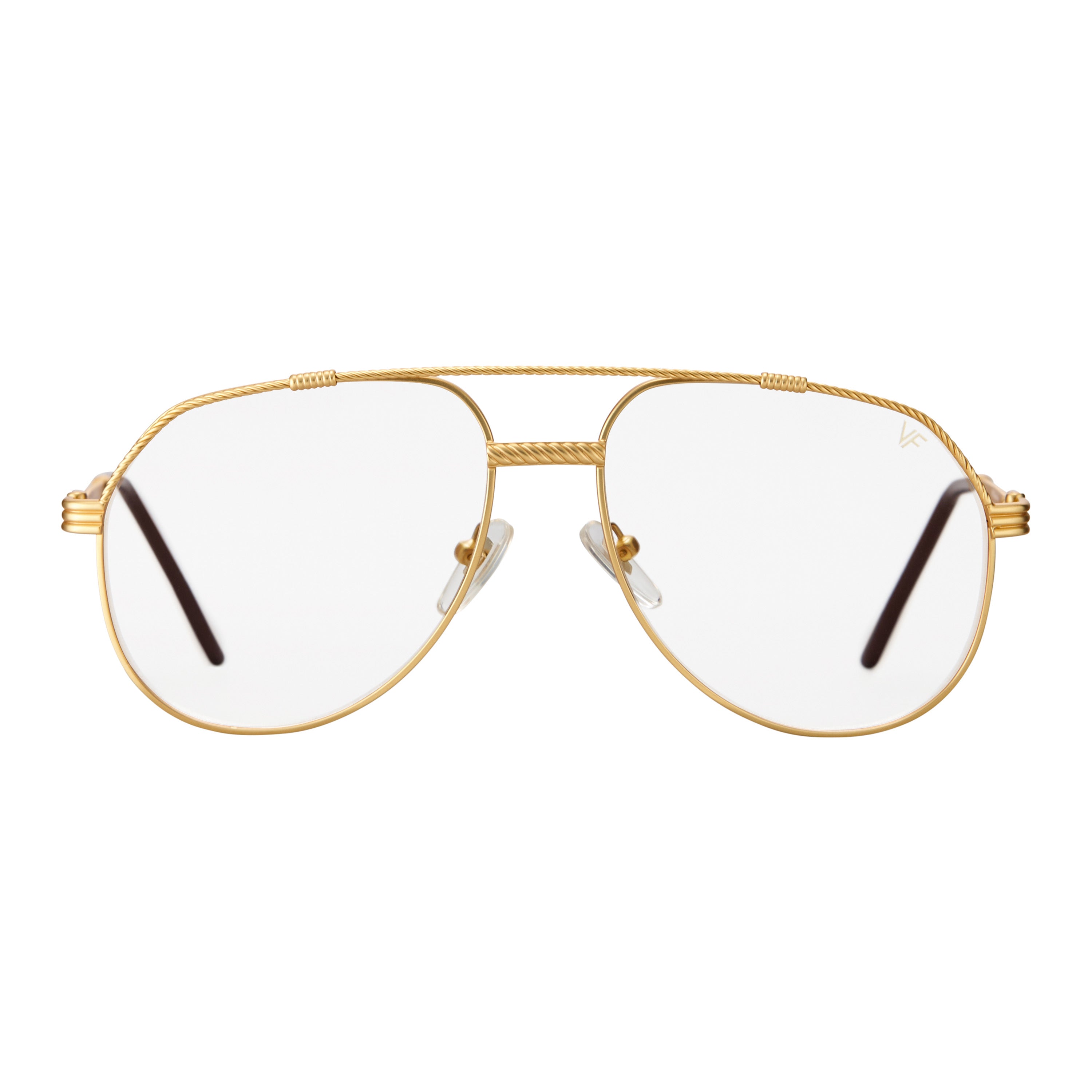 Made using vintage machinery and techniques, the Bad Boys features an 18KT yellow gold frame and is available in several lens options. Vintage Frames Company pays homage to its vintage archive by mixing historical fashion references with today's pop culture to create timeless collections of sunglasses and eyewear. The Bad Boys is a unisex style and can be worn to elevate any look; from day to night.