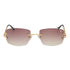 It is our pleasure to introduce the Bal Harbour collection; a 24kt gold drill mount frame double reinforced with V-Decor sides. The Bal Harbour is a larger rectangular shaped lens. The photochromatic lenses transition from light to dark from indoors to outdoors. This frame has a size 56 lens; an oversized drill mount for those who have a smaller faces and is the perfect shape for our clientele with a wider face.