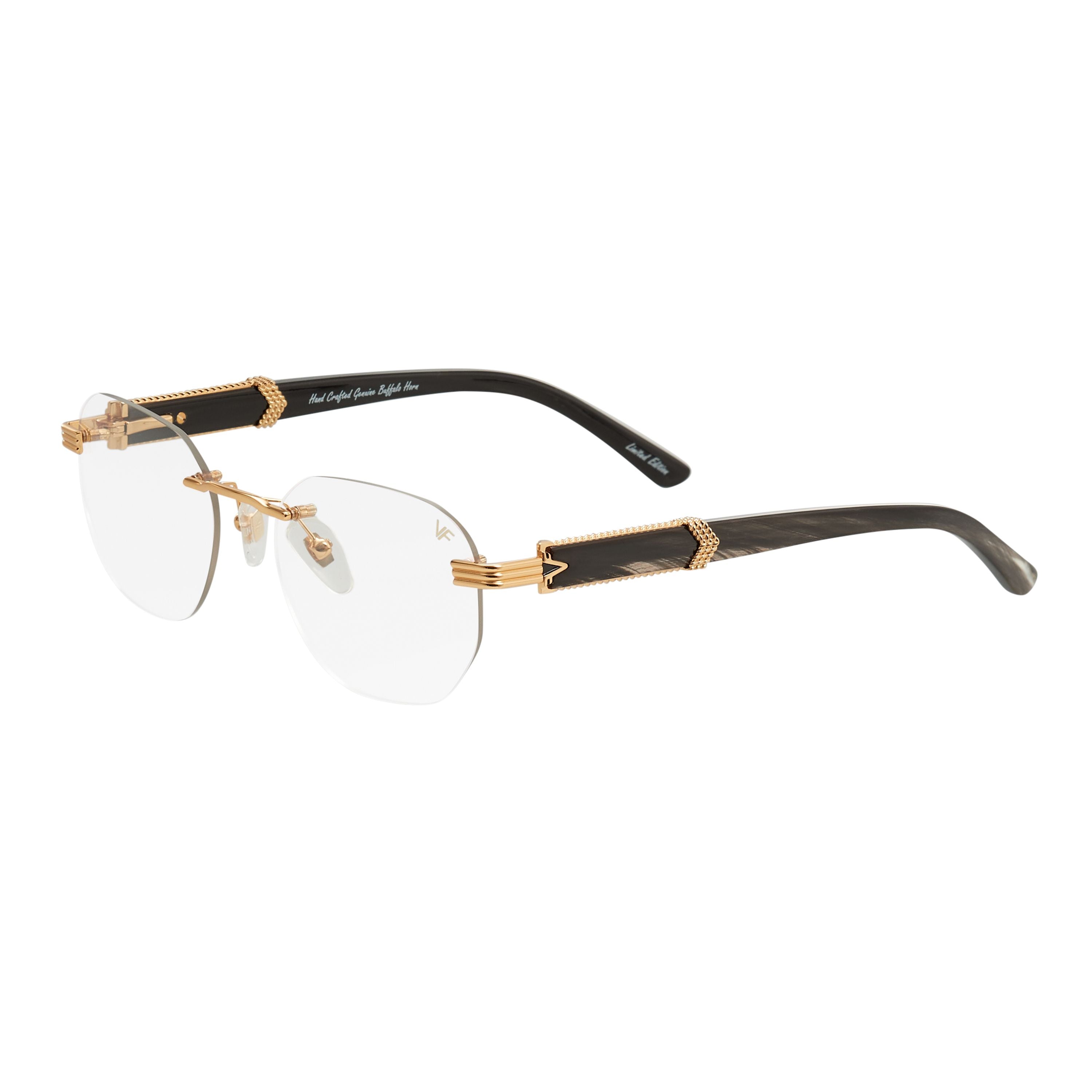 Detroit Player Buffs Rimless Black/Ivory Buffalo Horn 24KT Gold