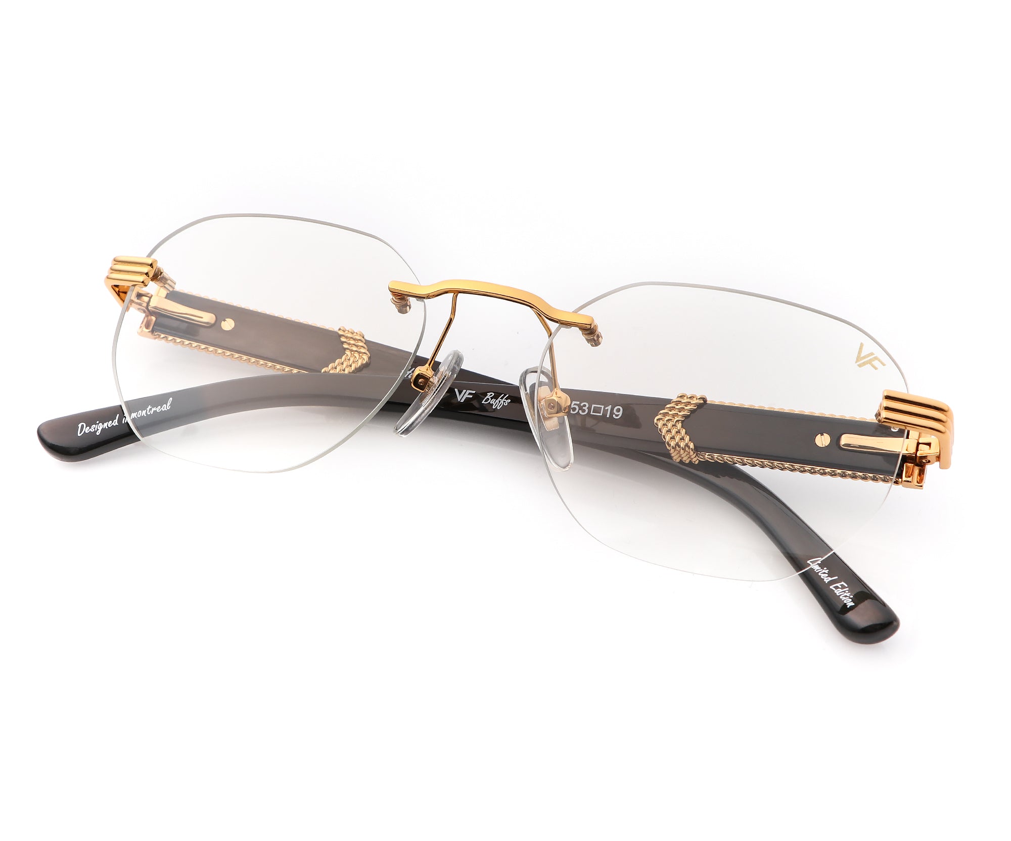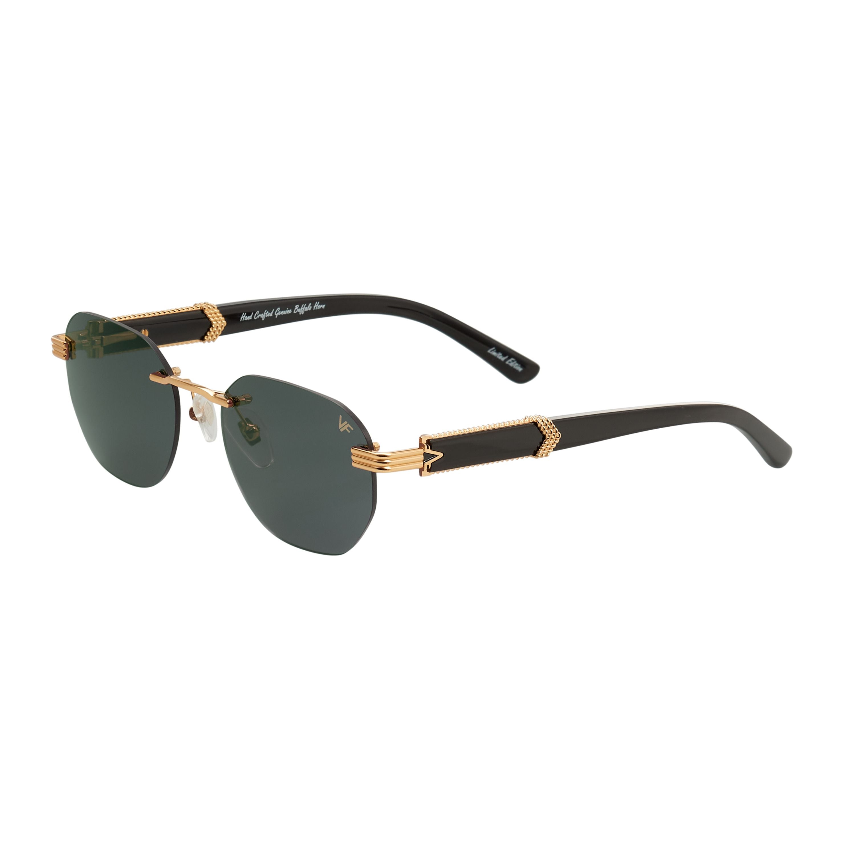 The VF Buffs are named after the street slang of buffalo horn glasses. Buffalo horn was the original material used in eyewear production in the 1940s and 50s. Our detroit player drill mount buffalo horn edition features arms made of sustainably source, genuine buffalo horn, reinforced with 24KT gold hardware. Each VF buff shows a unique pattern as they come from different horns and come in a video box telling the story behind the frame.