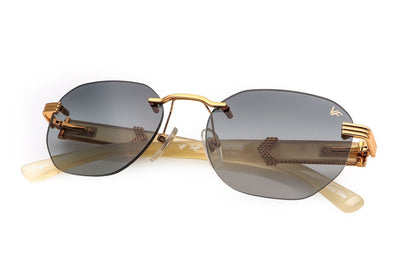 The VF Buffs are named after the street slang of buffalo horn glasses. Buffalo horn was the original material used in eyewear production in the 1940s and 50s. Our detroit player drill mount buffalo horn edition features arms made of sustainably source, genuine buffalo horn, reinforced with 24KT gold hardware. Each VF buff shows a unique pattern as they come from different horns and come in a video box telling the story behind the frame.